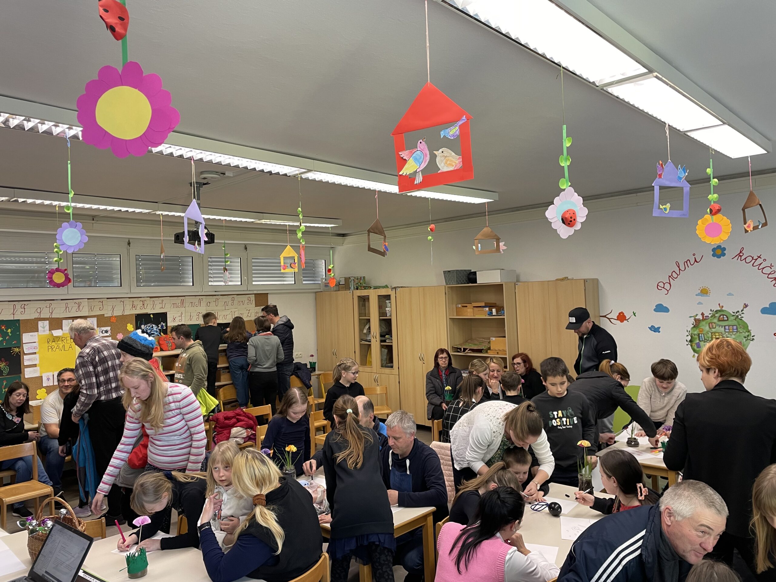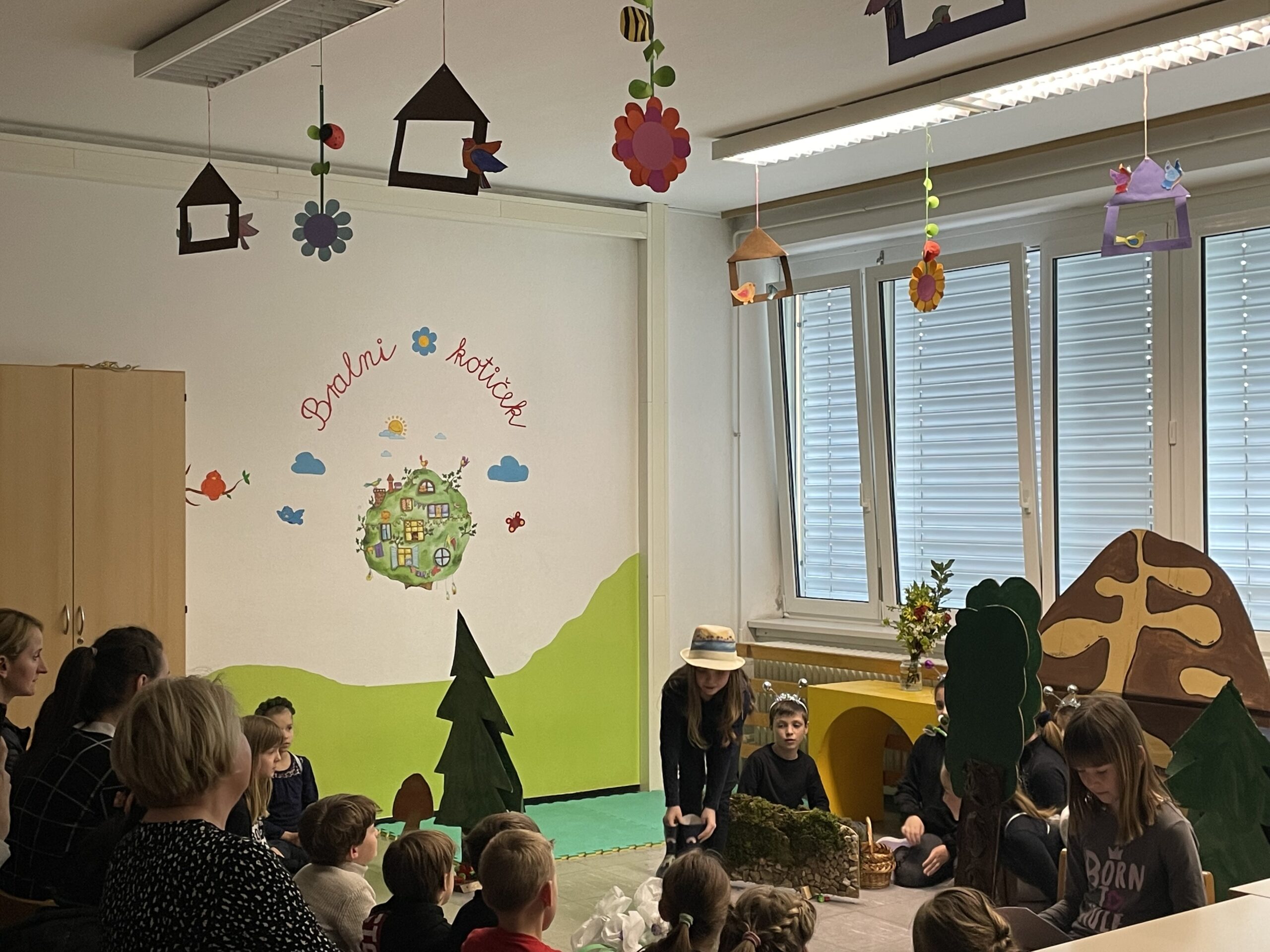 Pomlad smo povabili tudi v našo šolo. Na prvi pomladanski dan so tretješolci starše povabili na druženje z gozdnimi prebivalci. Marljive mravljice in čebele, leni čmrlji, počasni polži, veseli hrošči in nežne kresničke so nas popeljali na kratko pustolovščino po spomladanskem gozdu in veselo druženje.