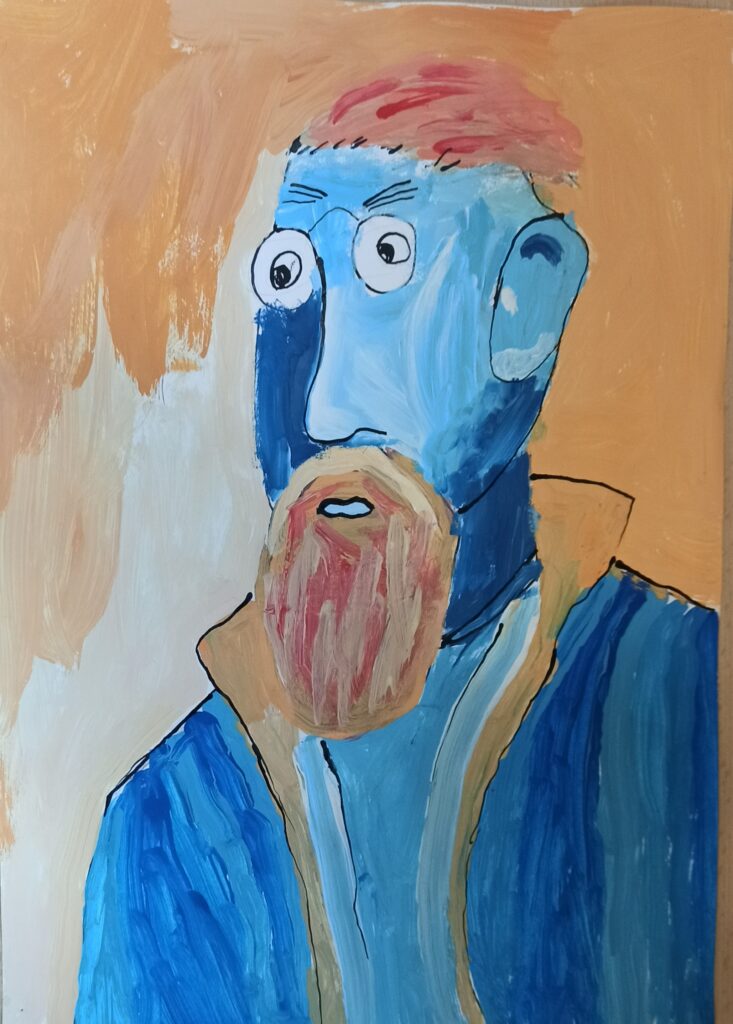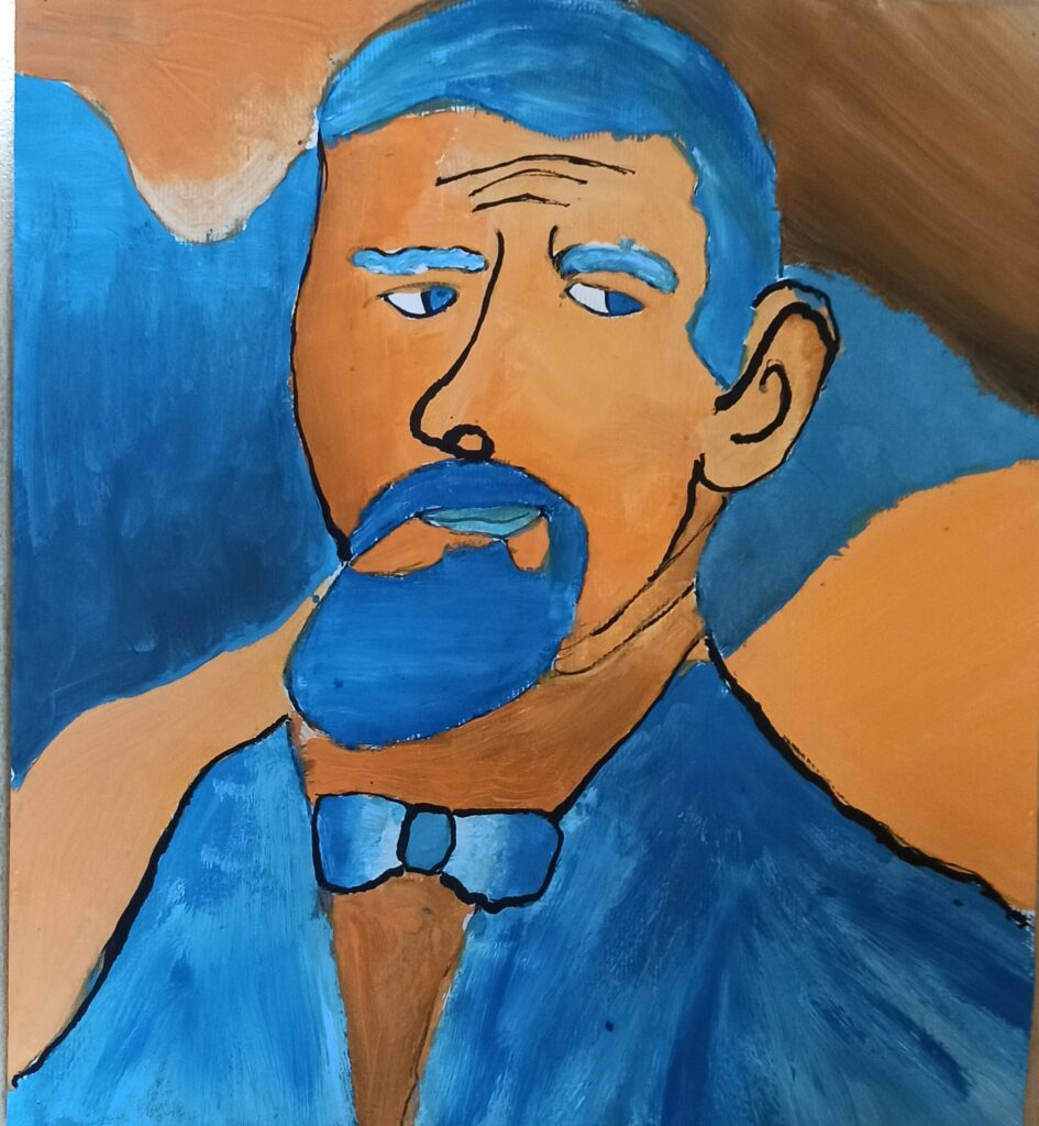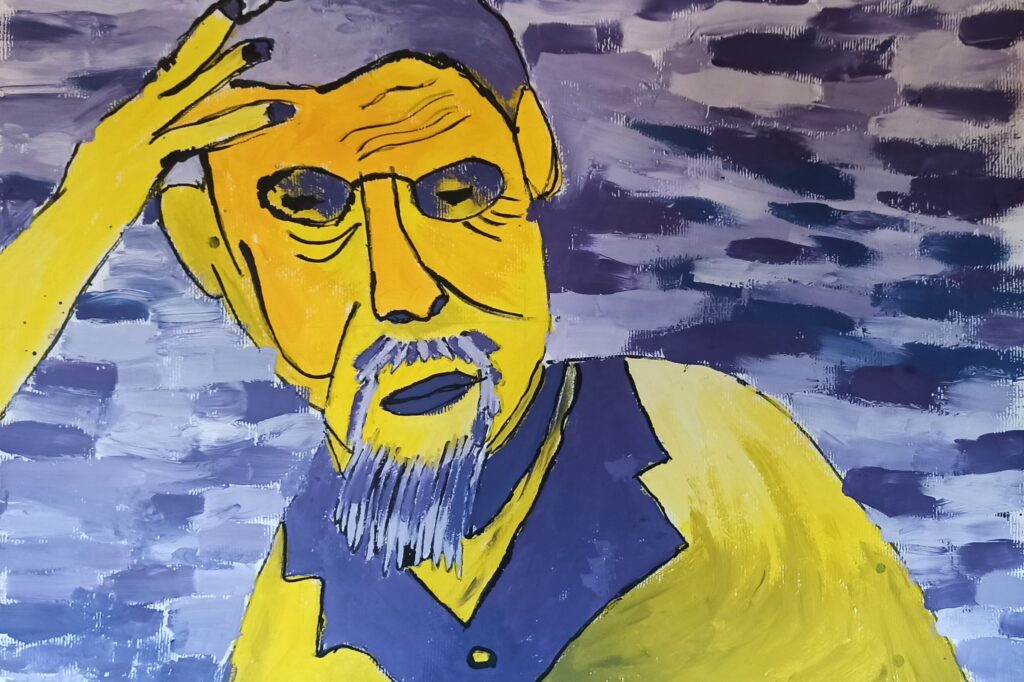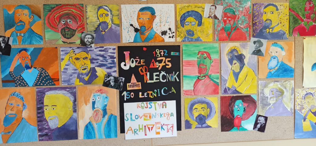 Leta 2022 smo praznovali 150 letnico rojstva našega arhitekta Jožeta Plečnika. Učenci so ga portretirali po različnih fotografijah, pri slikanju pa so uporabljali komplementarni kontrast.