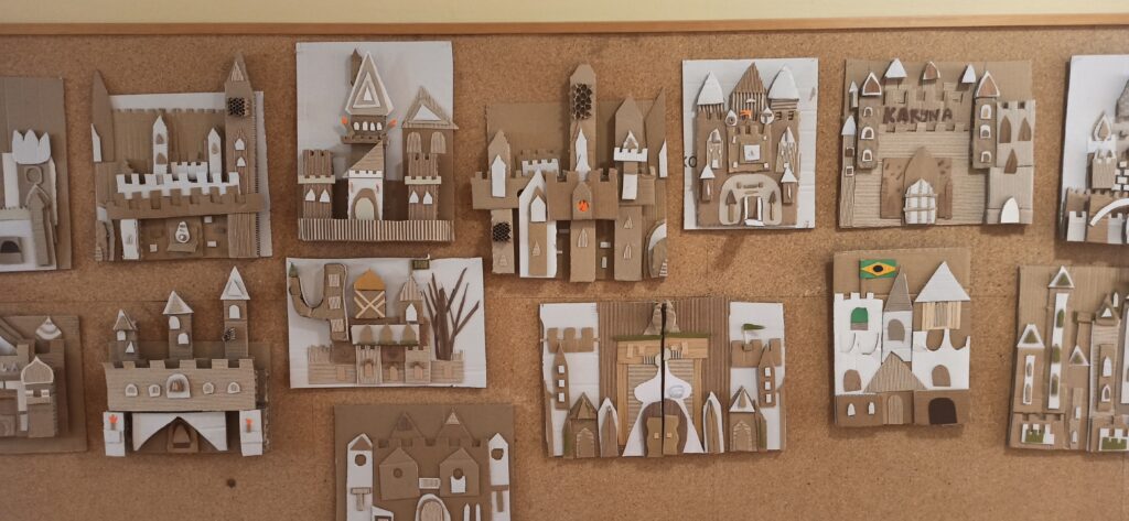 Šestošolci so spoznali relief v kiparskih delih in iz kartona v tehniki plastenja ustvarili čudovite gradove.