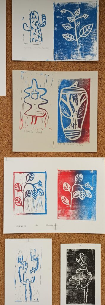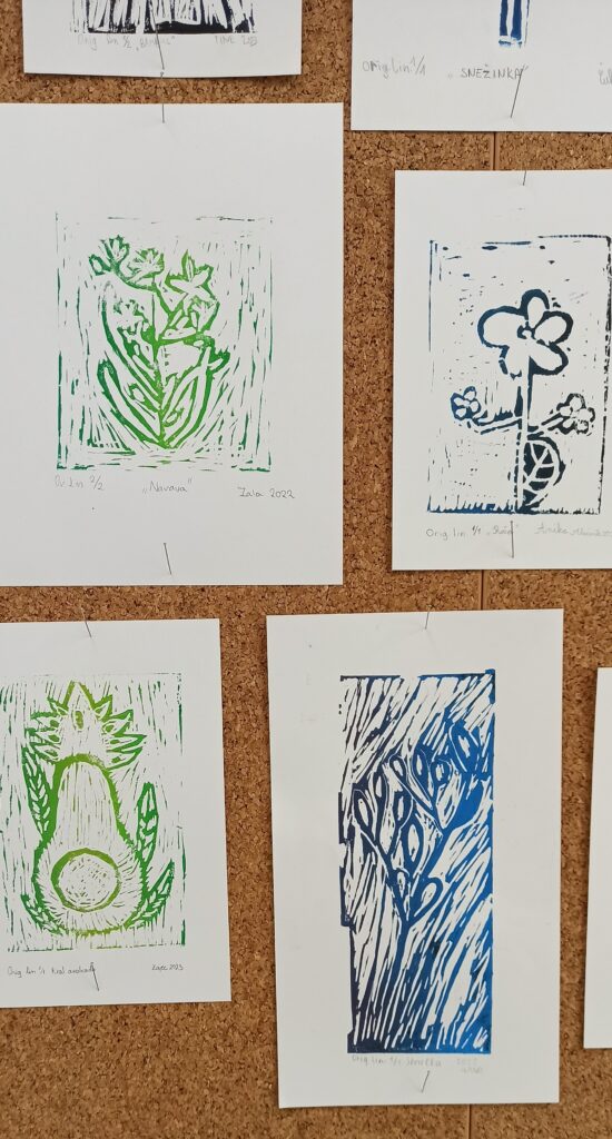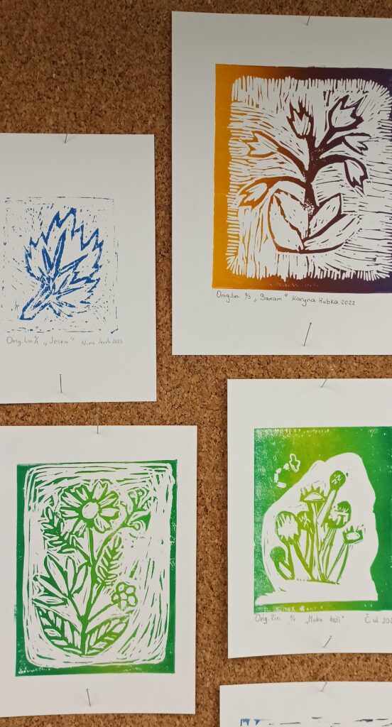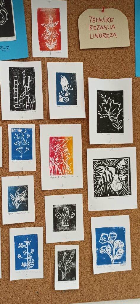 Šestošolci so spoznali zakonitosti in tehnike izdelave linoreza in se tako preizkusili v belem in obreznem linorezu.