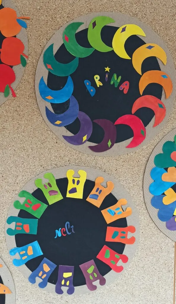 Učenci so spoznavali zakonitosti mešanja barv in jih razporedili v krog v poljubnem motivu, dodali pa so še detajl v nasprotni barvi.