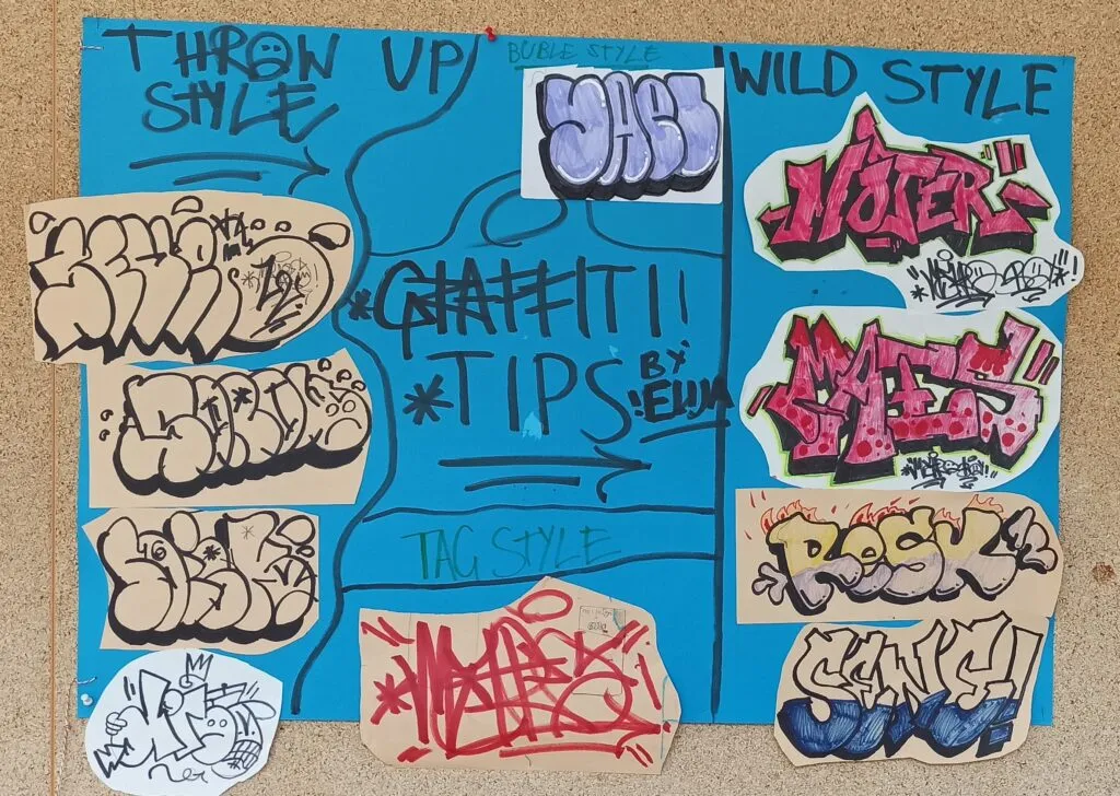 Elija, navdušen risar grafitov nam je na plakatu predstavil štiri načine pisanja te ulične umetnosti.
