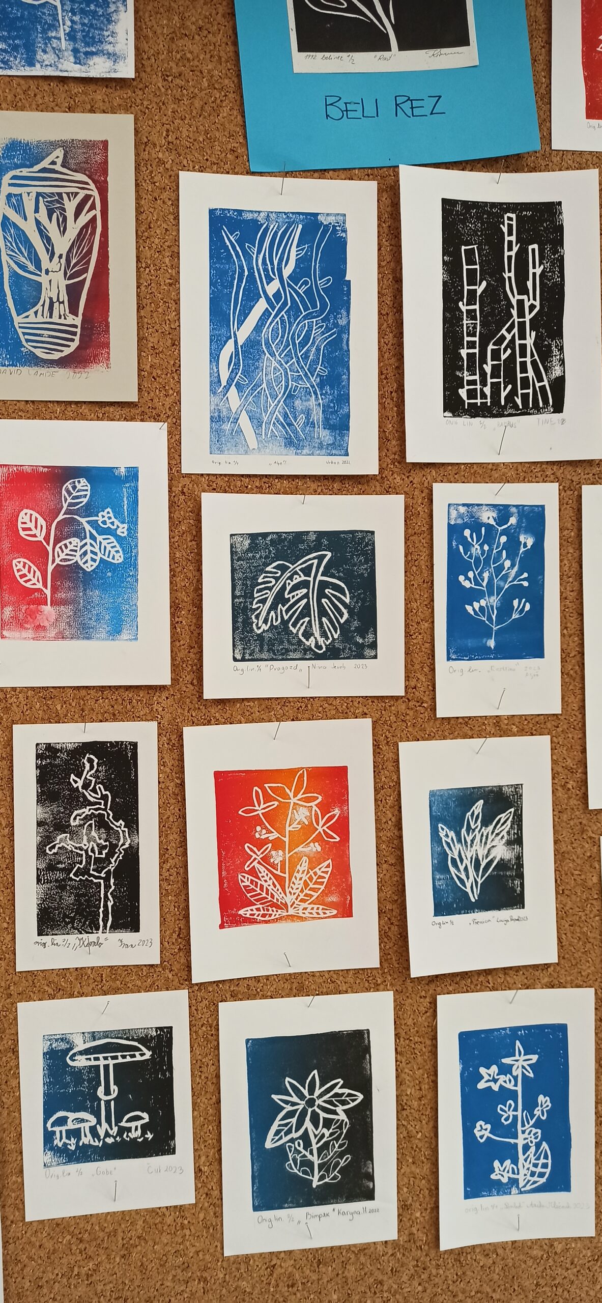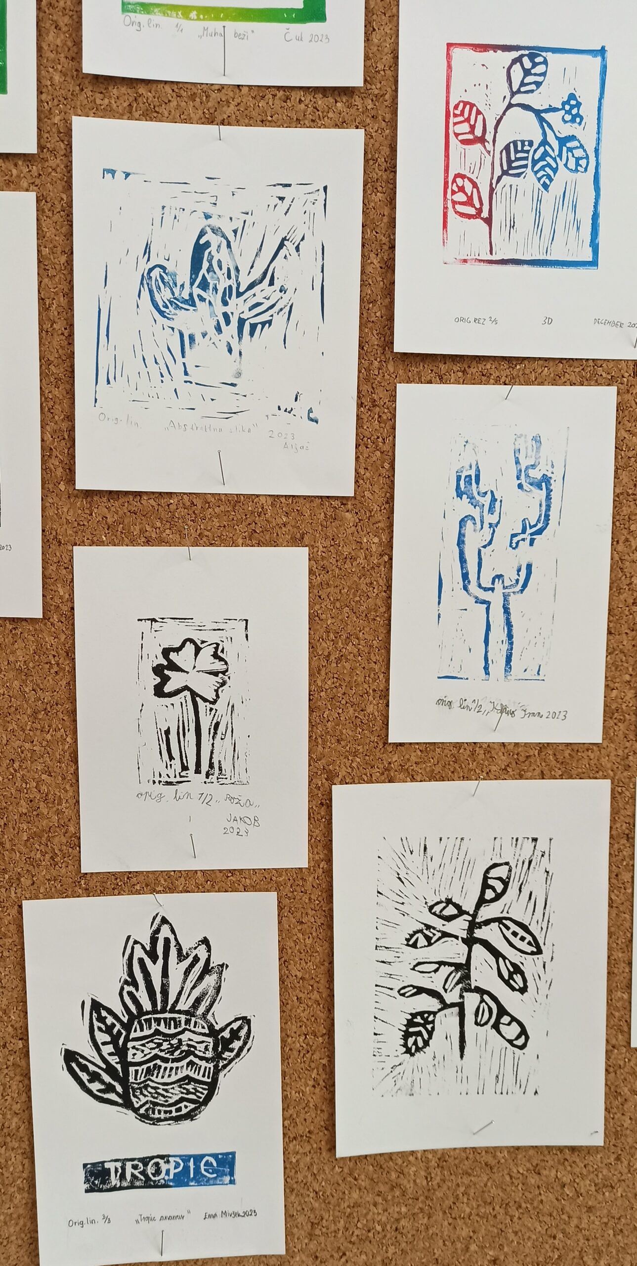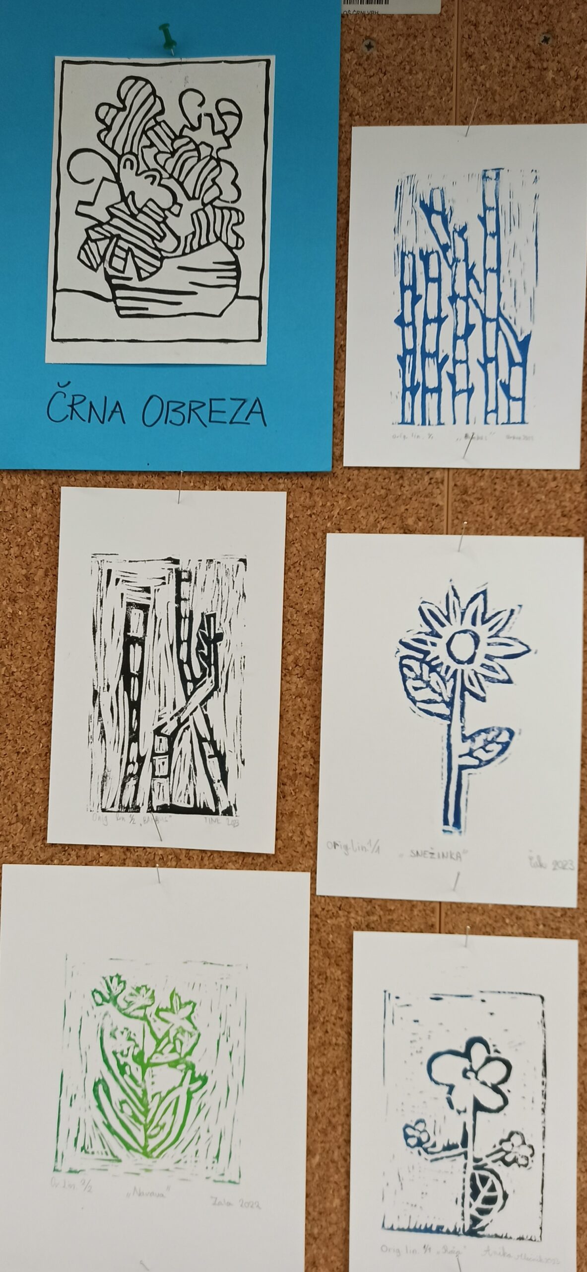 Šestošolci so spoznali zakonitosti in tehnike izdelave linoreza in se tako preizkusili v belem in obreznem linorezu.