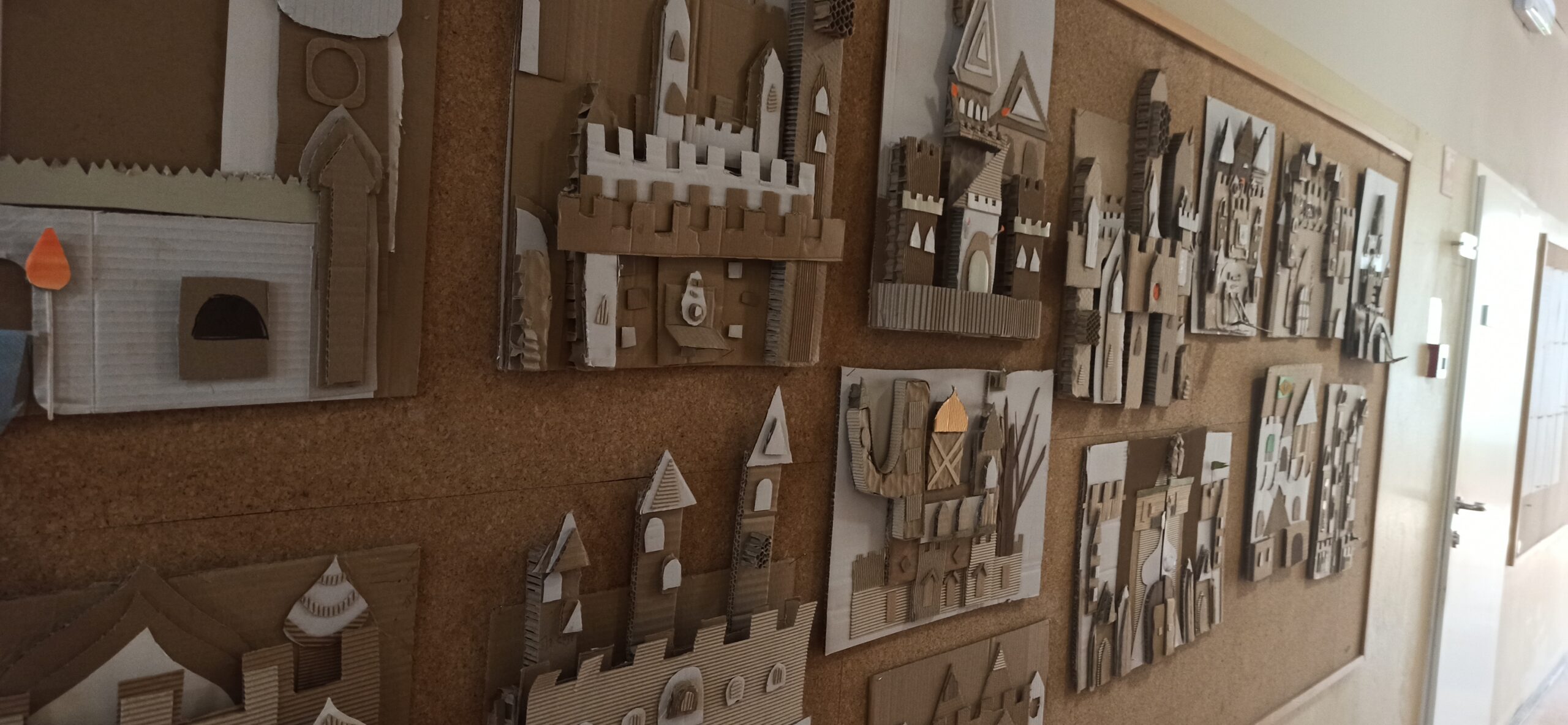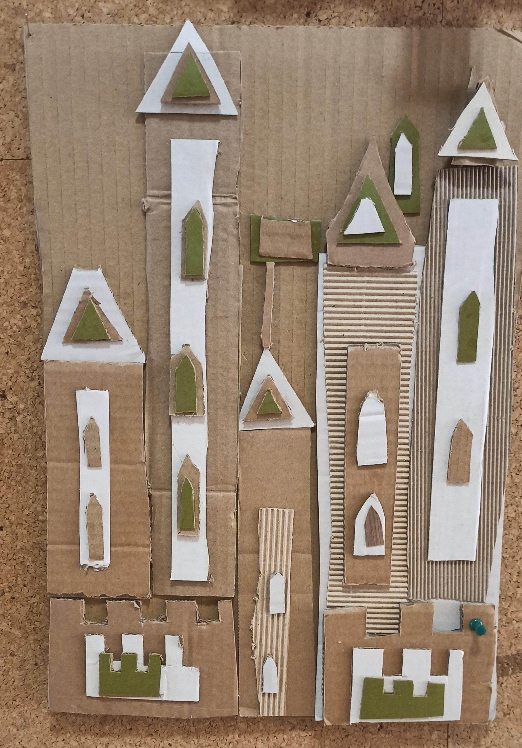 Šestošolci so spoznali relief v kiparskih delih in iz kartona v tehniki plastenja ustvarili čudovite gradove.