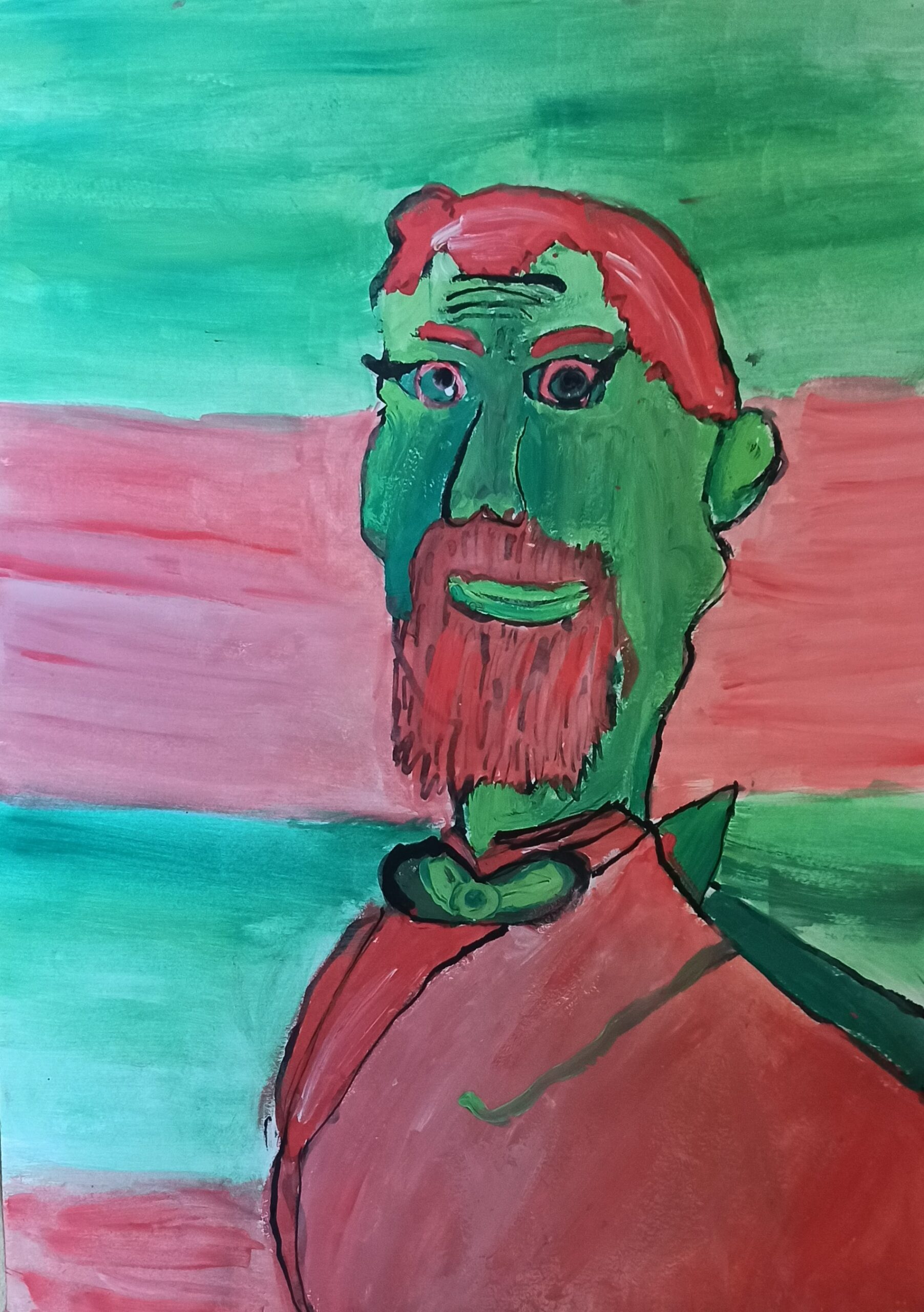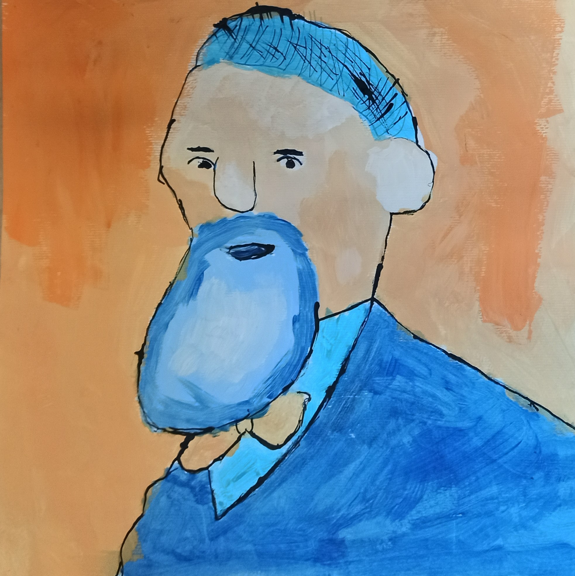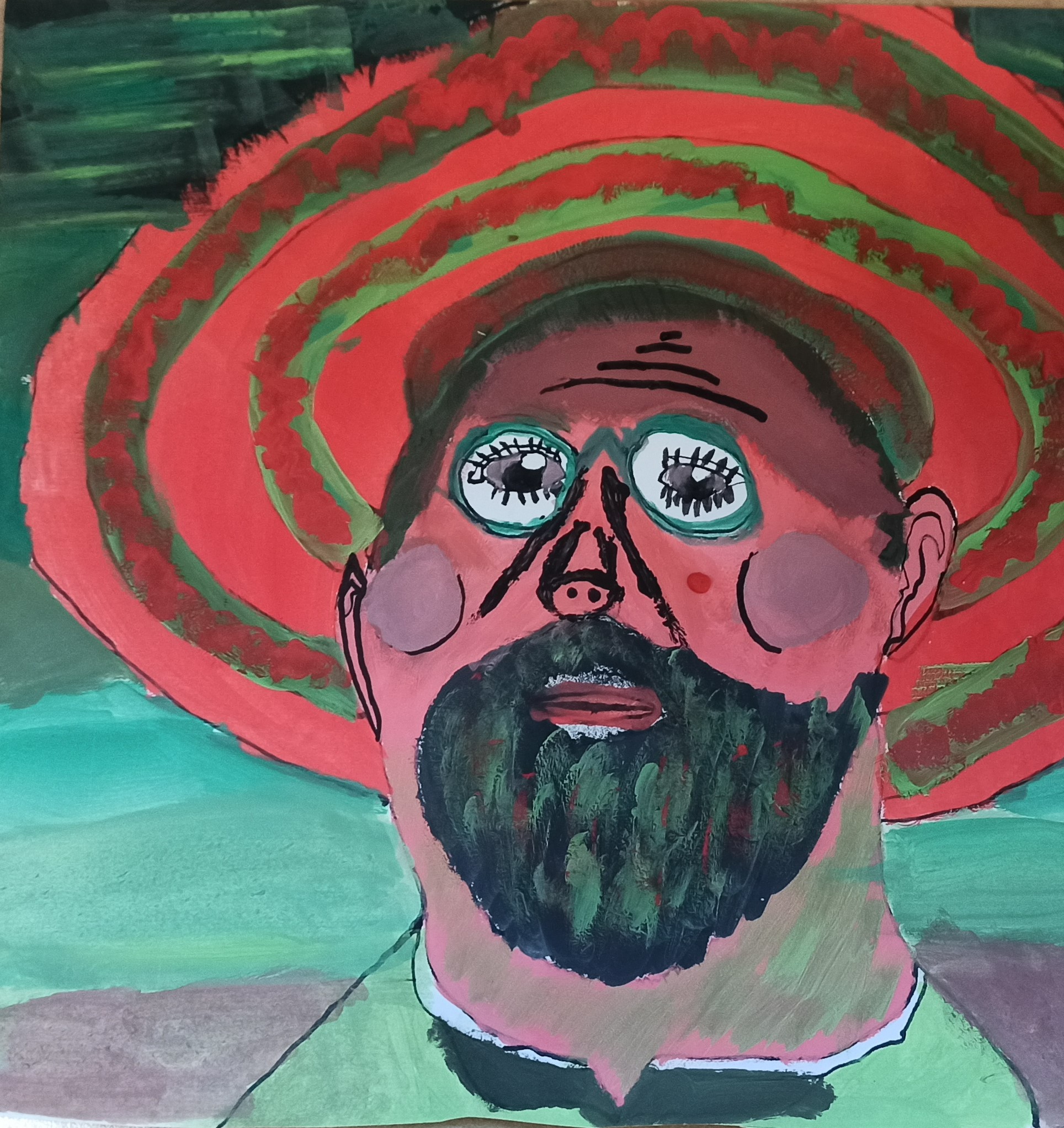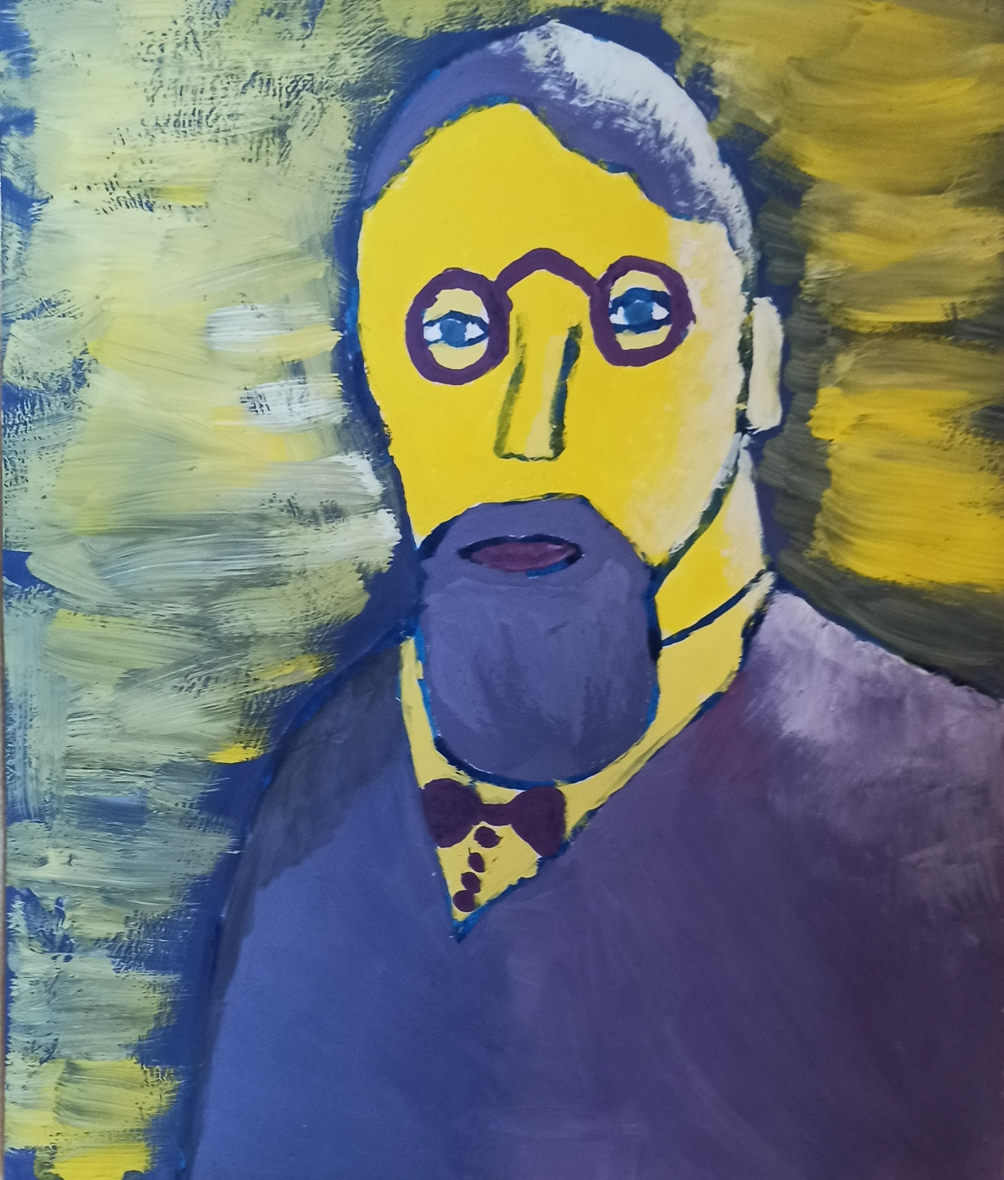 Leta 2022 smo praznovali 150 letnico rojstva našega arhitekta Jožeta Plečnika. Učenci so ga portretirali po različnih fotografijah, pri slikanju pa so uporabljali komplementarni kontrast.