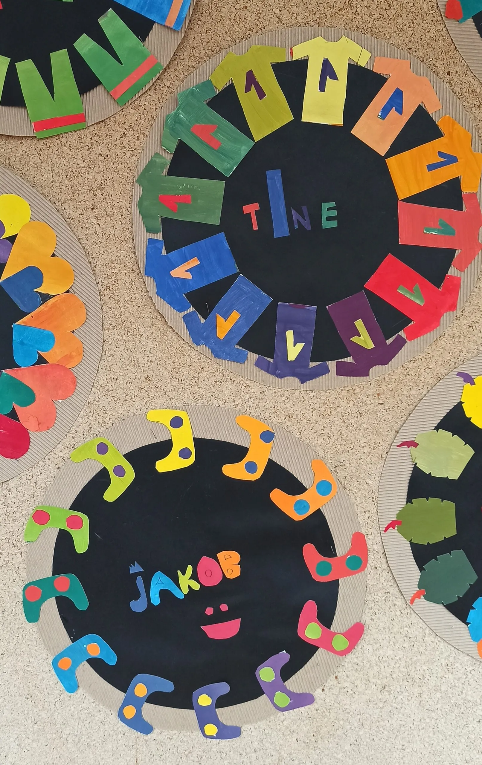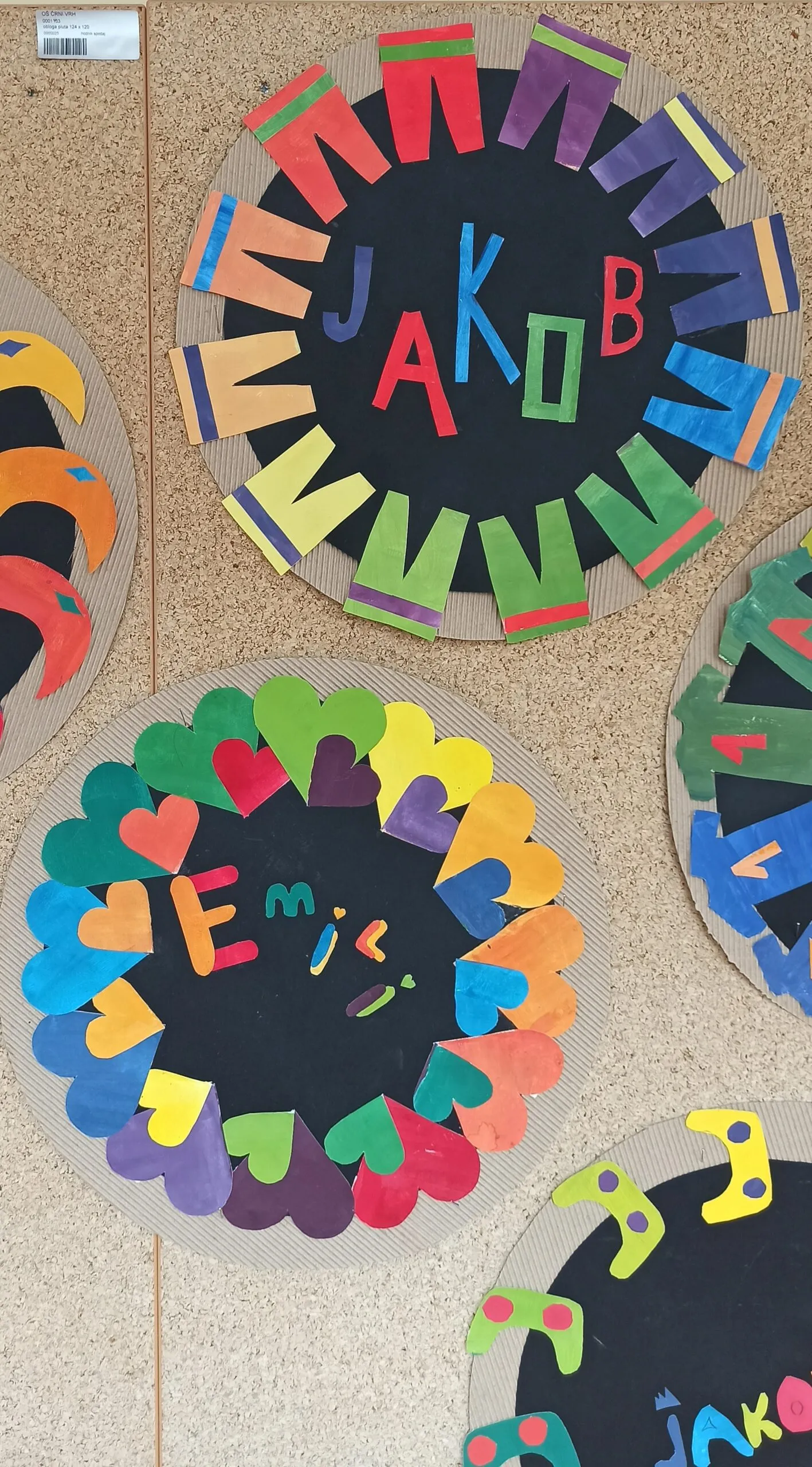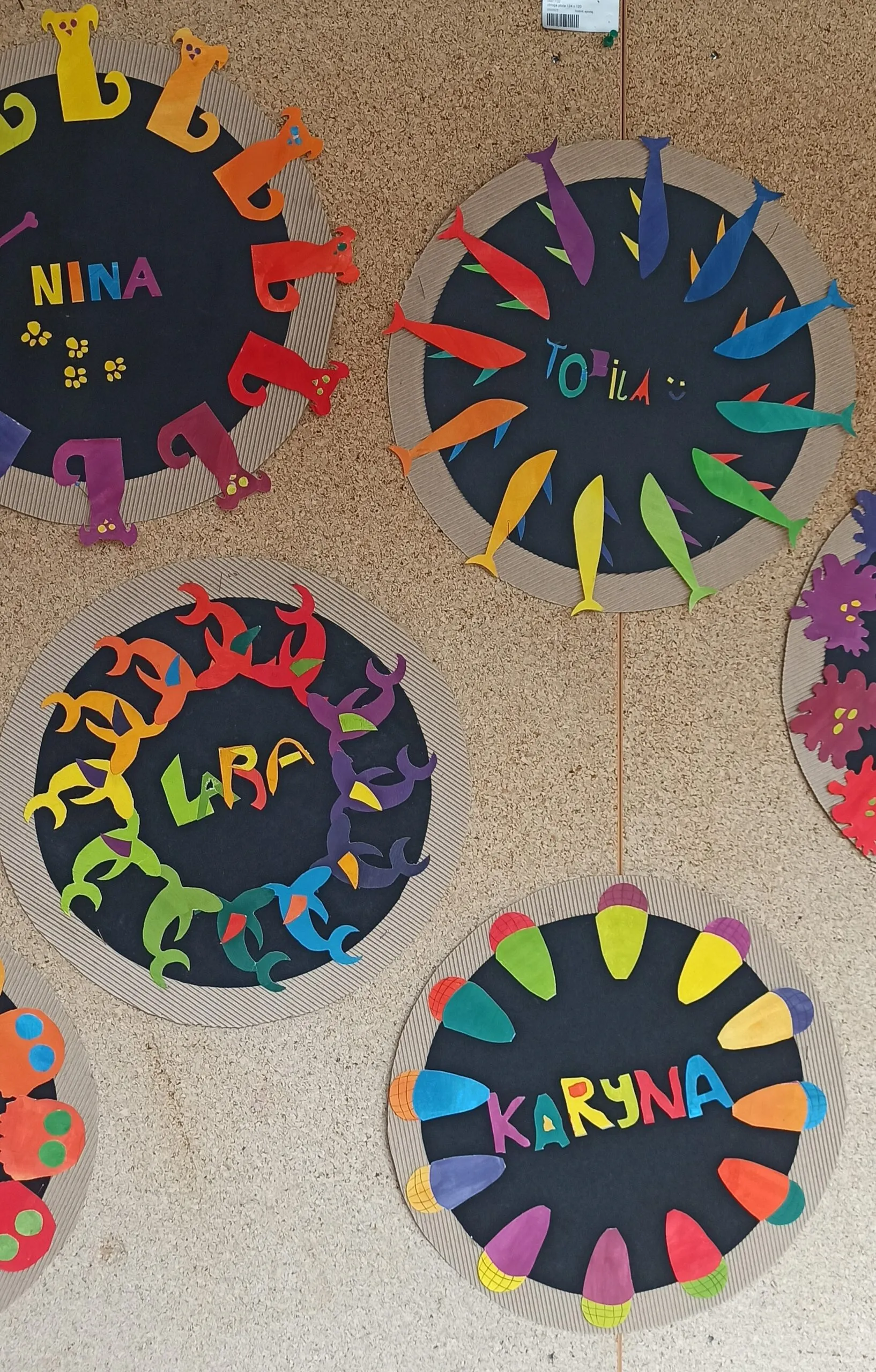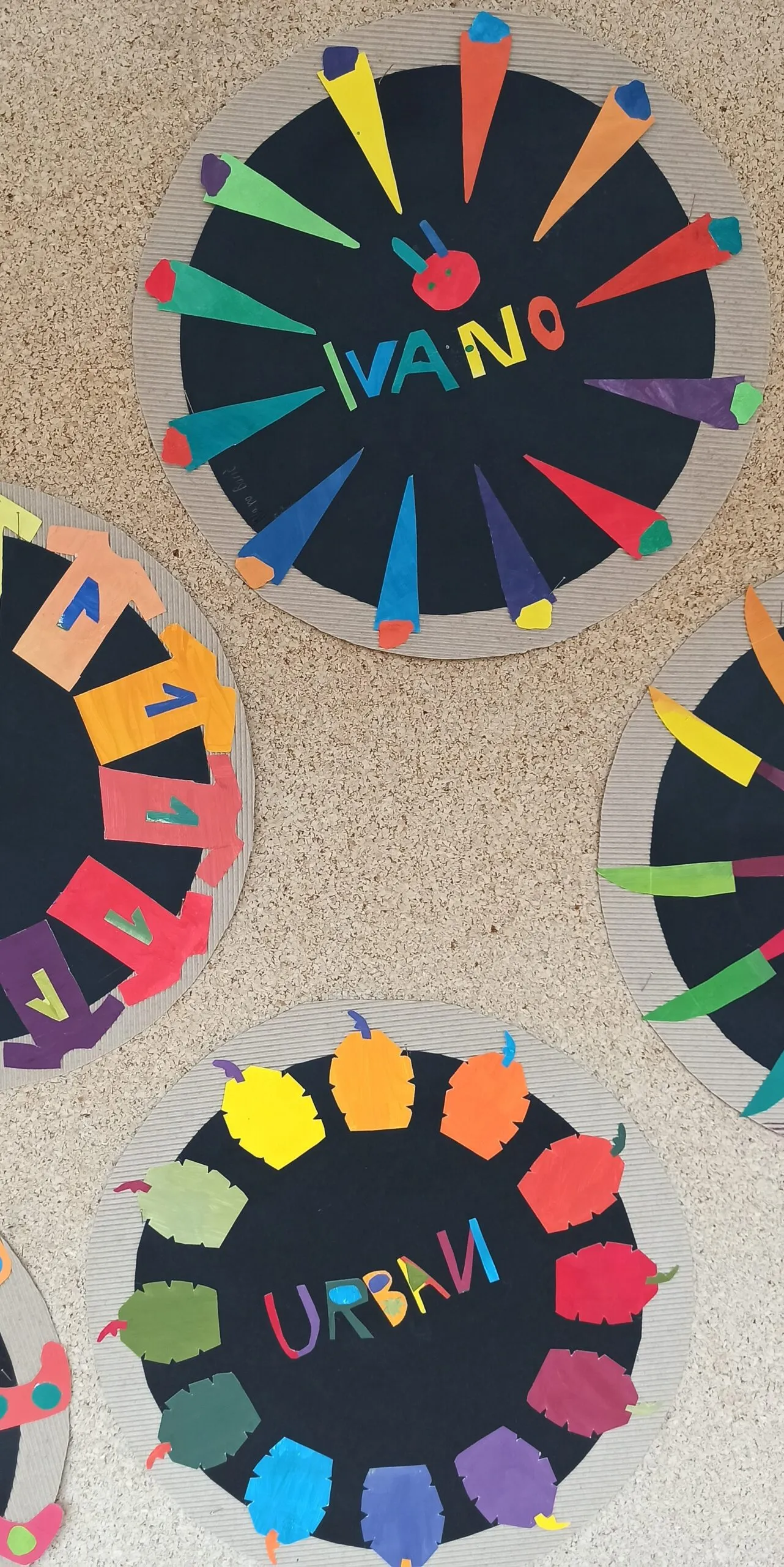 Učenci so spoznavali zakonitosti mešanja barv in jih razporedili v krog v poljubnem motivu, dodali pa so še detajl v nasprotni barvi.