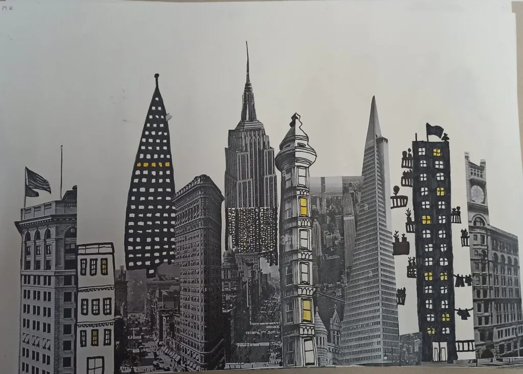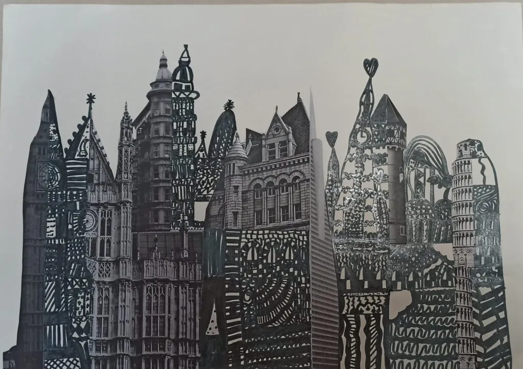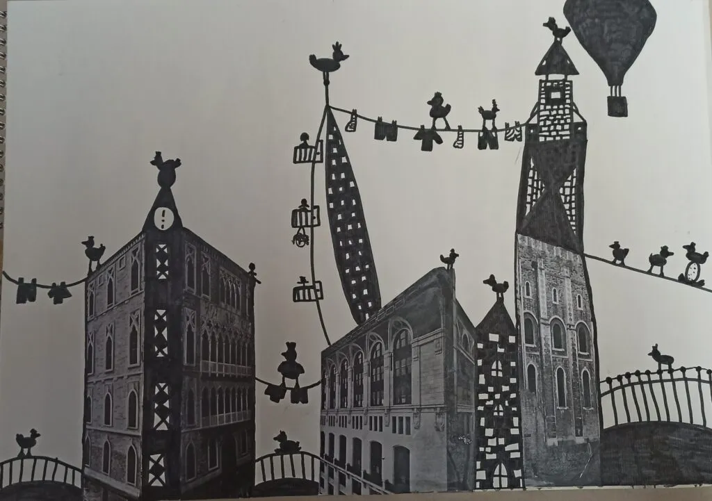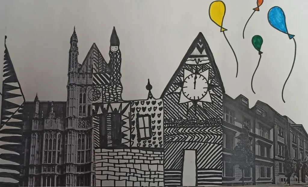 Sedmošolci so dorisali nekaj stavb. Lahko uganete kaj je njihova risba in kaj fotografija?
