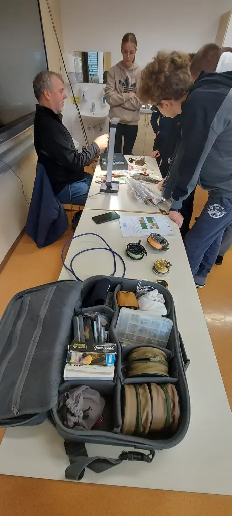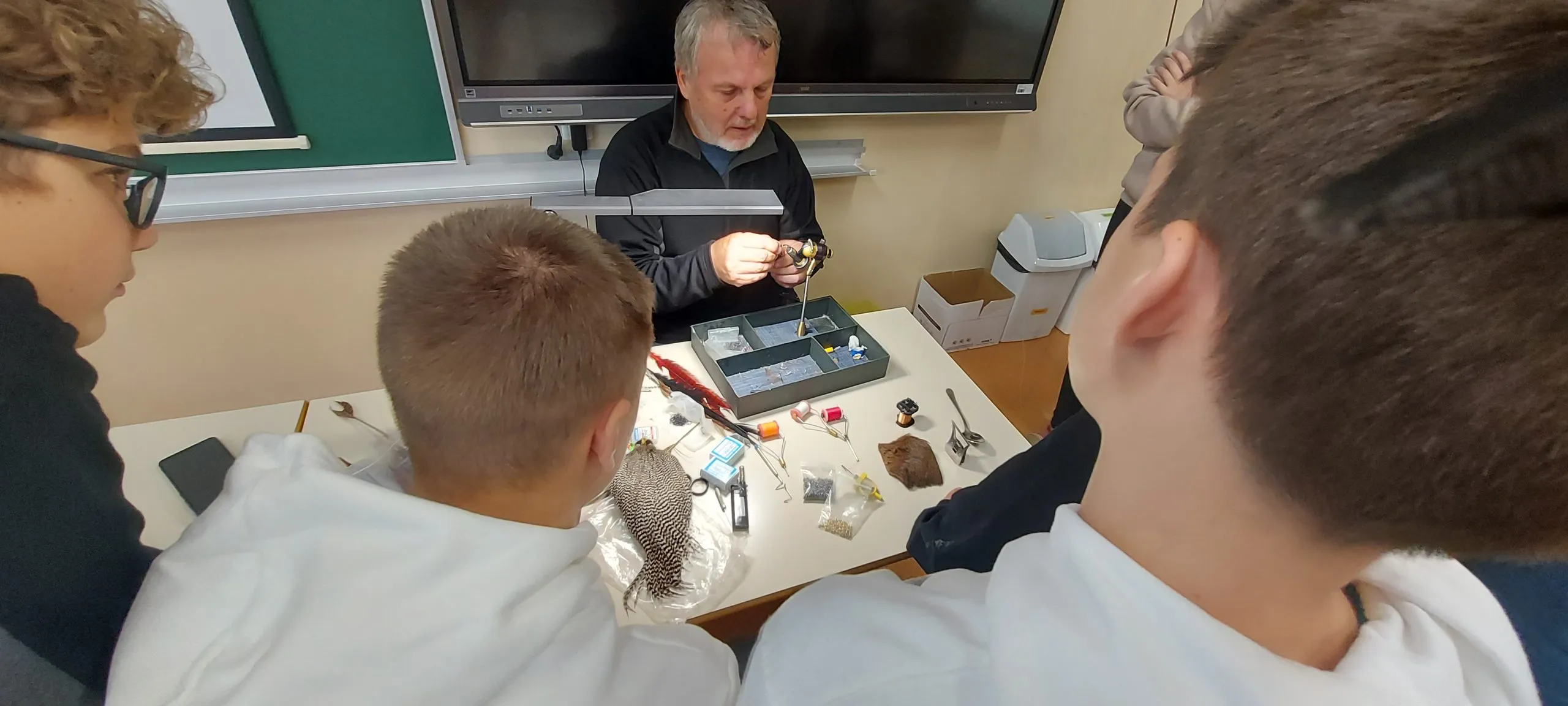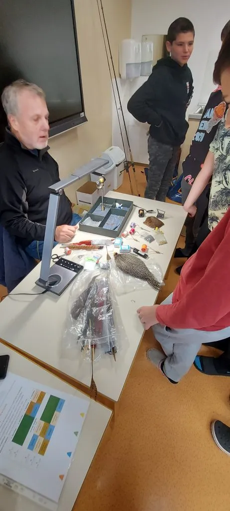 Na šolo je prišla Ribiška družina Idrija, ki je predstavila njihovo delovanje, revir in oblike ribolova, učenci pa so si lahko od bližje ogledali pripravo ribiške vabe in opremo ter opazovali ročno pripravo umetnih muh za ribolov.