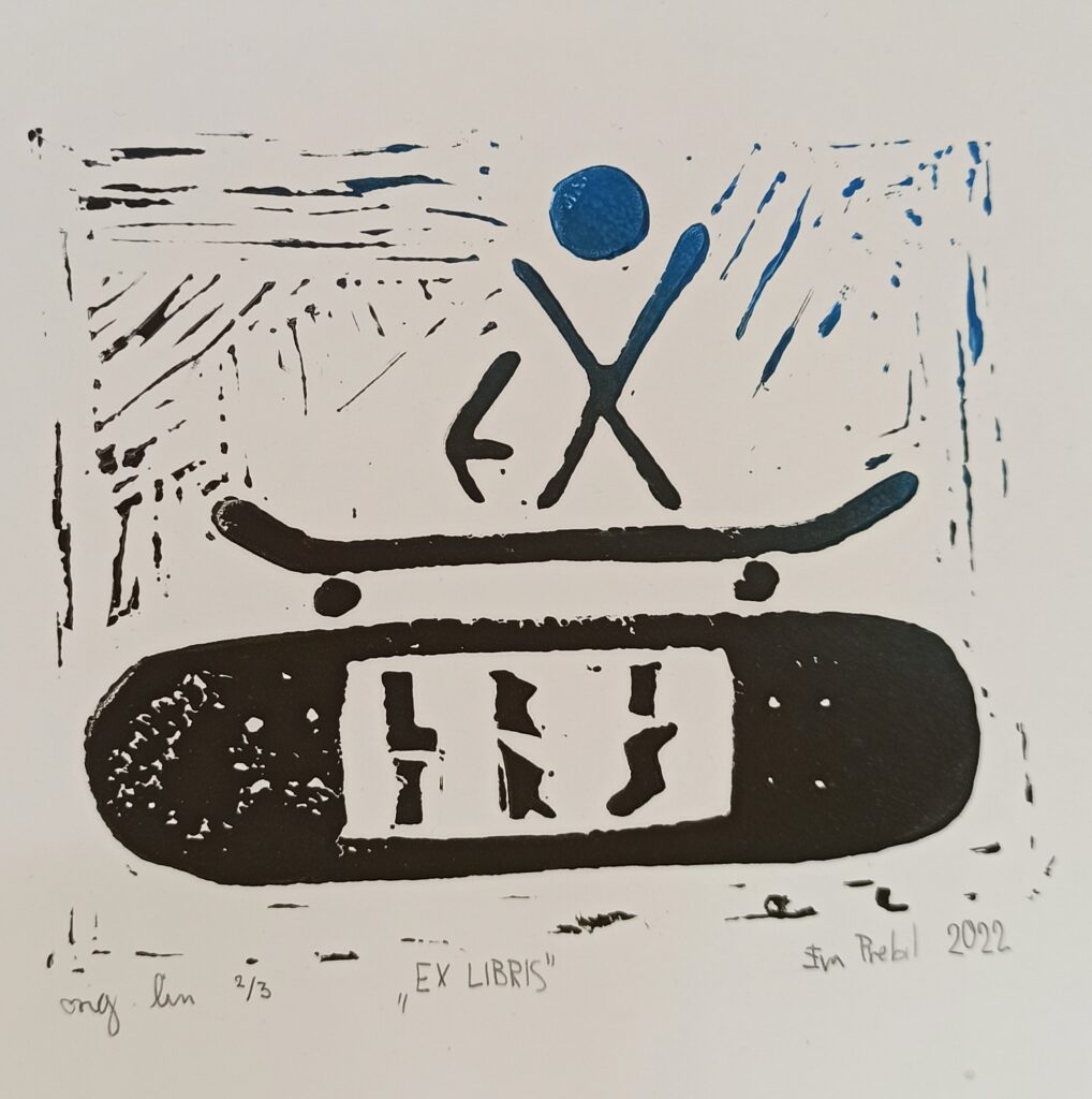 Devetošolci so z exlibrisom v tehniki linoreza povedali nekaj o sebi – kdo so, kaj jih zanima in veseli, kaj želijo postati. Exlibris pomeni “iz knjige” (lat.), gre pa za malo grafiko, ki so jo včasih uporabljali za označevanje lastništva knjig.