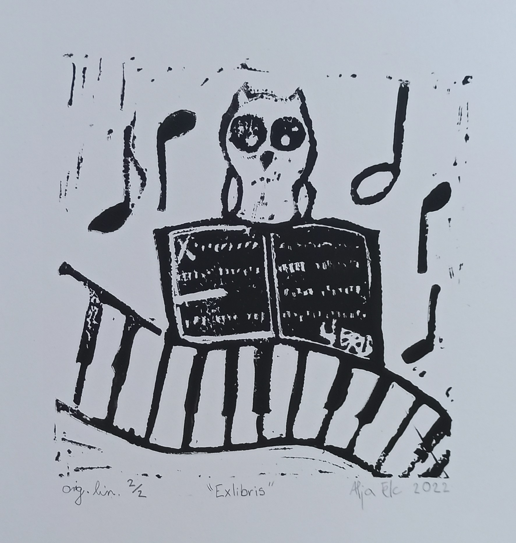 Devetošolci so z exlibrisom v tehniki linoreza povedali nekaj o sebi – kdo so, kaj jih zanima in veseli, kaj želijo postati. Exlibris pomeni “iz knjige” (lat.), gre pa za malo grafiko, ki so jo včasih uporabljali za označevanje lastništva knjig.