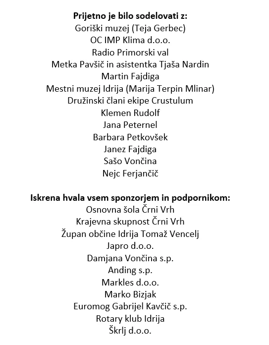 ISKRENA HVALA vsem sponzorjem in podpornikom: