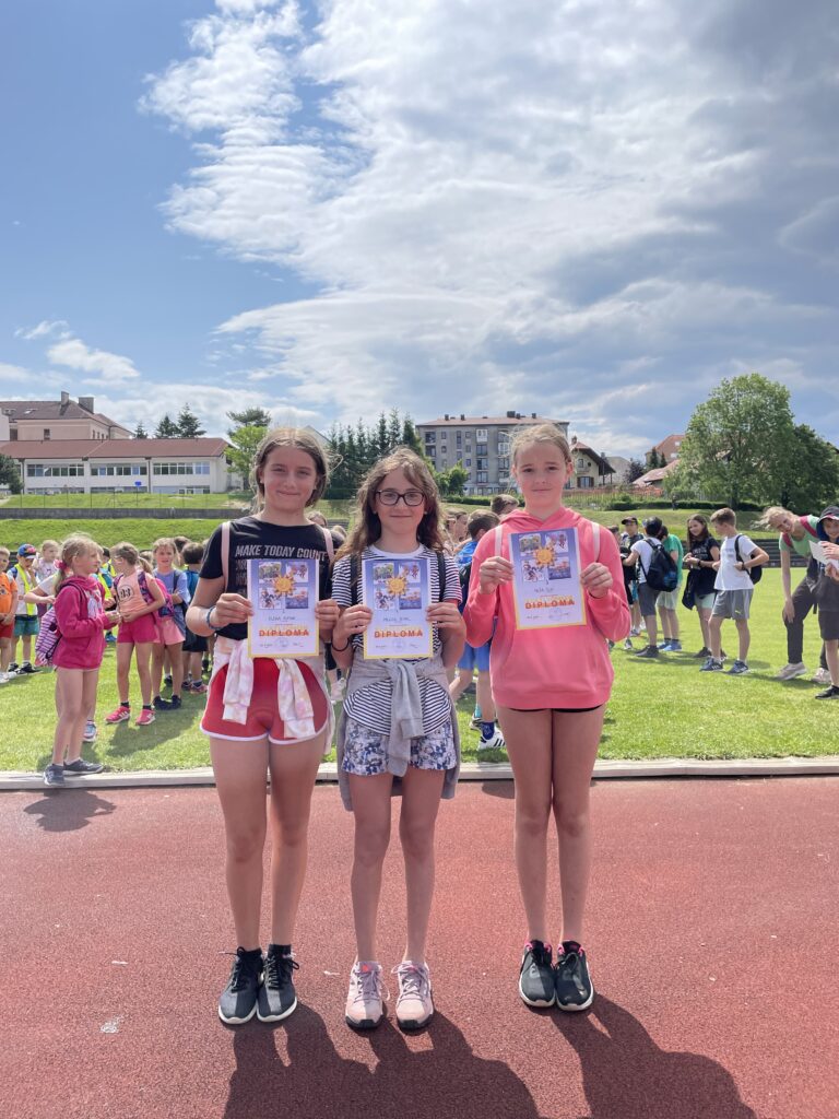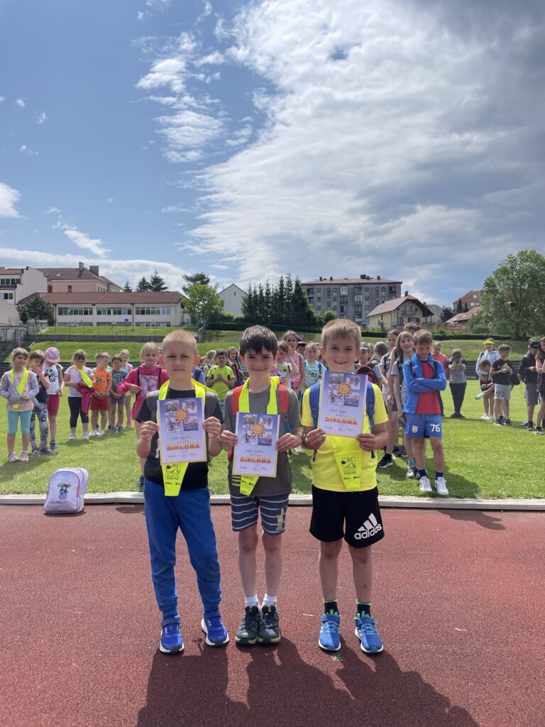 Čeprav nam je vreme končno naklonilo nekaj dni brez dežja, je pa bilo vsaj vetrovno in hladno, in je bilo zato tekmovati v Postojni na stadionu vse prej kot prijetno. V torek,30. 5. so tako v štirih atletskih disciplinah tekmovali učenci od 1. do 5. razreda. V sredo, 31. 5. so jim sledili še starejši učenci od 6. do 9. razreda. Za opravljen atletski mnogoboj je bilo potrebno preteči 60 in 600 m, skočiti v daljavo z zaletom in metati vortex. Starejši učenci iz 8. in 9. razreda so namesto vortexa tekmovali v metu krogle. Rezultati so bili dobri, marsikateri učenec je postavil kak osebni rekord. Vsem učencem čestitke za borbene nastope.
