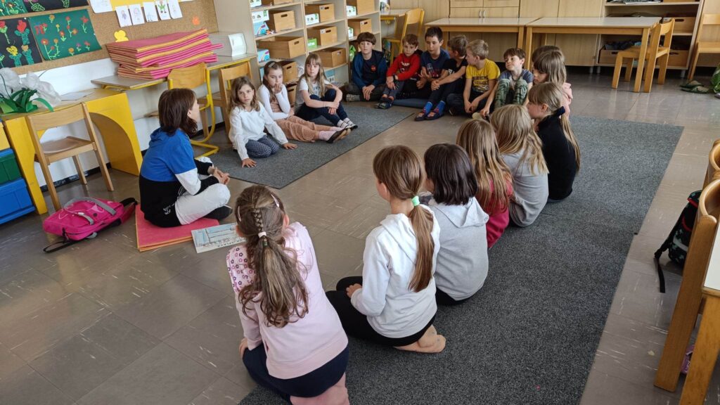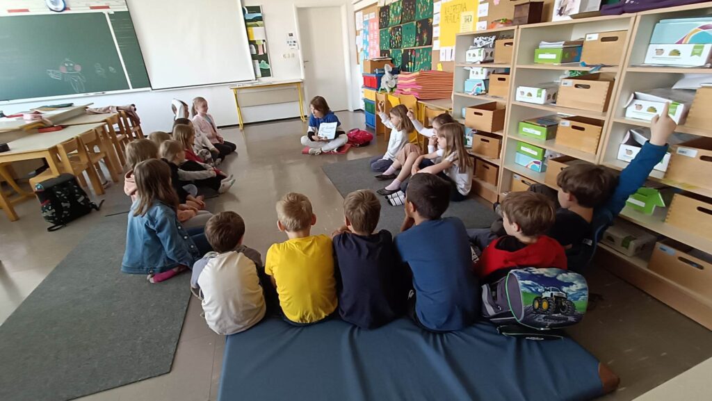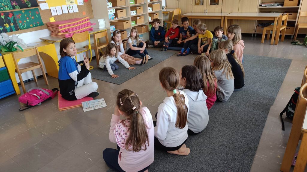 Kot naročeno, nas je pred tečajem obiskala pisateljica, učiteljica plavanja, animatorka in nadvse zanimiva oseba, Anita Štor. Svojo poučno zgodbo s pravljičnim koncem Ava splava je predstavila vsem otrokom prvega triletja in jih preko pogovora in branja pripeljala do zaključka, da gresta trud in zaupanje z roko v roki, ko želimo doseči cilj.