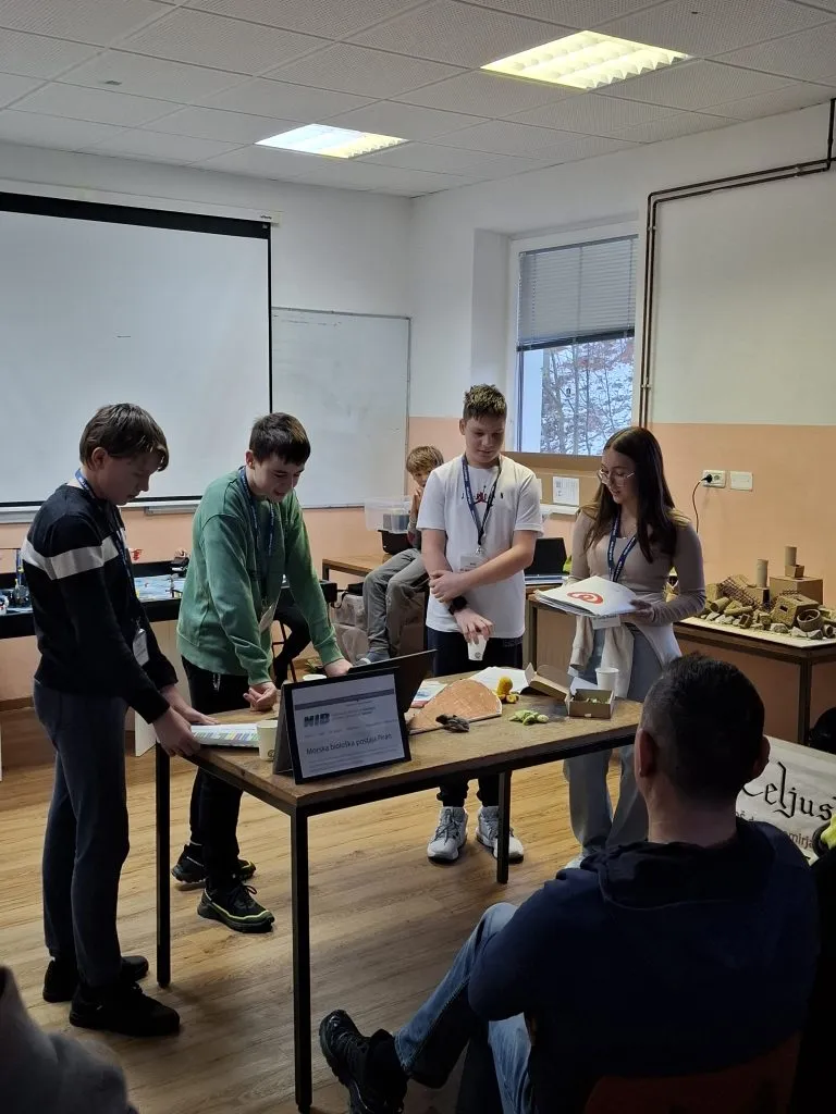 Vrednoto skupinskega dela smo krepili tudi ob obisku pri FLL ekipi Čeljustniki iz Divače, ki je imela v taborniškem domu na Kovku intenzivni trening pred tekmovanjem. 18. 1. 2025 smo z njimi in njihovimi starši delili svoje delo, jim predstavili našega robota in njegovo opravljanje misij ter jim predstavili projekt na katerem smo letos delali.