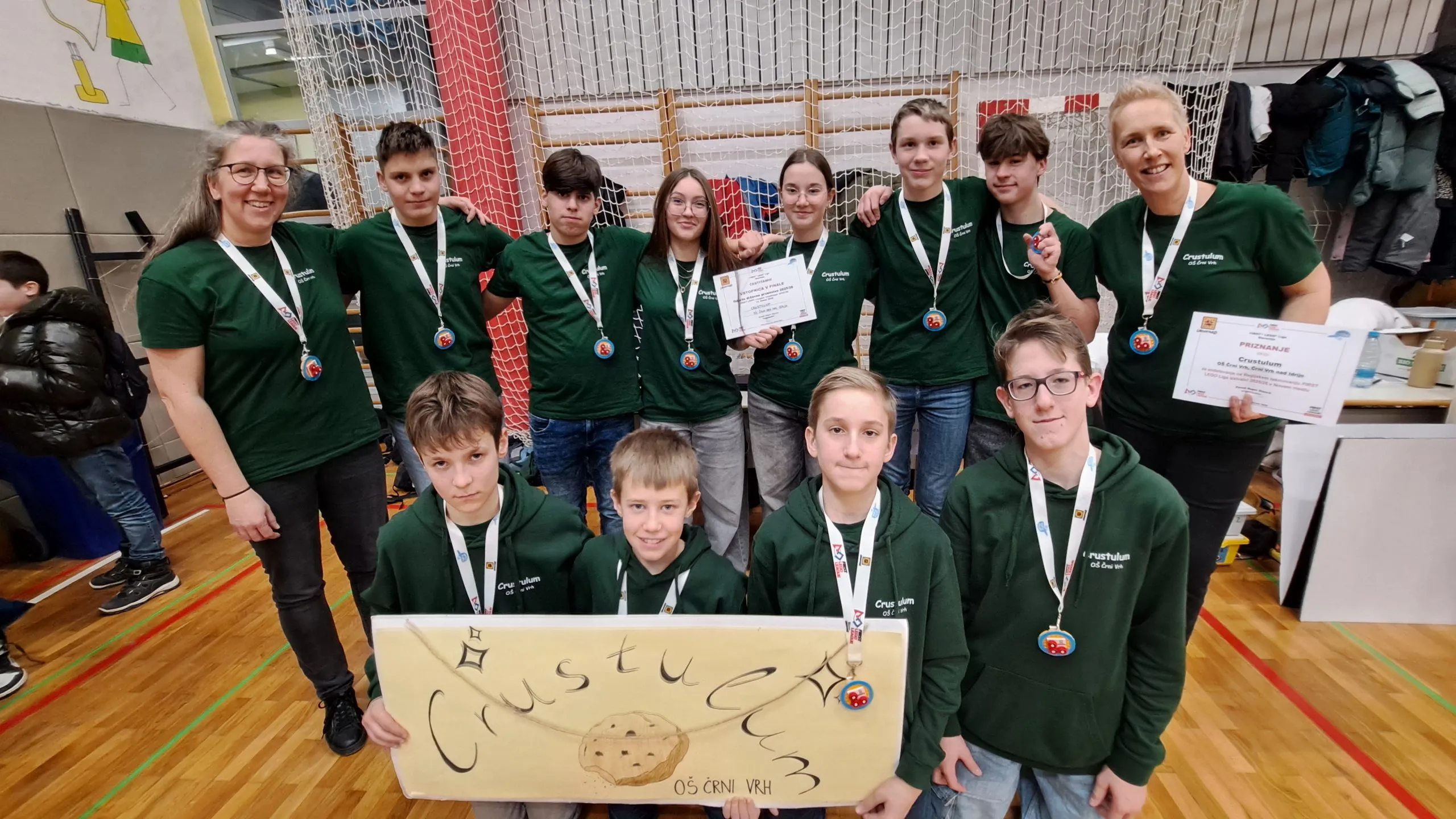 Po dolgem in napornem dnevu so sodniki razglasili rezultate. Med 18 ekipami so izbrali šest najboljših, ki se bodo udeležile državnega tekmovanja, ki bo 14. marca 2026 v Dobrovi pri Ljubljani. Ekipa Crustulum je bila izbrana med te ekipe, kar predstavlja izjemen dosežek za majhno osnovno šolo, iz katere prihajajo. Uvrstitev na državno tekmovanje je rezultat večmesečnega trdega dela, vztrajnosti, povezanosti ekipe in podpore mentorjev ter okolja. Za ekipo, šolo in kraj to ni le tekmovalni uspeh, temveč dokaz, da lahko tudi iz majhne skupnosti zrastejo velike ideje in vrhunski rezultati.