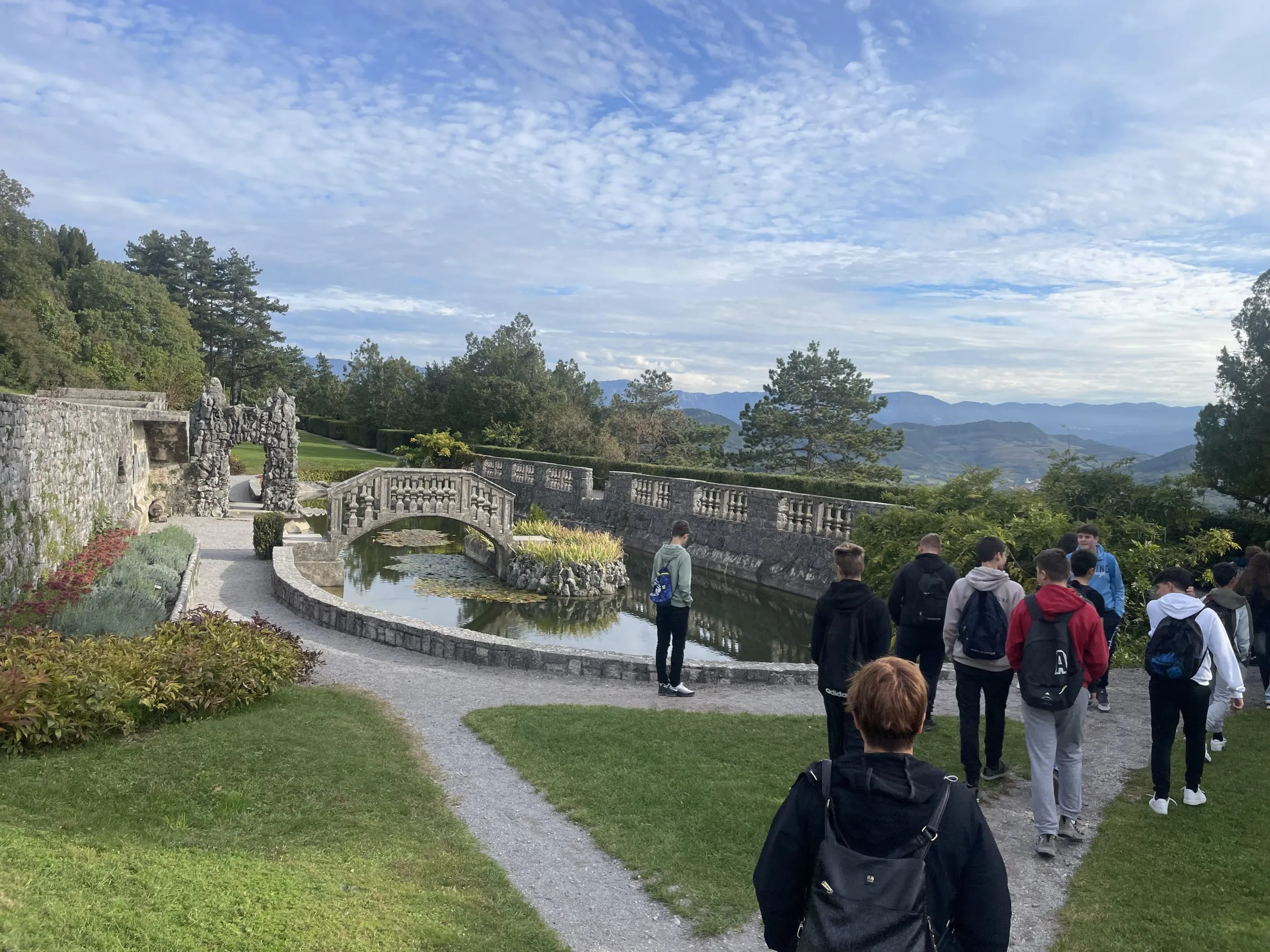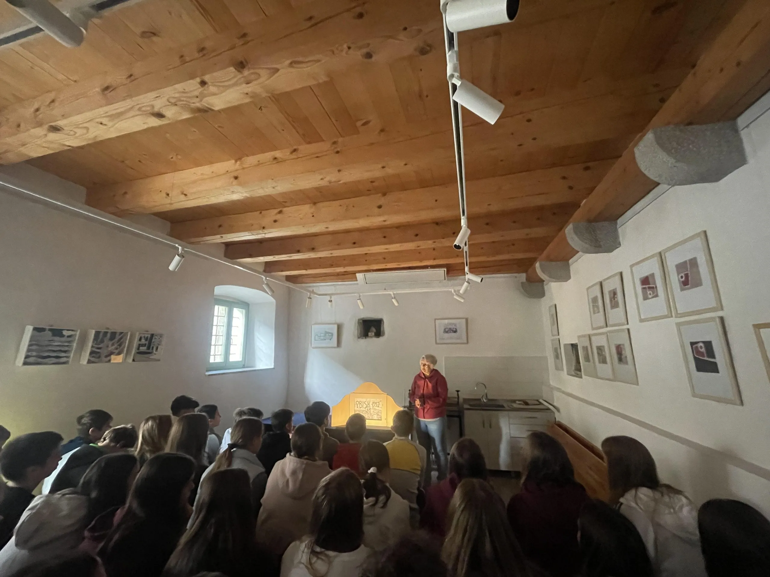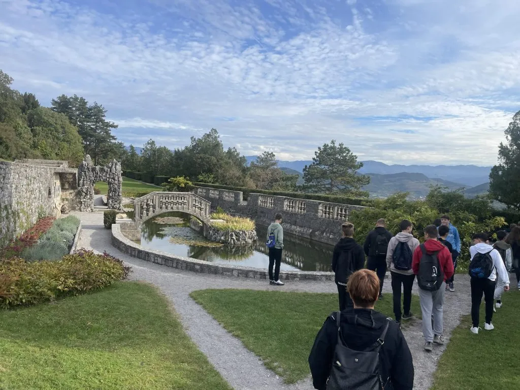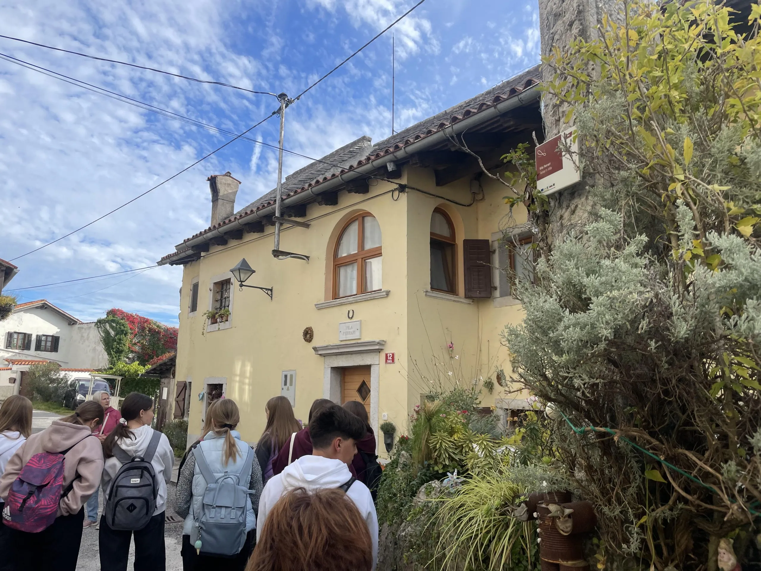 Med sprehodom po slikovitem kraškem naselju smo si ogledali cerkev, vilo družine Ferrari in znameniti Ferrarijev vrt. Tam smo izvedeli, kako so v preteklosti gojili zelenjavo in zbirali deževnico, ki so jo uporabljali za zalivanje v času suše. Vodička Vlasta nas je nato povabila v svojo galerijo, kjer nam je s pomočjo kamišibaja predstavila zanimivo zgodbo o Maksu Fabianiju in njegovem vajencu Adolfu Hitlerju – slednji sicer nikoli ni bil zaposlen v Fabianijevem arhitekturnem uradu, a je, kot vemo, kasneje močno zaznamoval evropsko zgodovino.