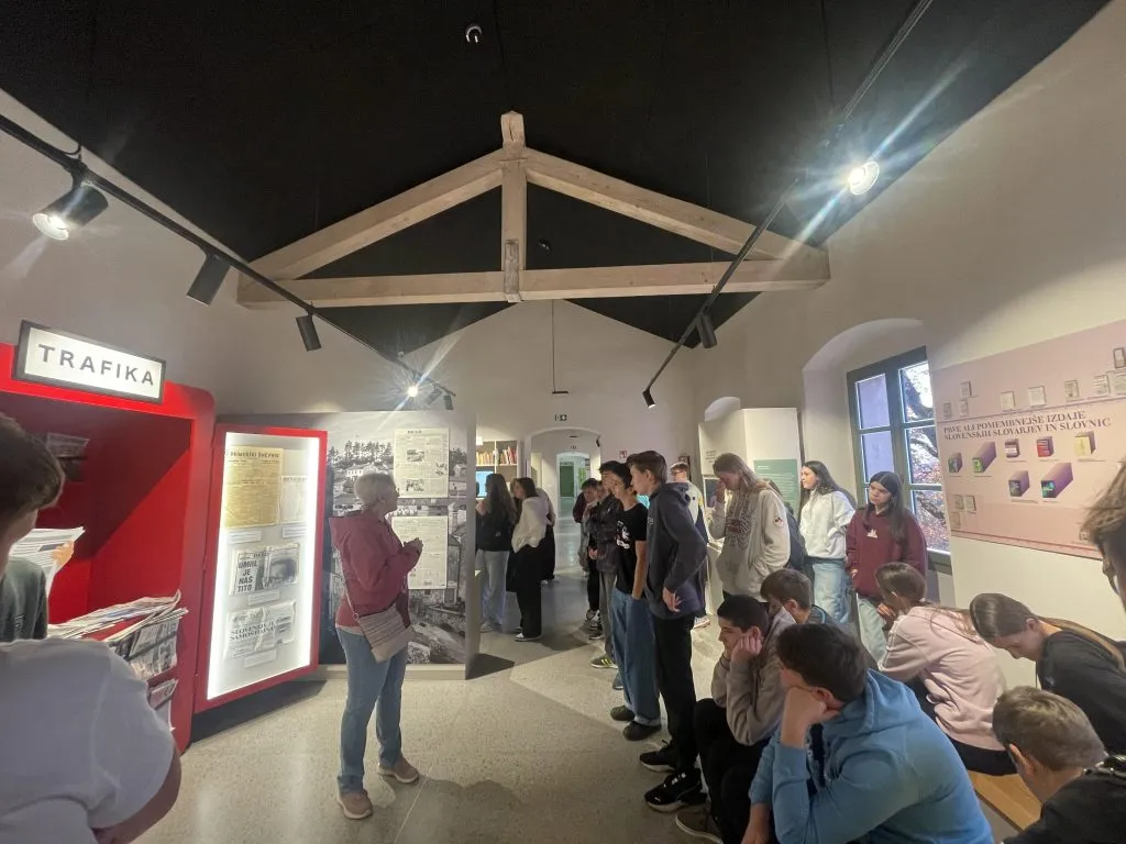 Po ogledu Štanjela smo obiskali še Muzej knjige in jezika ter Muzej narave in Krasa. Učenci so se lahko preizkusili v pisanju na stari pisalni stroj, spoznavali različna slovenska narečja, poklepetali s Primožem Trubarjem, se seznanili z znakovnim jezikom in Braillovo pisavo ter opravili telefonski pogovor v pravi telefonski govorilnici na kovance.