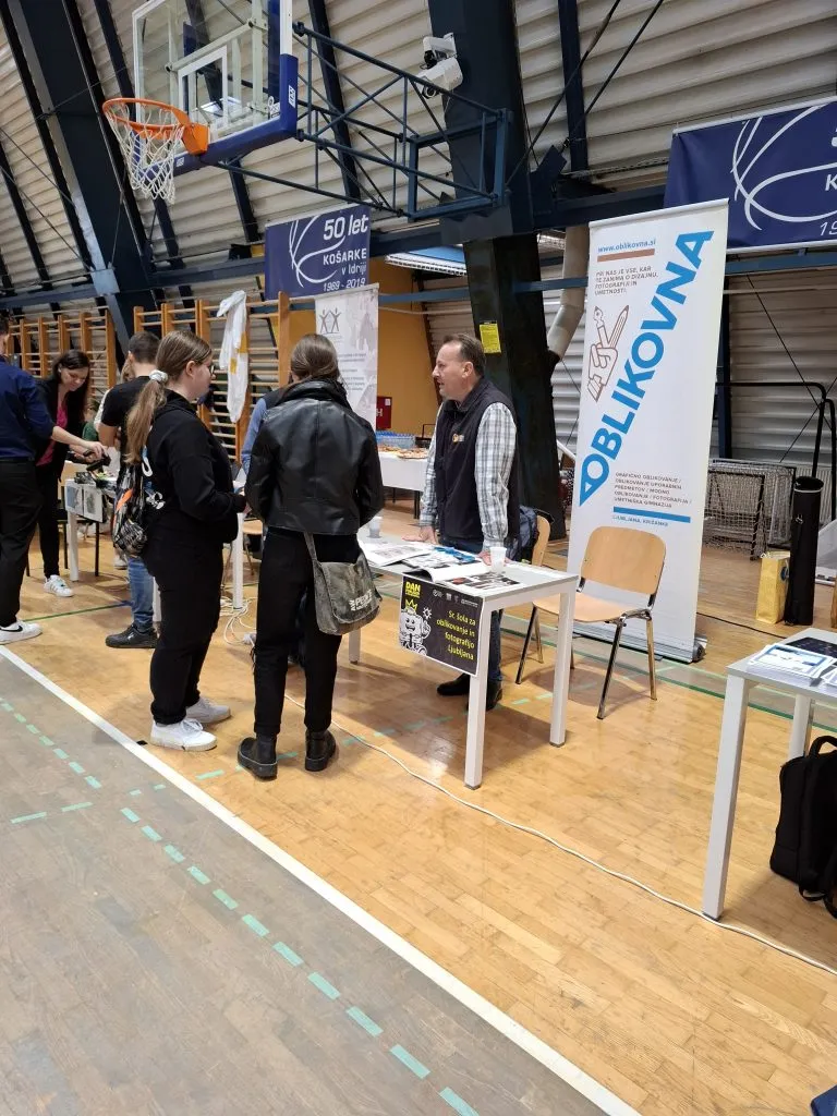 Kot že nekaj let zapored je tudi v letošnjem šolskem letu Mladinski center Idrija za devetošolce občin Idrija in Cerkno organiziral Dan poklicev. Tokrat se je vse dogajanje preselilo v sam center mesta, v idrijsko modro dvorano. V petek, 11. 10. 2024, so devetošolci na enem mestu spoznali 23 različnih srednjih šol, ki so predstavljale svoje programe. Programe so predstavljali dijaki, med njimi je bilo kar nekaj bivših učencev naše šole. Na dnevu poklicev je sodelovalo tudi sedem domačih podjetij in trije obrtniki, ki so predstavljali poklice, ki jih zaposlujejo. Predstavljeno je bilo študentsko delo in mladinske izmenjave.