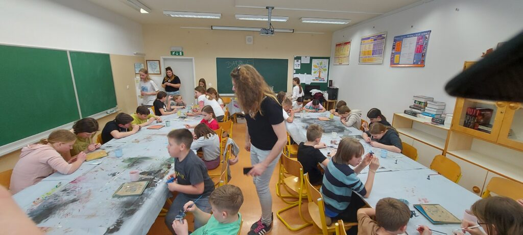 V sredo, 29. 3. 2023, smo na šoli gostili posebne delavnice, na katerih so se učenci lahko preizkusili z barvanjem figuric, ki so bile ustvarjene s pomočjo 3D-printerjev. Ob sodelovanju z društvom KUD Amulet D20, ki so iz Ljubljane prinesli vse potrebno za izvedbo delavnice, se je za učence učilnica angleščine tako spremenila v ustvarjalnico, kjer so barvali od pošasti, junakov ter različnih živali. Učenci so nato domov odnesli vse, kar so ustvarili, da bodo sedaj figurice lahko lepšale tudi njihove domove. Prilagamo nekaj fotografij iz dogodka.