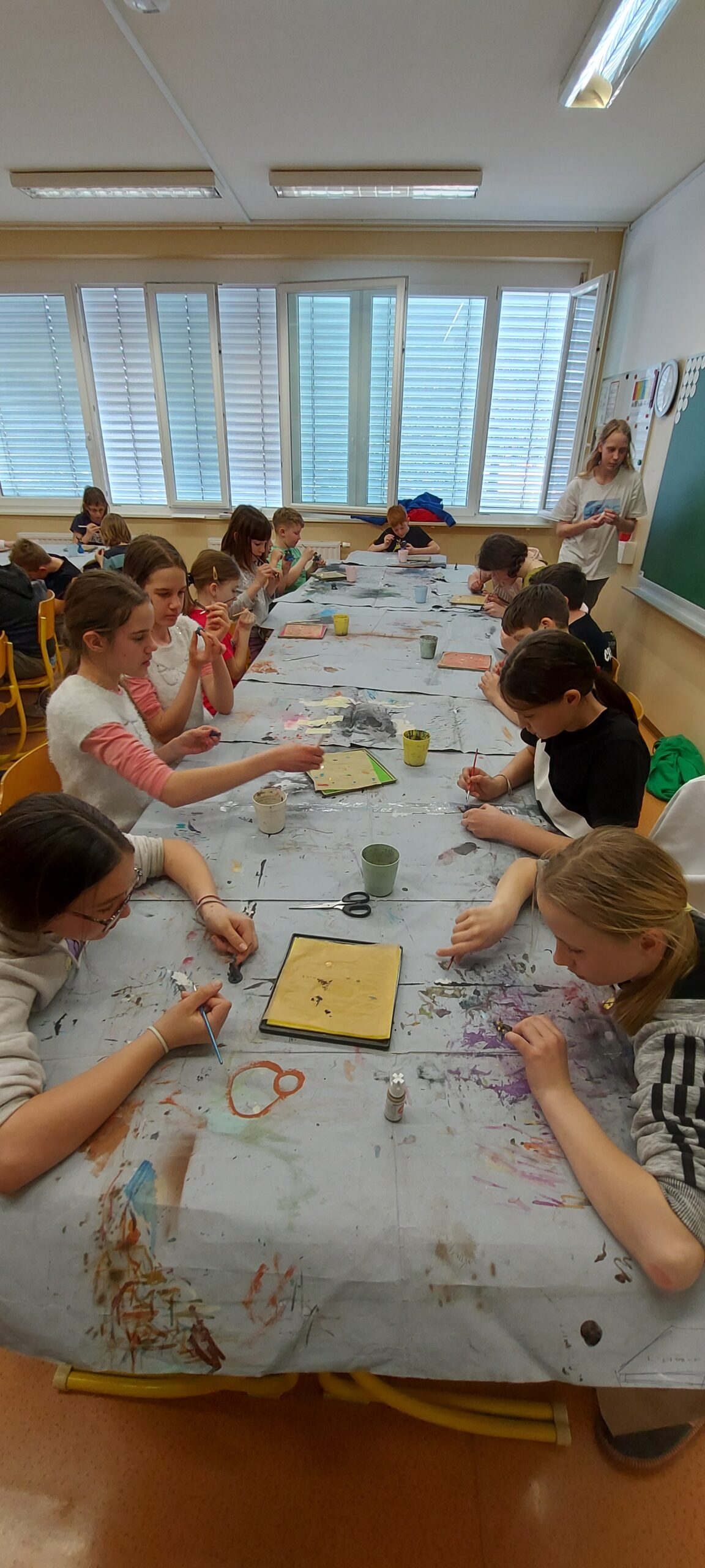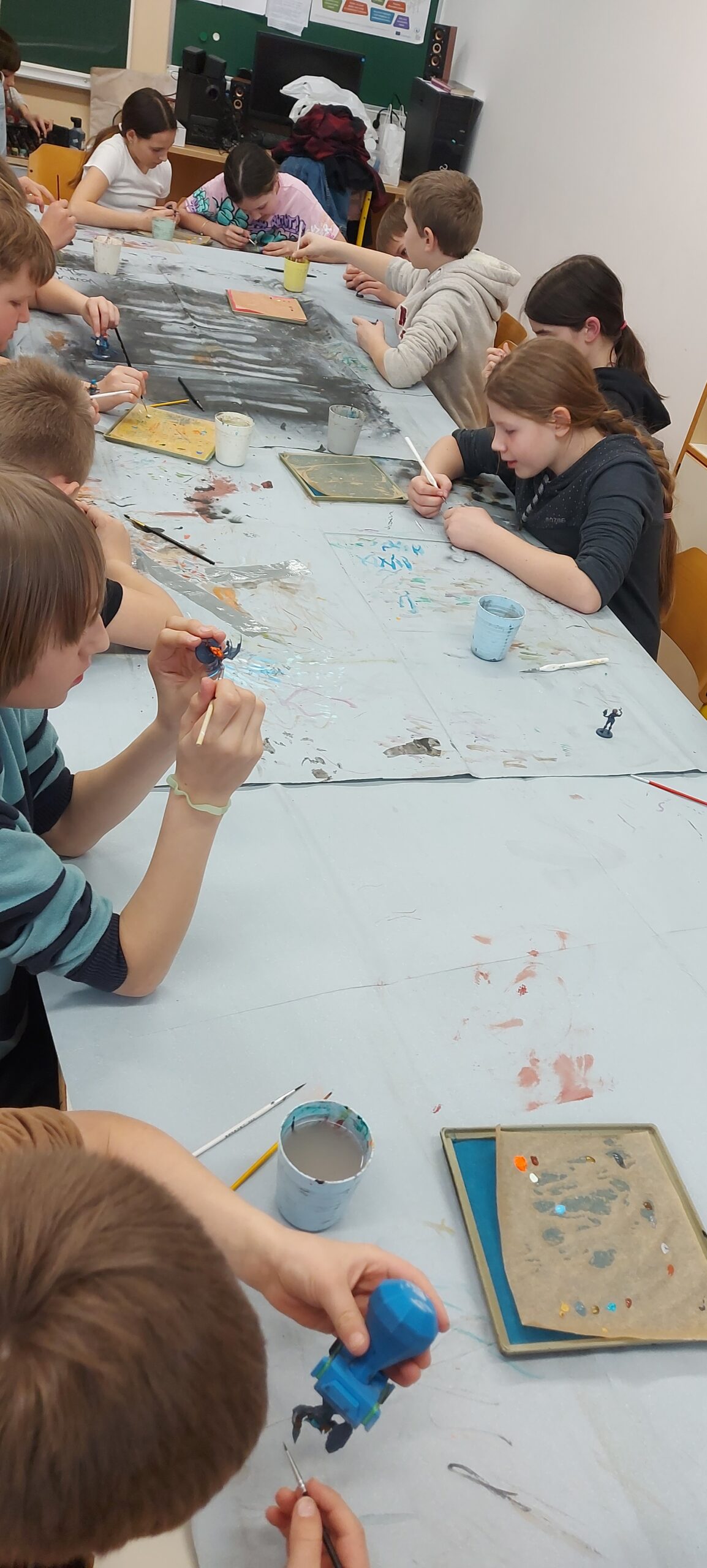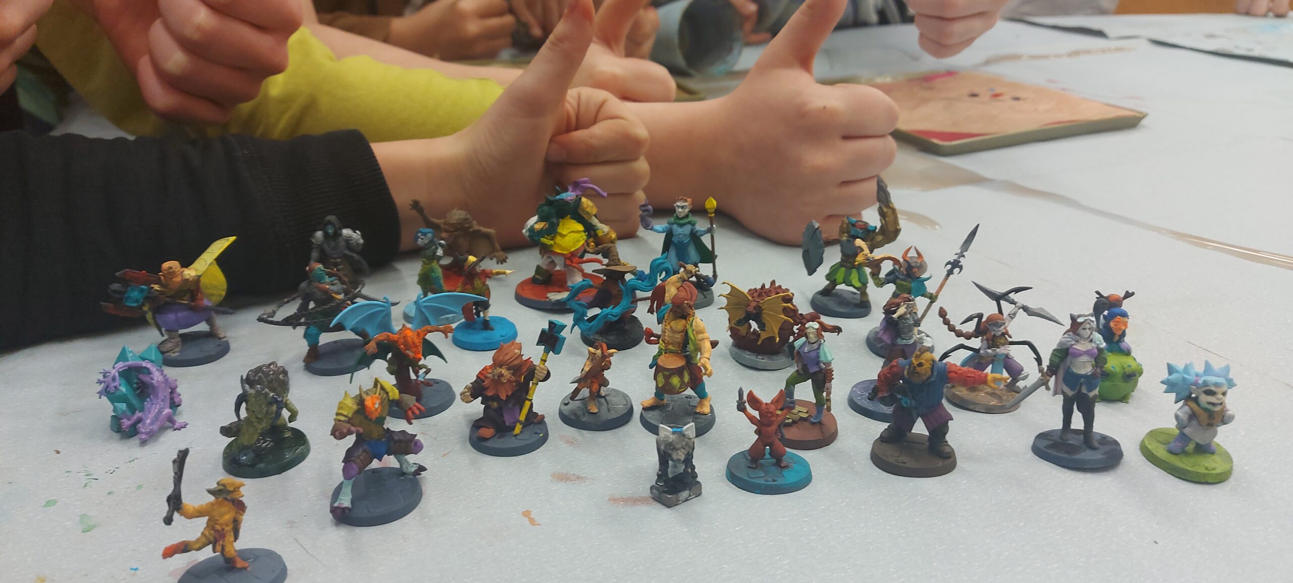 V sredo, 29. 3. 2023, smo na šoli gostili posebne delavnice, na katerih so se učenci lahko preizkusili z barvanjem figuric, ki so bile ustvarjene s pomočjo 3D-printerjev. Ob sodelovanju z društvom KUD Amulet D20, ki so iz Ljubljane prinesli vse potrebno za izvedbo delavnice, se je za učence učilnica angleščine tako spremenila v ustvarjalnico, kjer so barvali od pošasti, junakov ter različnih živali. Učenci so nato domov odnesli vse, kar so ustvarili, da bodo sedaj figurice lahko lepšale tudi njihove domove. Prilagamo nekaj fotografij iz dogodka.