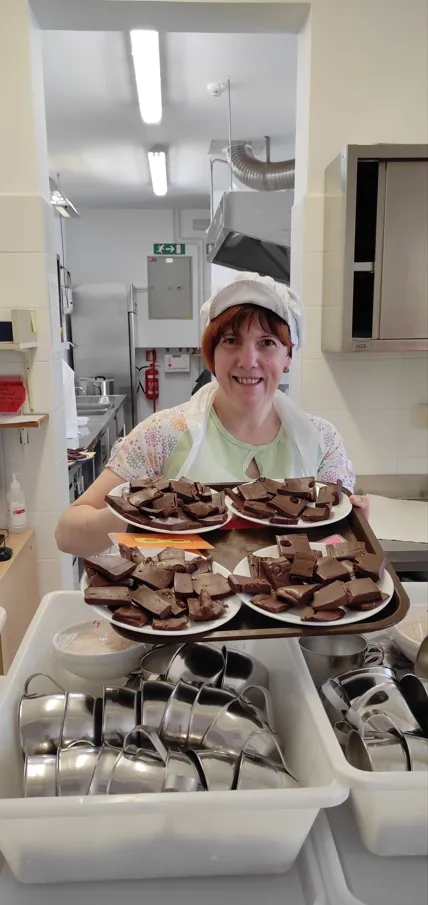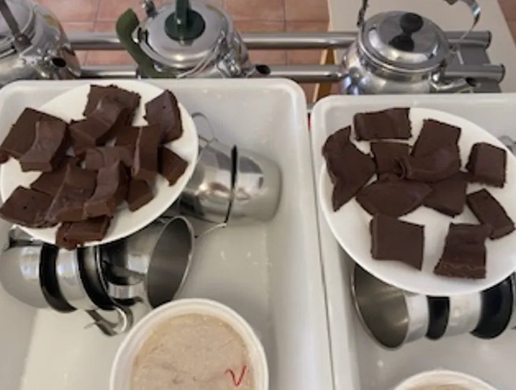 Pri pouku gospodinjstva v 6. razredu so učenci izdelali domačo čokolado. Šolska kuharica ga. Melita Lukančič je dobila idejo in čokolado izdelala za vse učence. Dobili so jo danes pri malici. Ga. Lukančič se je na tak način zahvalila vsem učencem in učiteljem za sodelovanje pri izpolnjevanju vprašalnikov, ki jih potrebuje za izdelavo diplomske naloge. Če želi kdo recept, ga lahko najde na https://oblizniprste.si/slastne-sladice/pregresna-domaca-cokolada/