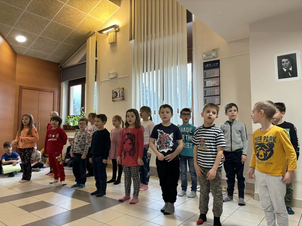 Učenci 1. razreda so nastopili z lutkovno predstavo O zares glasnem strahu, avtorice Aksinje Kermauner. Kasneje so zapeli še tri pesmi, avtorja Janeza Bitenca – Medvedek pleše, Na saneh ter Mravlja in polž.