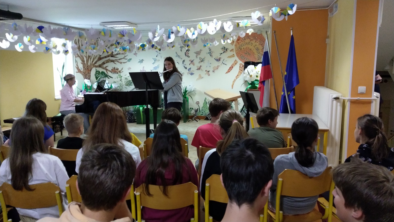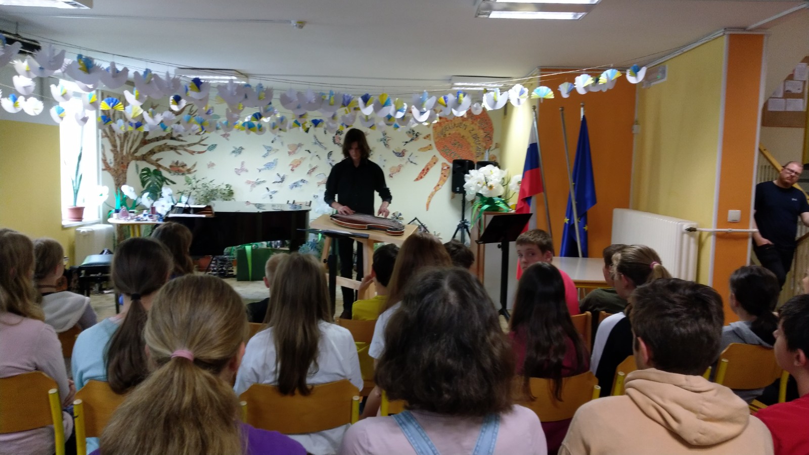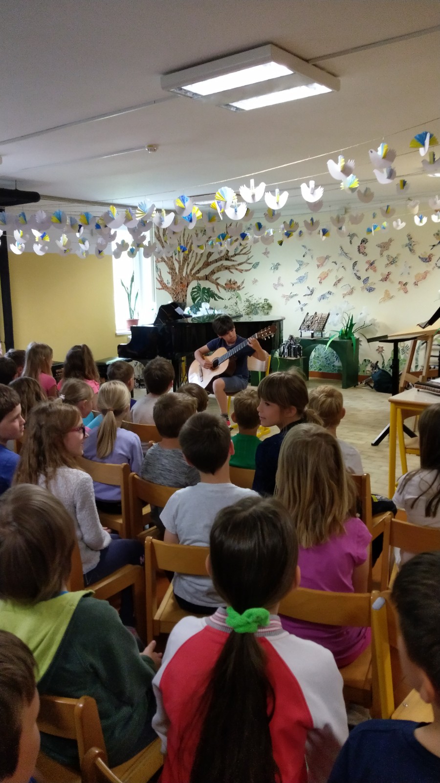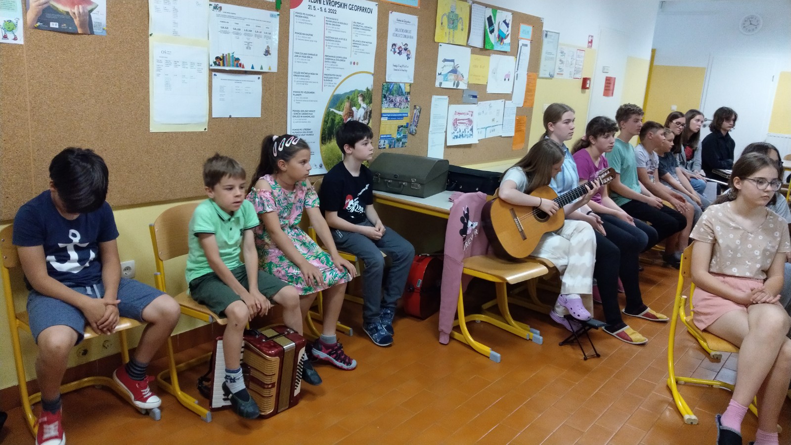 Začetek tedna je bil na naši šoli glasbeno obarvan. Po nekaj letnem premoru se je v avli šole zopet odvijal Glasbeni dogodek, na katerem so se s svojimi instrumenti predstavili učenci naše šole, ki obiskujejo Glasbeno šolo Idrija. Prisluhnili smo različnim zvrstem glasbe, izvedenih na različnih instrumentih. Po avli so odmevali zvoki kitare, harmonike, violine, violončela, klavirja, prečne flavte in citer.