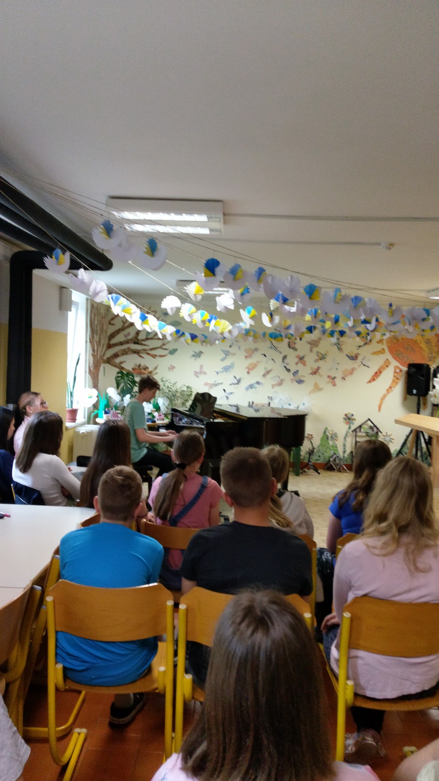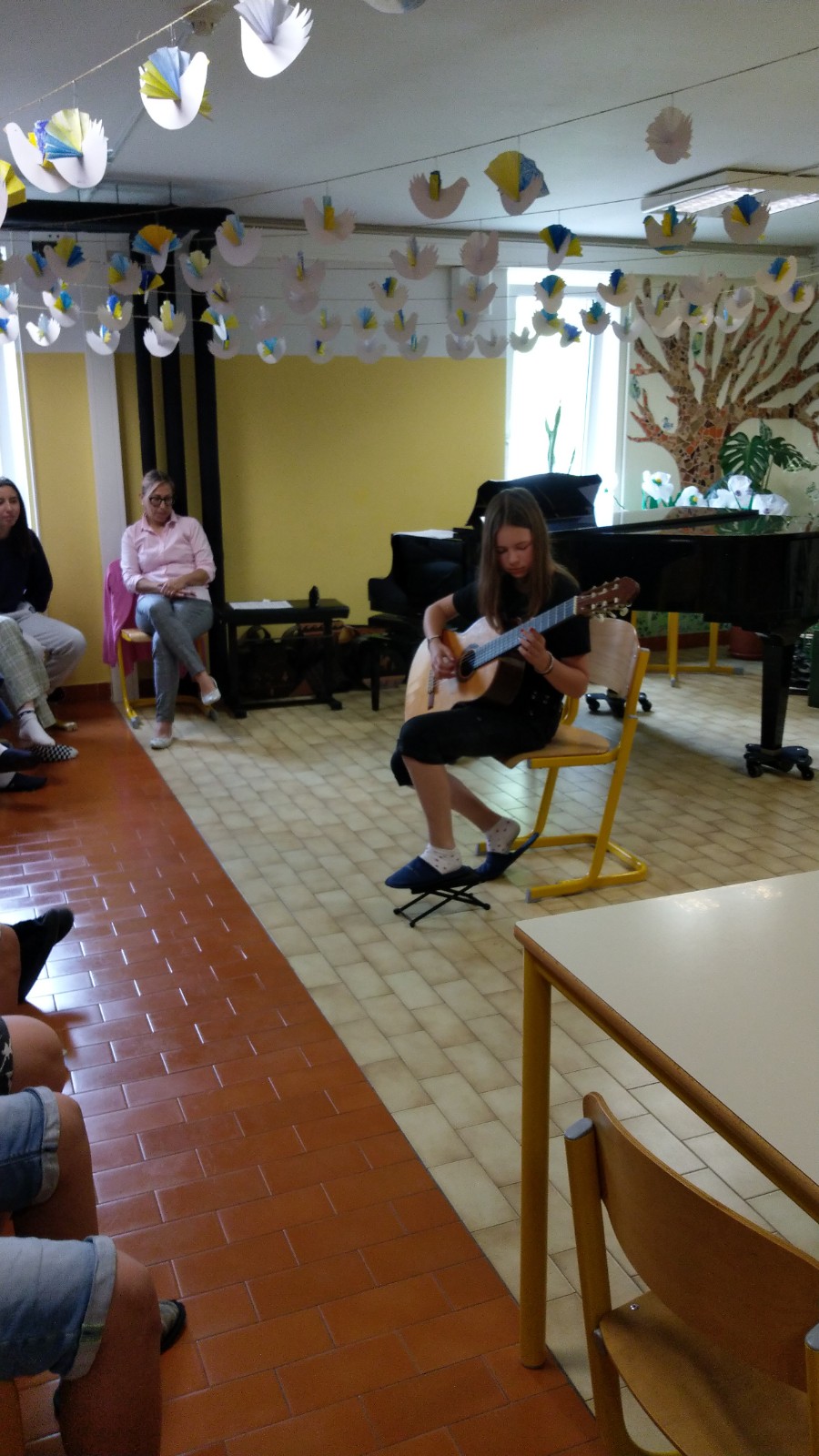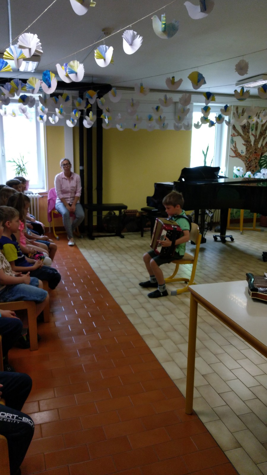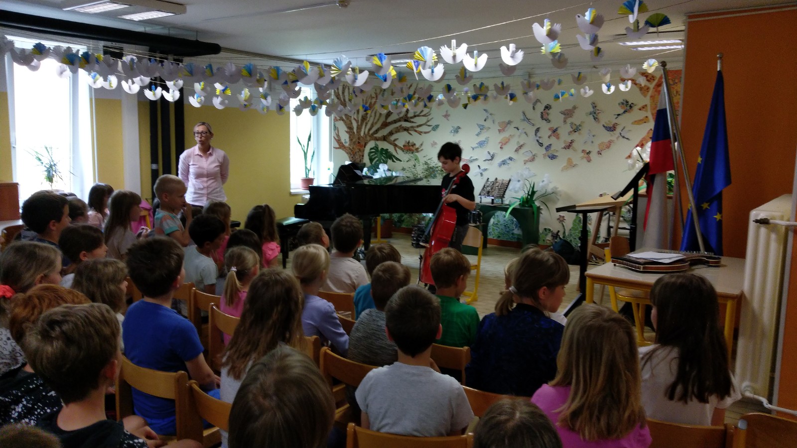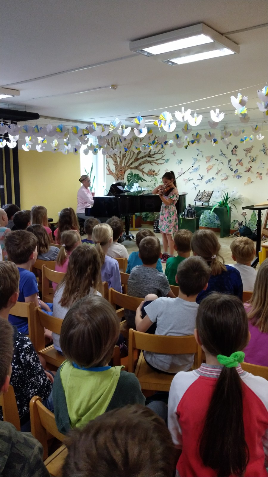 Začetek tedna je bil na naši šoli glasbeno obarvan. Po nekaj letnem premoru se je v avli šole zopet odvijal Glasbeni dogodek, na katerem so se s svojimi instrumenti predstavili učenci naše šole, ki obiskujejo Glasbeno šolo Idrija. Prisluhnili smo različnim zvrstem glasbe, izvedenih na različnih instrumentih. Po avli so odmevali zvoki kitare, harmonike, violine, violončela, klavirja, prečne flavte in citer.