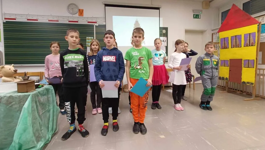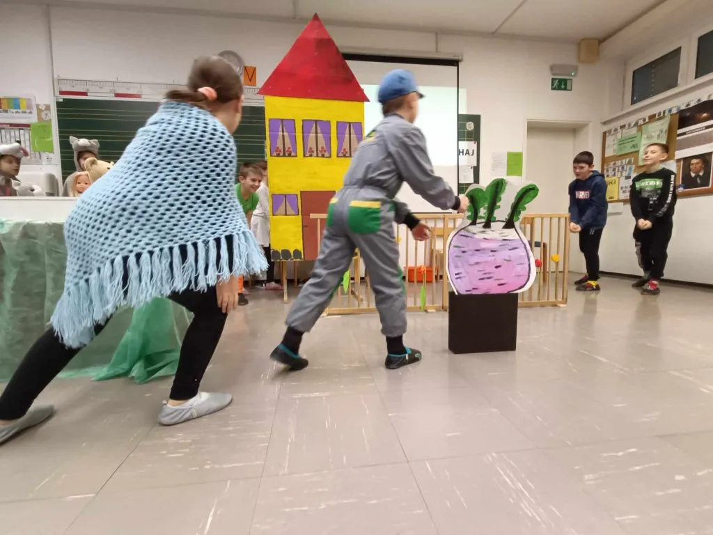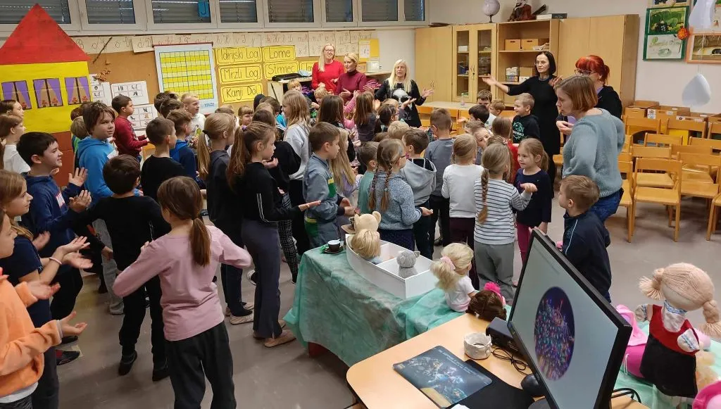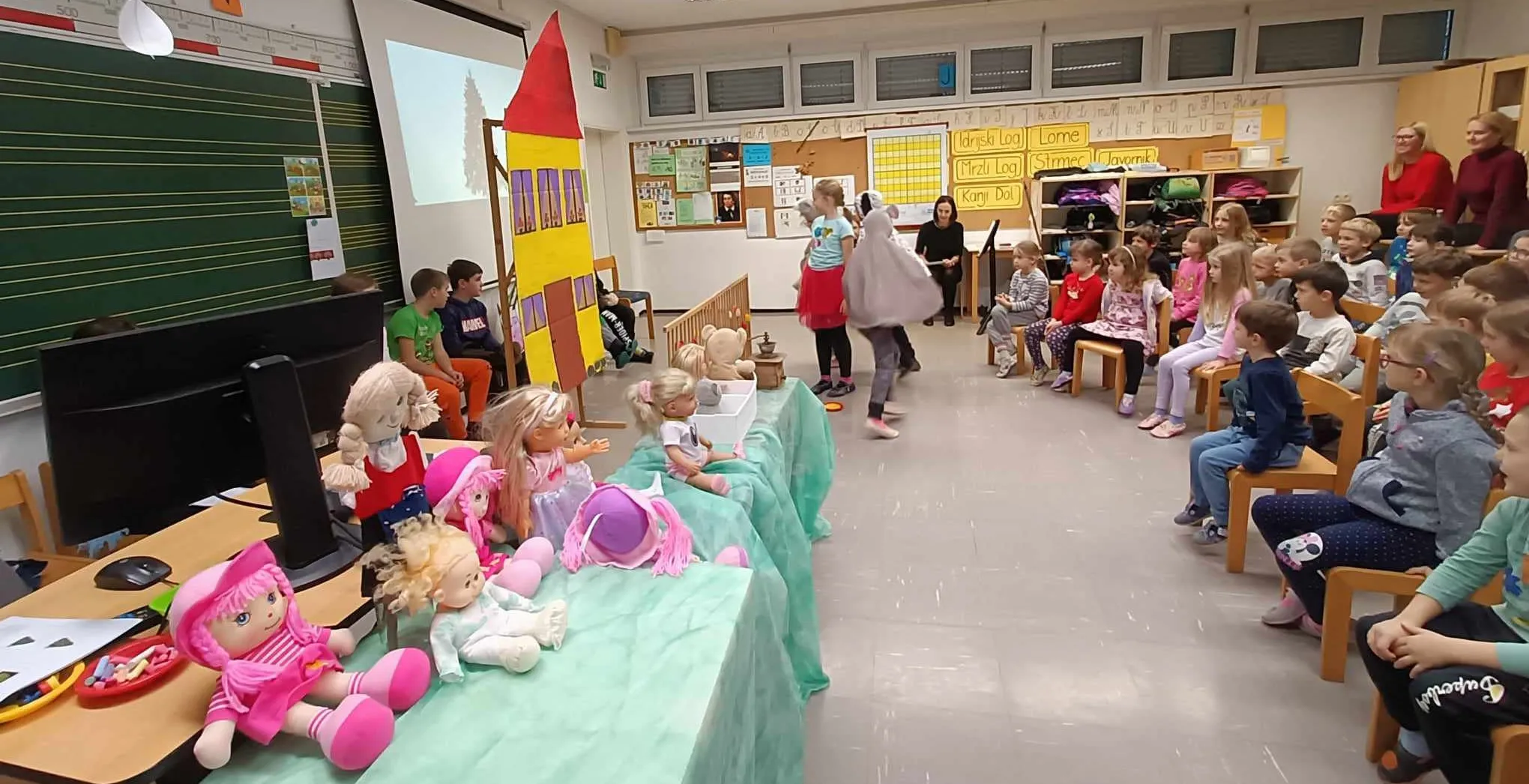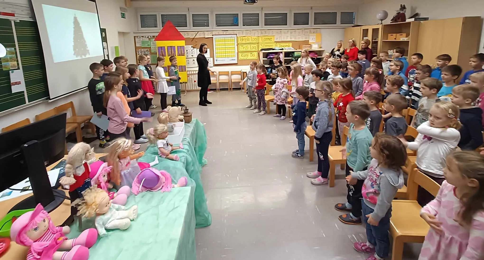 Učenci 1., 2. in 4. razreda ter Konjički iz vrtca so v petek, 20. 12. 2024 del dopoldneva skupaj preživeli v 3. razredu naše šole. Druženje otrok je potekalo igrivo in sproščeno. Tretješolci so se predstavili z glasbeno pravljico Debela repa, z Zlato ladjo pa so vse prisotne odpeljali na potovanje v pravljične dežele, kjer so peli, se spoznavali in plesali. Poglavitna značilnost druženja je bila v interpretaciji pesmi (Jesenska, Pekarne, Zlata ladja, Pustite nam ta svet, Smrečica in Lučke) in glasbene pravljice Debela repa ter v povezovalnem dogajanju. Skozi igro, petje, ples in druženje so se otroci zabavali in učili.