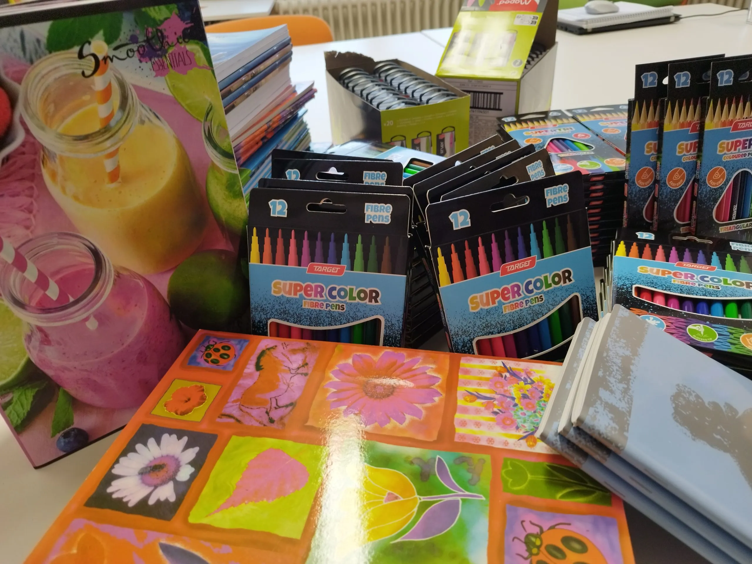 Tudi letos nam je Škofijska karitas Koper preko črnovrške zastopnice podarila veliko zvezkov, barvic, šestil in flomastrov. Šolske potrebščine smo učencem razdelili 13. 6. 2025. Poskrbeli smo, da je prav vsak dobil nekaj, kar bo lahko uporabil v naslednjem šolskem letu.