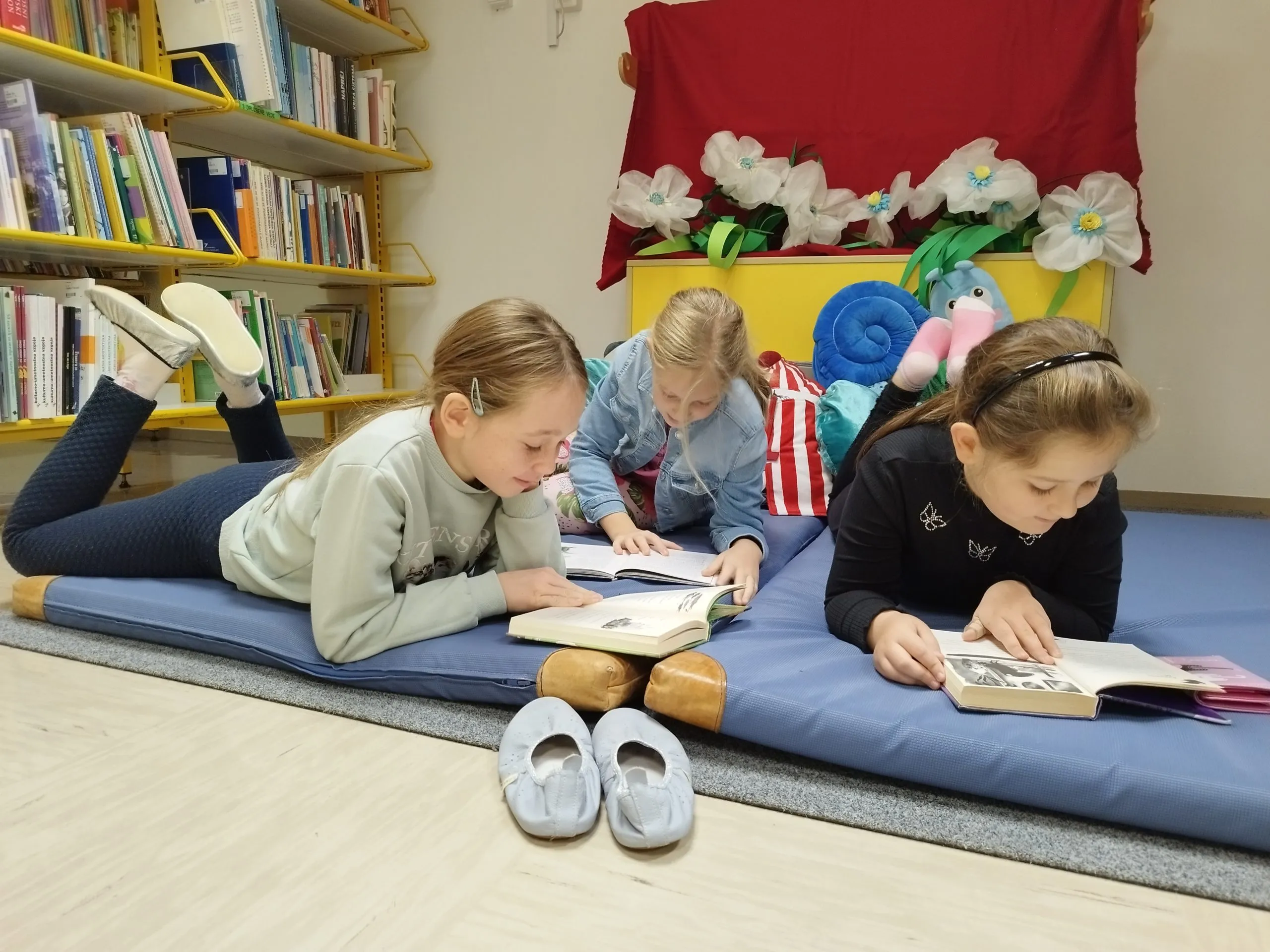 V šolski knjižnici nam je dragocen prav vsak obisk učencev in veselimo se z vsakim novim bralcem. Danes so se nekateri učenci tretjega razreda odločili stopiti korak dlje in poleg slikanic zagristi v debelejše knjige.