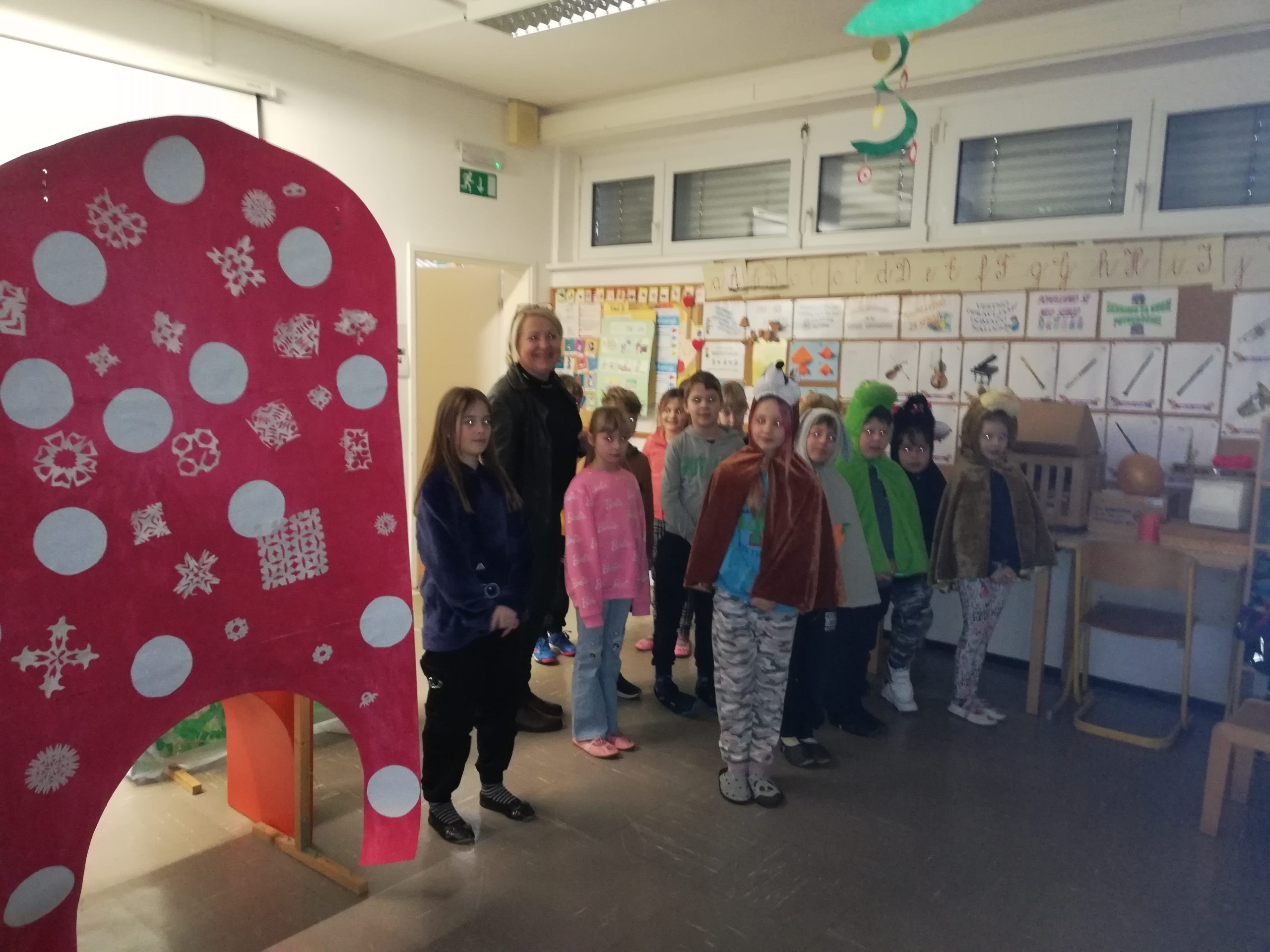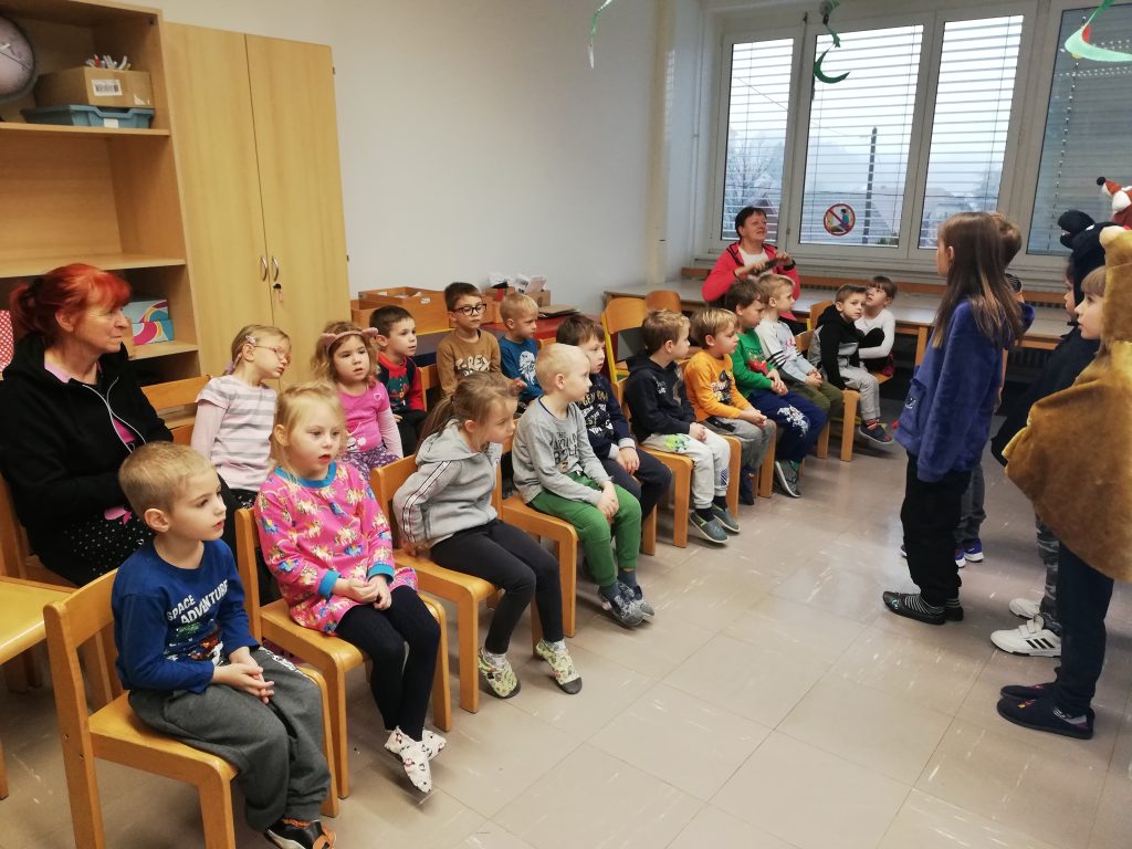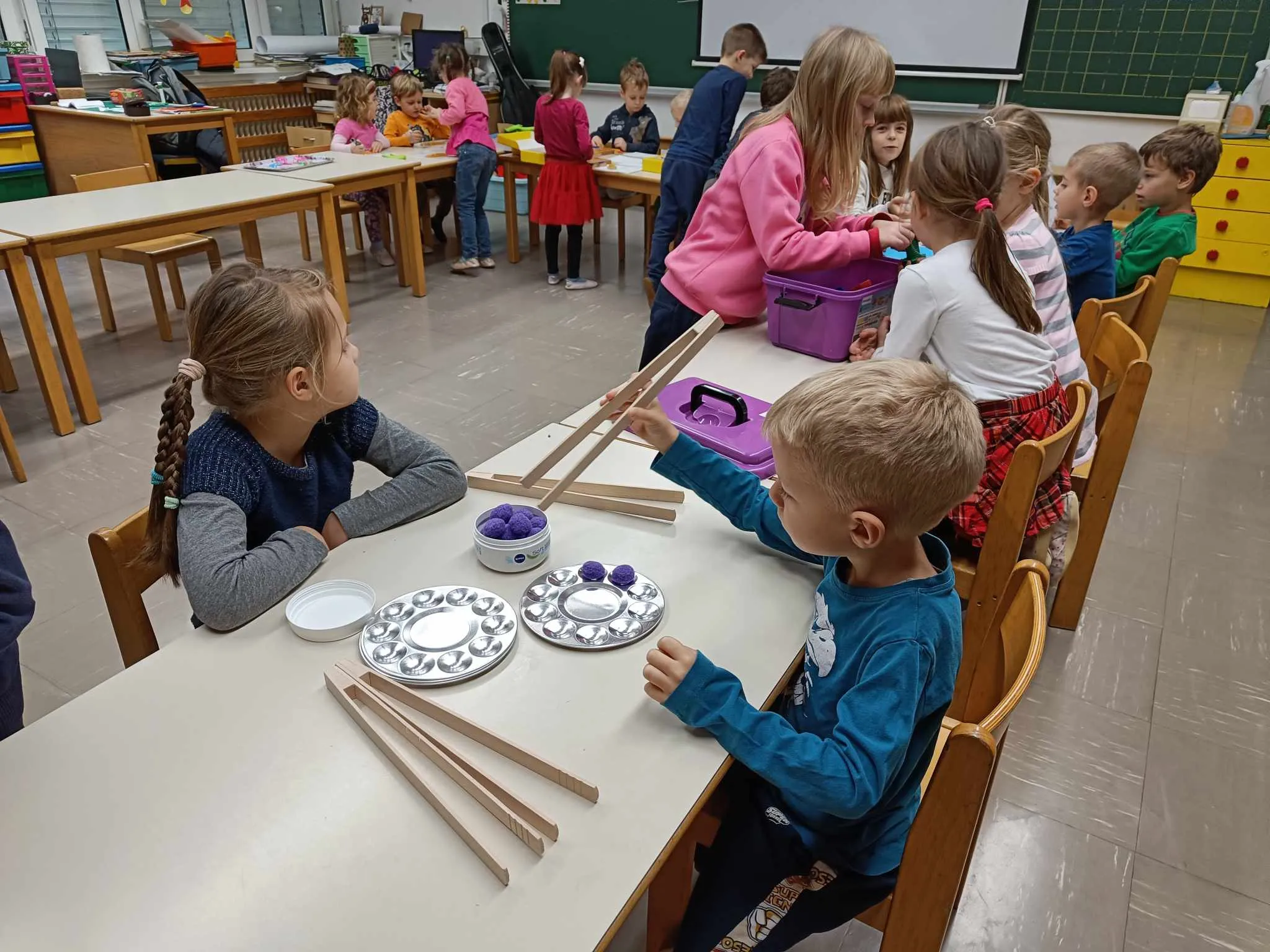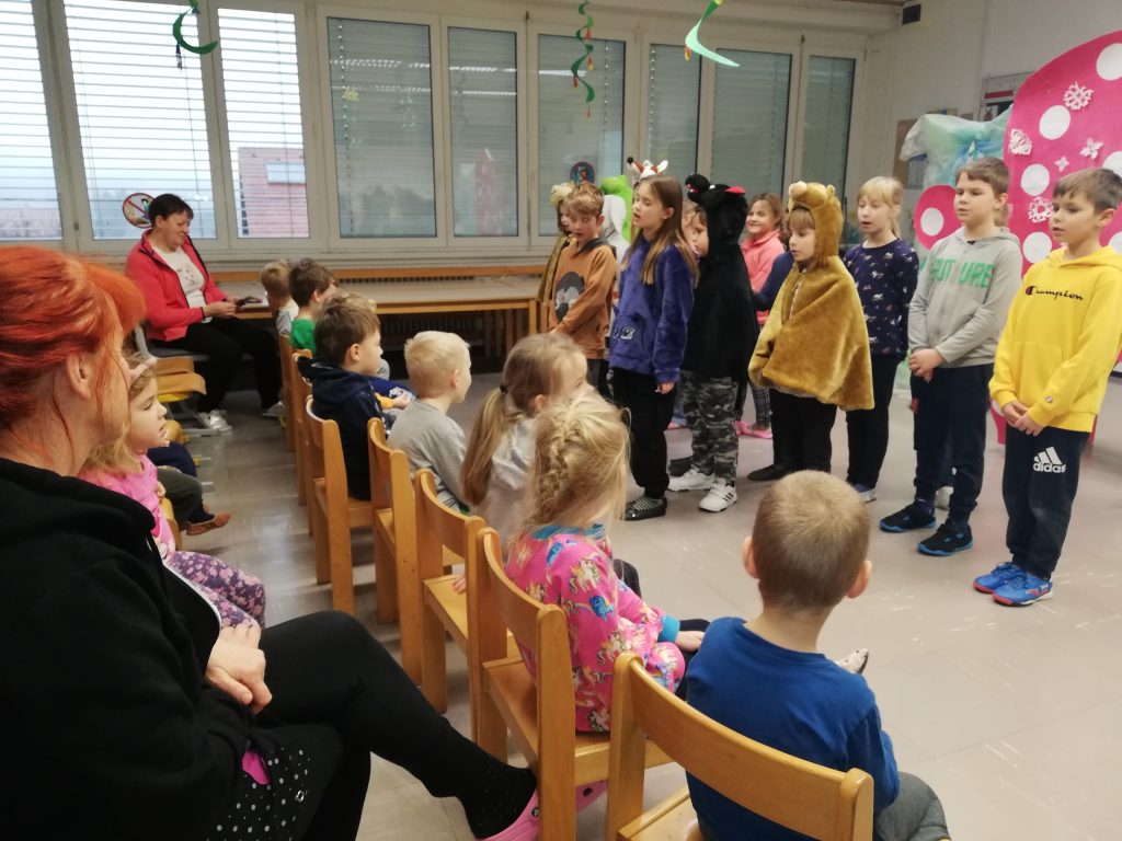 Jelenčki, srnice, medvedki, zajčki, žabice, miške, konjički in vse živali, ki so pomagale decembrskim dobrim možem, so odšle na zaslužene počitnice. Učenci iz šole in otroci iz vrtca pa so danes, v sredo, 3. 1. 2024 zopet prišli nazaj v šolske in vrtčevske prostore. Del dopoldneva je sedemnajst konjičkov iz vrtca preživelo v 1. in 3. razredu naše šole. Druženje otrok je potekalo igrivo in sproščeno. Tretješolci so se jim predstavili z glasbeno pravljico Rokavička, vsi skupaj pa so tudi peli in se spoznavali. Poglavitna značilnost predstave je bila v interpretaciji pesmi (Jaz sem mala miška, Zajček dolgoušček, Lisička je prav zvita zver, Pleši , medo in Rokavička) ter pravljice Rokavička in v povezovalnem dogajanju. Skozi igro, petje in druženje so otroci odkrivali in menjali vloge ter aktivno sodelovali. Prvošolci so kot pravi šolarji sprejeli mlajše otroke in jim prikazali že usvojeno znanje in spretnosti. Vsak prvošolec je predhodno izbral dejavnost, ki jo dobro pozna in jo predstavil gostom. Otroci so s skupnimi močmi urili ročne spretnosti, pincetni prijem, vadili grafomotorične vaje, pogovorne zmožnosti ter se nadvse zabavali. Dan je bil obojestransko produktiven in odskočna deska za nadaljnje sodelovanje.
