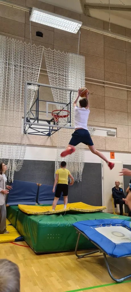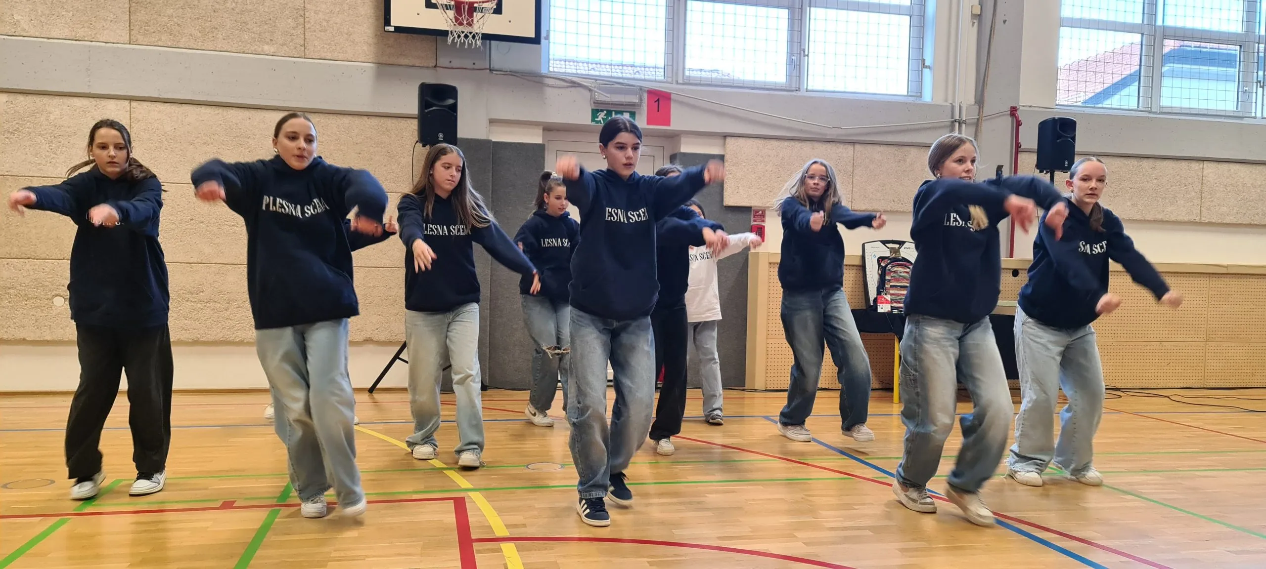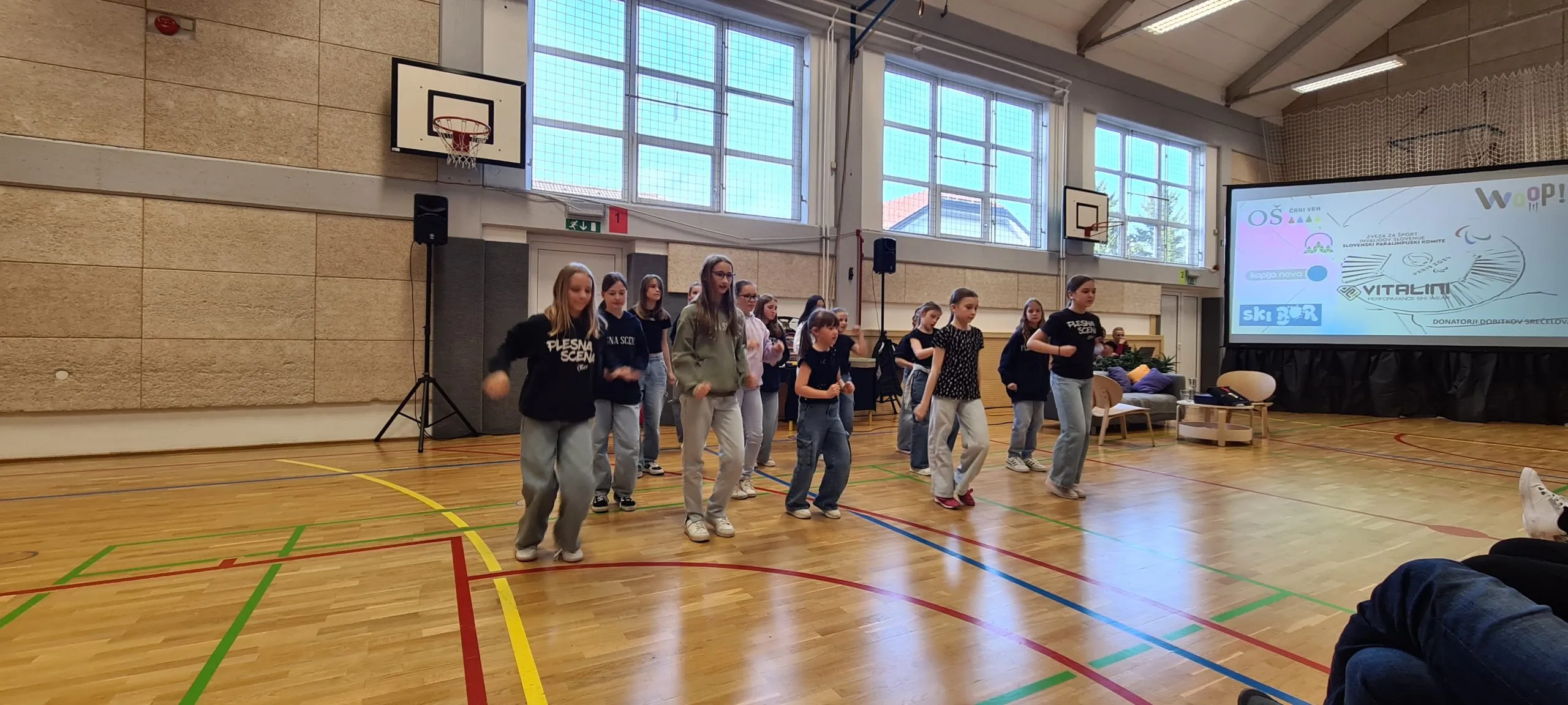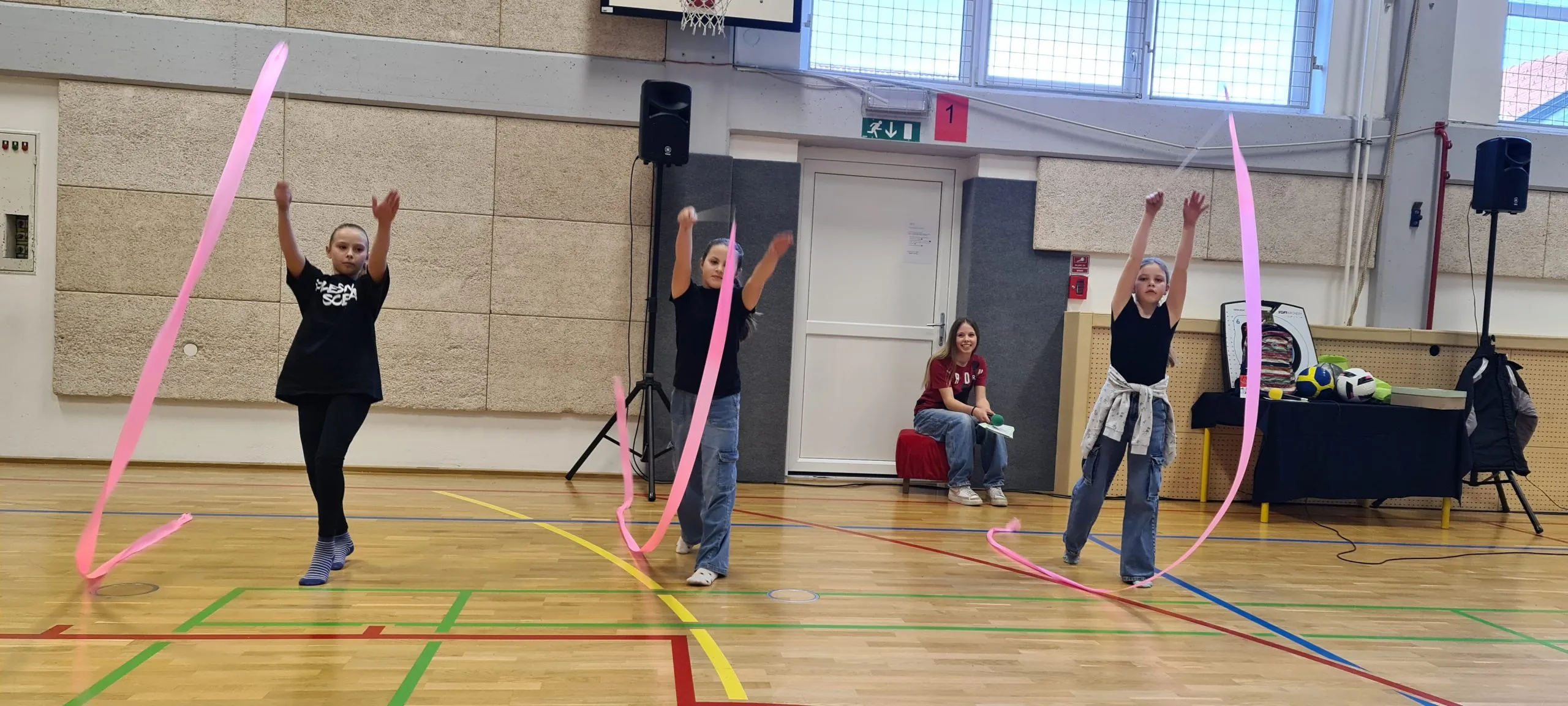 Tudi pri urah športa se dogajajo zanimive aktivnosti. Tako smo lahko včeraj videli ples s trakovi in atraktivna zabijanja na koš.