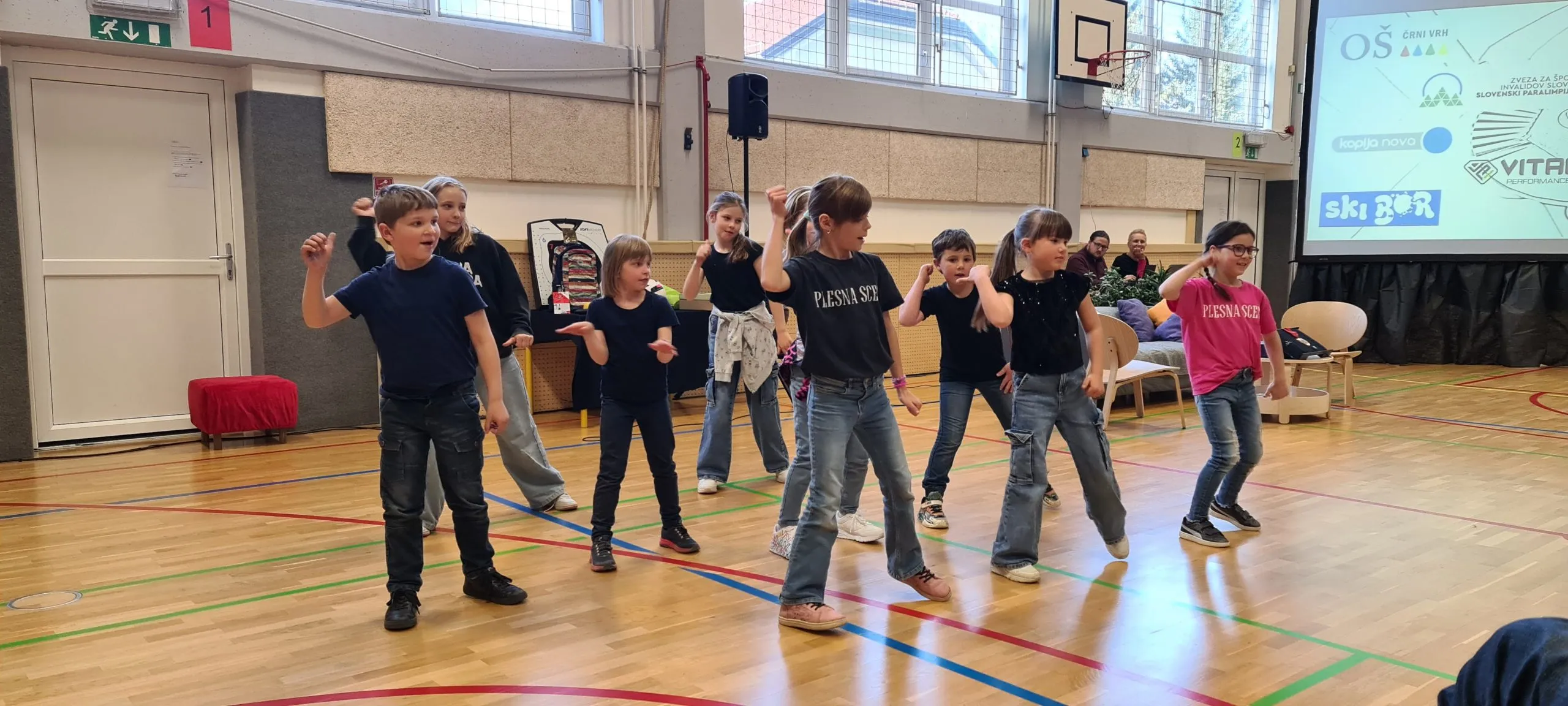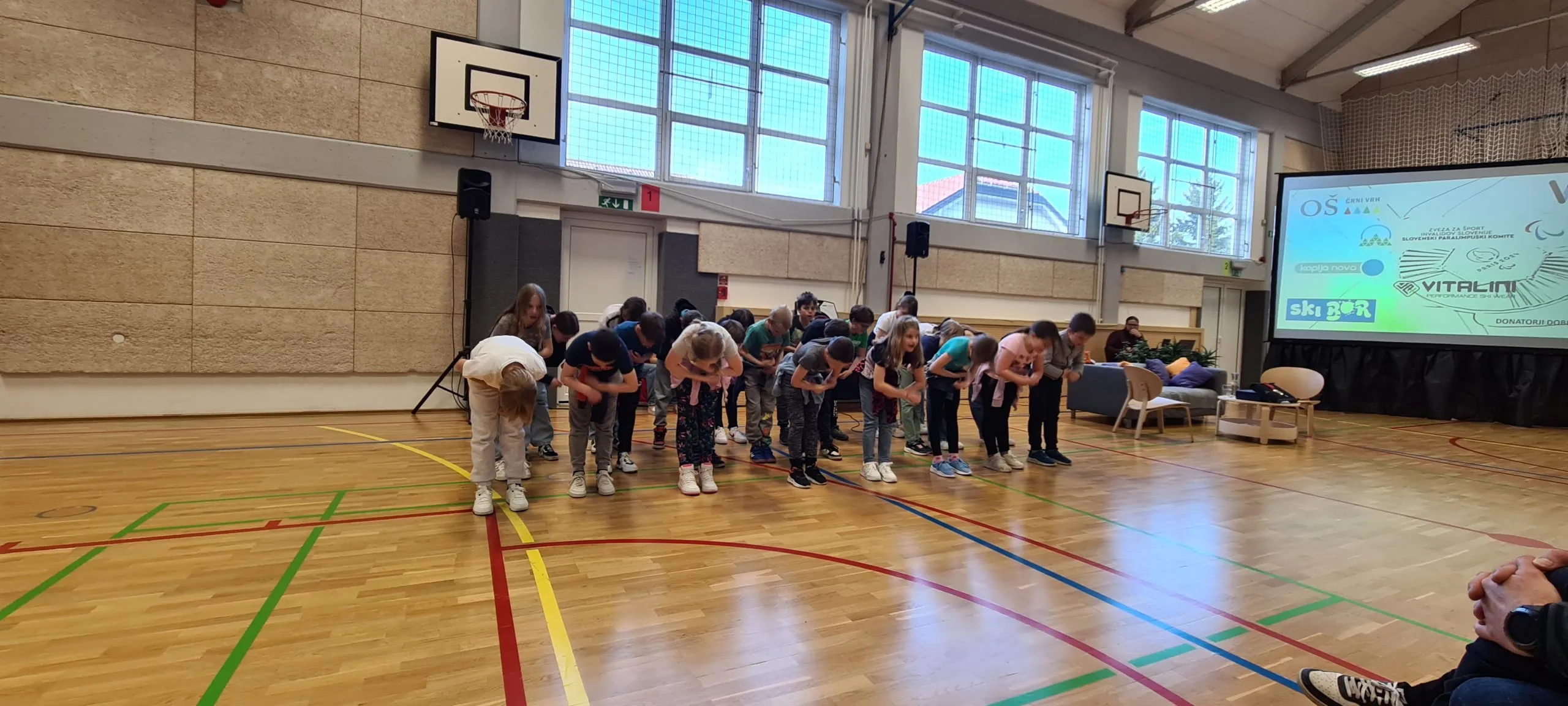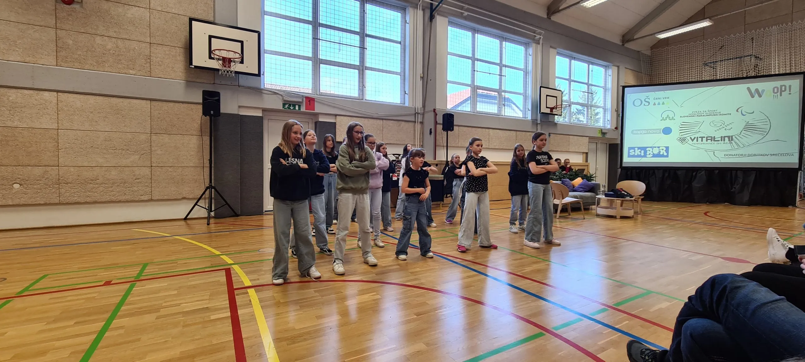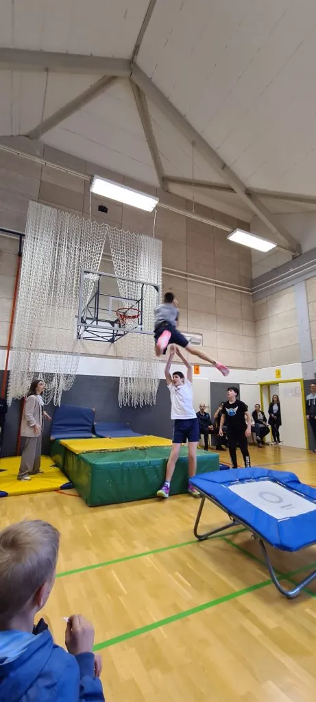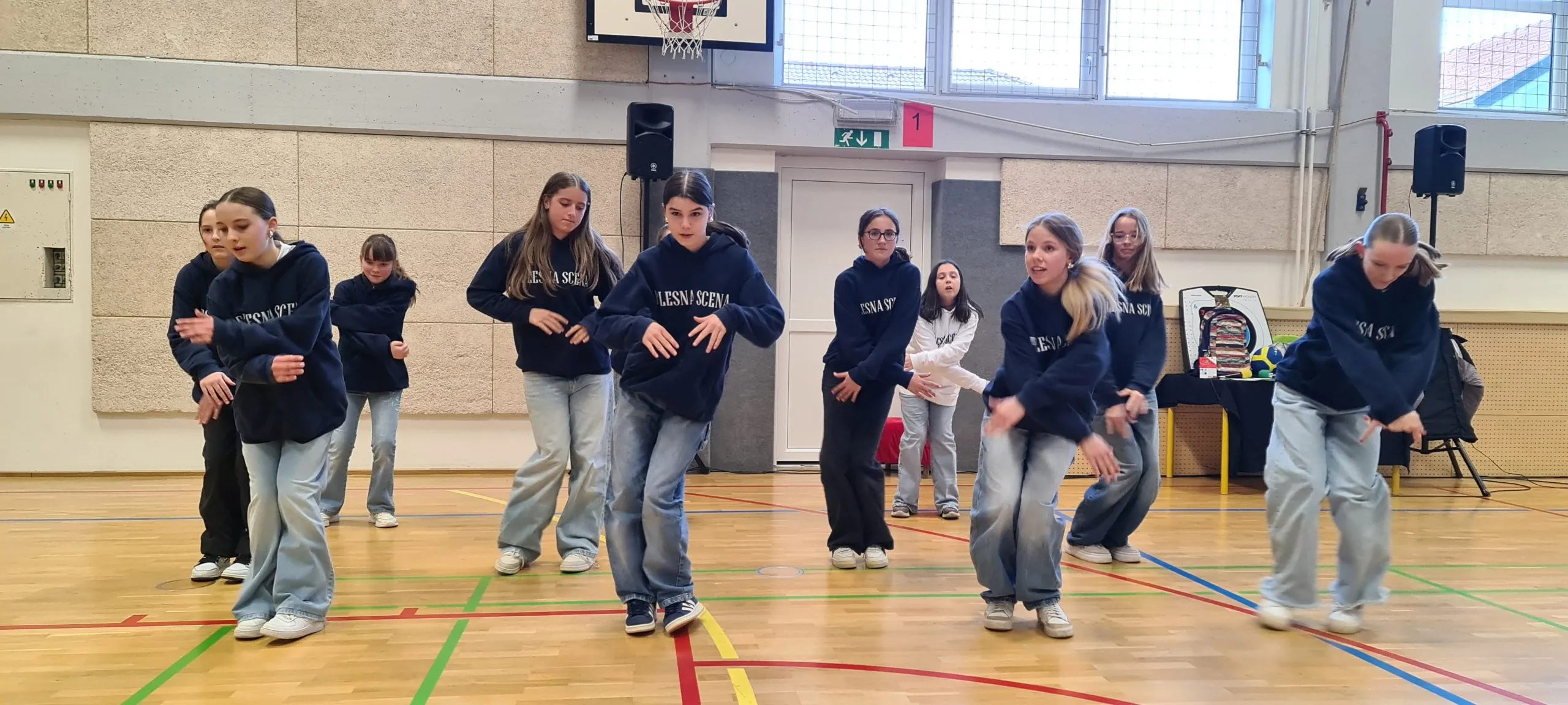 Tudi pri urah športa se dogajajo zanimive aktivnosti. Tako smo lahko včeraj videli ples s trakovi in atraktivna zabijanja na koš.