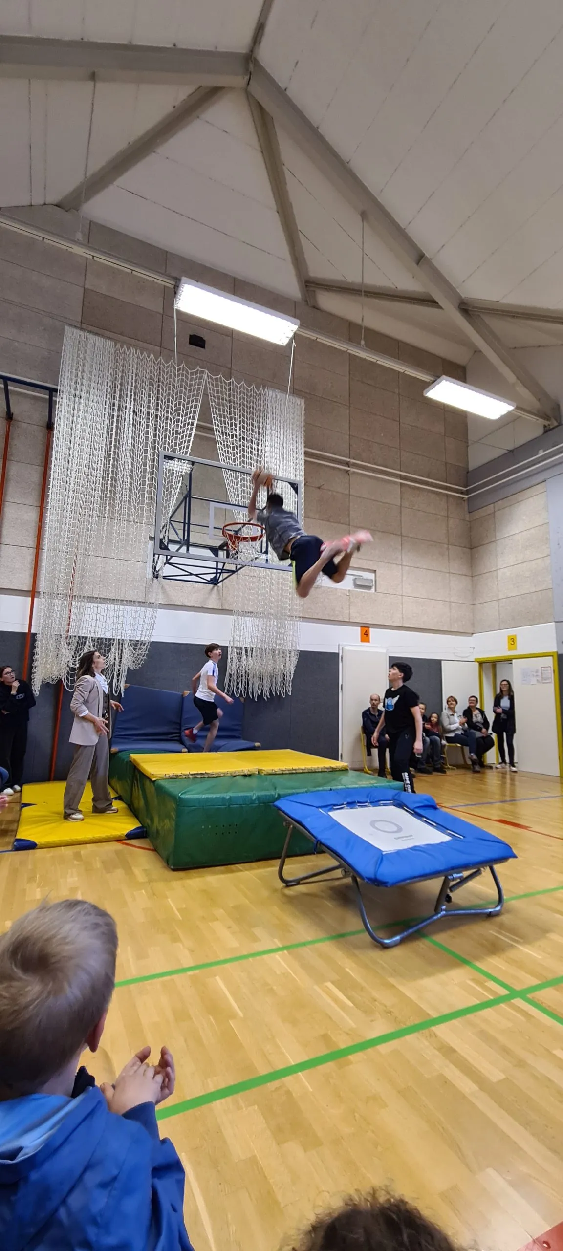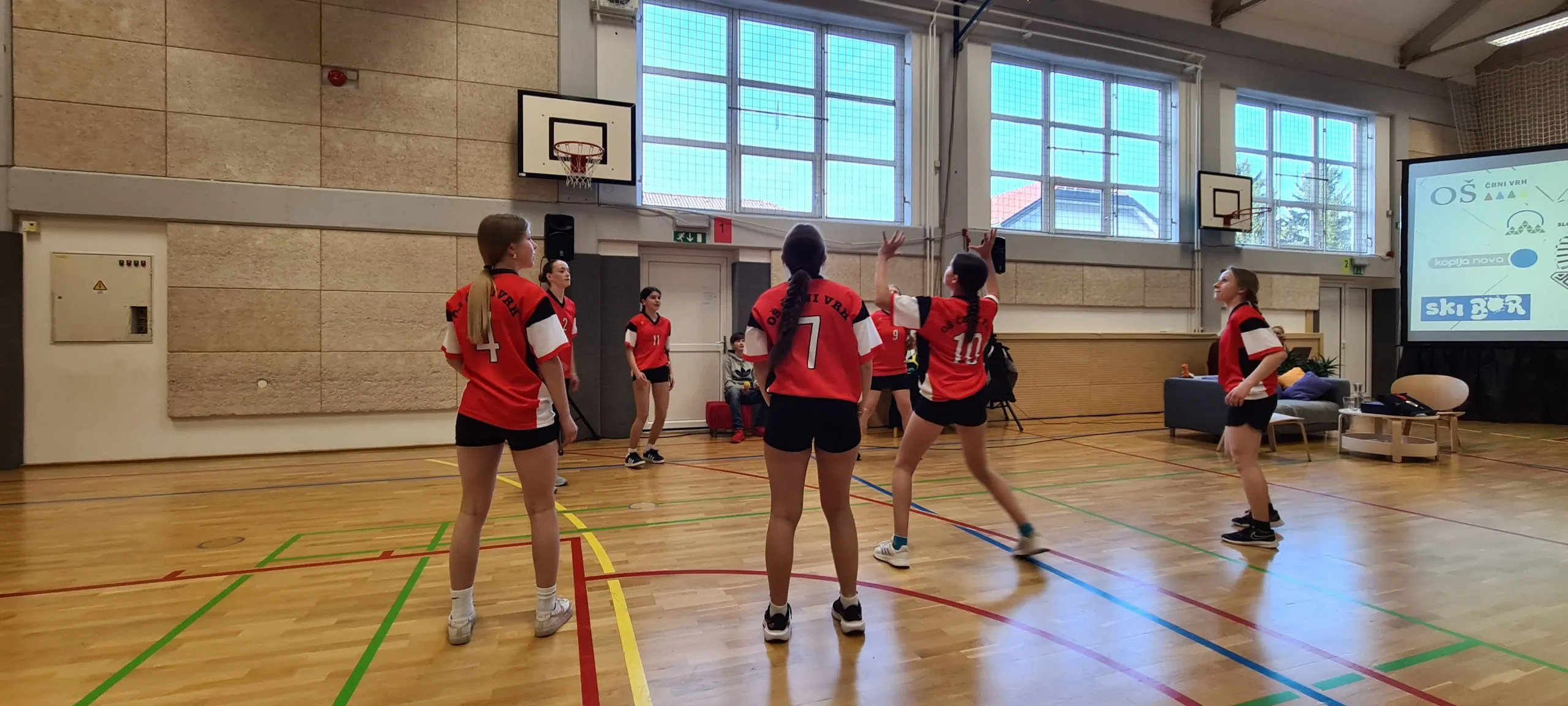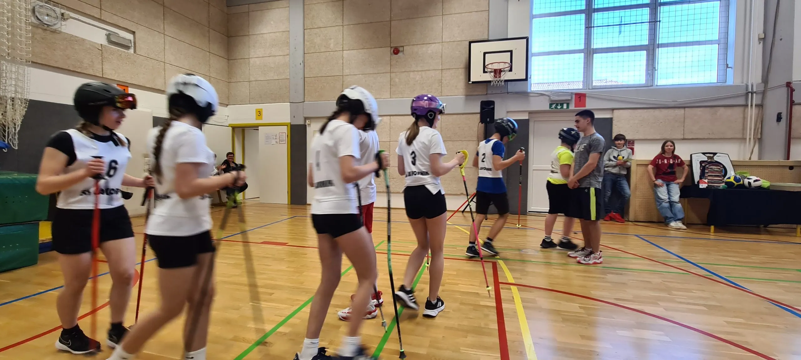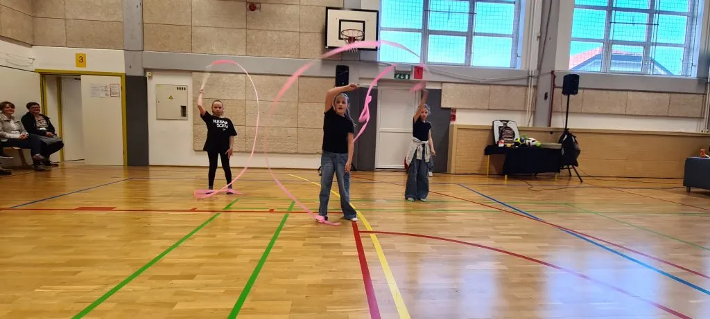 Tudi pri urah športa se dogajajo zanimive aktivnosti. Tako smo lahko včeraj videli ples s trakovi in atraktivna zabijanja na koš.