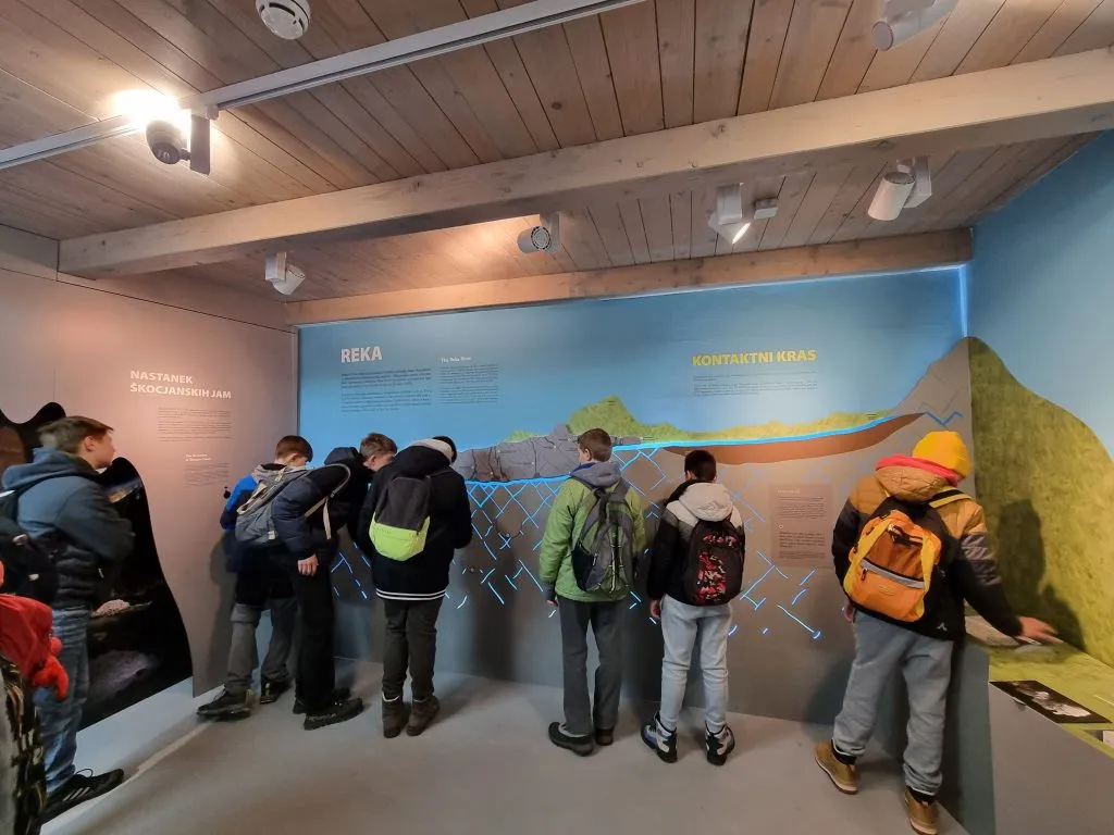 Po ogledu Luke Koper je sledil prehod v drugačen svet – svet podzemnih jam. Škocjanske jame so navdušile učence s svojo veličastnostjo in lepoto, ki ju voda še danes oblikuje. Med vodenim ogledom so spoznali različne formacije in zanimivosti, ki jih ponuja ta čudež podzemnega sveta. Škocjanske jame so na seznam svetovne dediščine UNESCO vpisane od leta 1986.