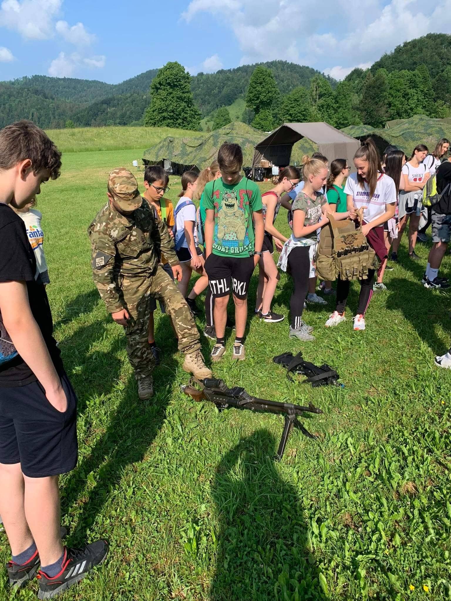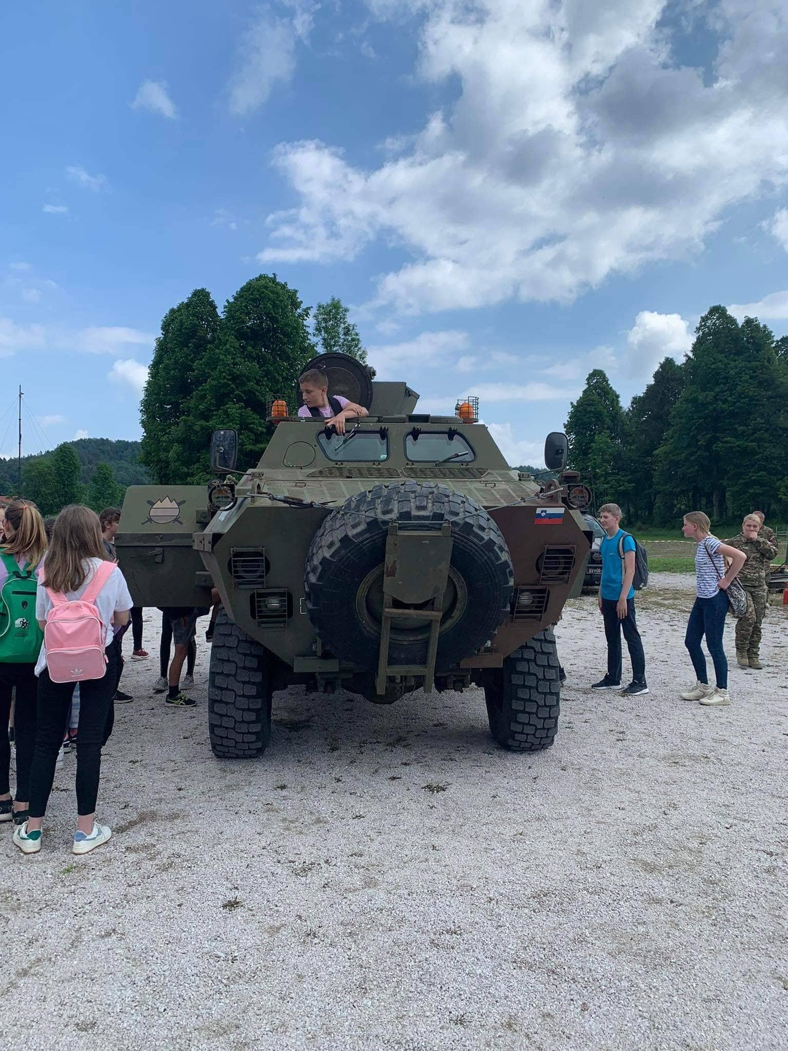 Učenci in učitelji osnovne šole Črni vrh smo imeli danes prav poseben šolski dan. Peš smo se odpravili v Zadlog na ogled vojaških vaj, ki potekajo v okviru mednarodne vaje »Jadranski udar 2022«. Ob prihodu v Zadlog so nas pričakali prijazni vojaki, ki so nam rade volje razkazali vojaško tehnologijo in oborožitev. Lahko smo si ogledali različne puške, helikopter, vzlet brezpilotnega letala, tank in ostala bojna vozila. Nekateri so se v teh bojnih vozilih lahko tudi zapeljali »en krog« po Zadlogu. Med ogledom nas je v nizkem preletu pozdravil tudi pilot reaktivnega letala, ki se je prav za nas potrudil in se z letalom spustil zelo nizko nad naše glave. Po končanem ogledu smo se odpravili nazaj proti Črnemu Vrhu. V šolo smo se vrnili utrujeni, lačni, žejni in polni vtisov današnjega dne.