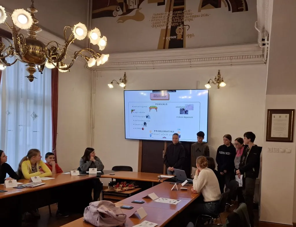 Sledila je razprava in oblikovanje zaključnih sklepov, ki jih bodo 18. 3. 2025 predstavili na regijskem parlamentu, ki bo potekal v Galeriji Magazin v Idriji. Iz naše šole se bosta regijskega parlamenta udeležili Melisa Šemrl in Elena Rupnik.