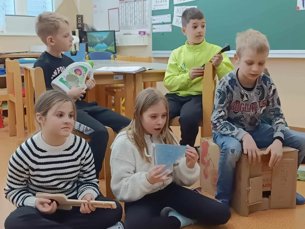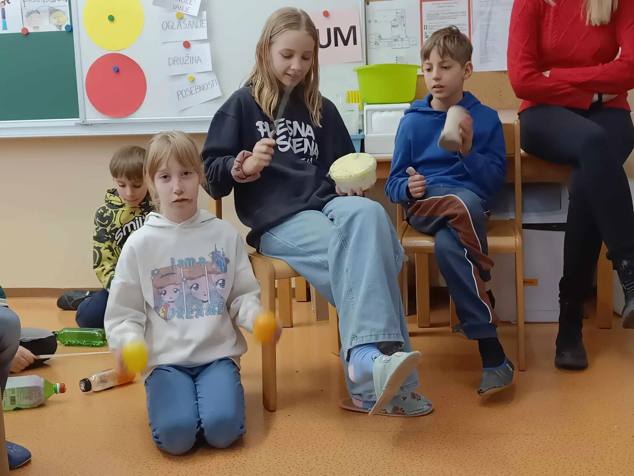 Učenci četrtega razreda so pri glasbeni umetnosti dobili nalogo, da iz preprostih materialov, kot so odpadna embalaža in drugi reciklirani materiali, ustvarijo nekaj povsem novega in edinstvenega. Z navdušenjem so sprejeli izziv in se izkazali kot pravi mojstri improvizacije in ustvarjalnosti. S svojo domišljijo, spretnimi prstki in zavzetostjo so izdelali čudovite ritmične instrumente, ki so pritegnili pozornost.