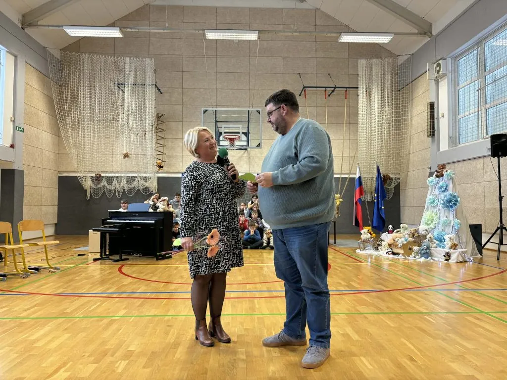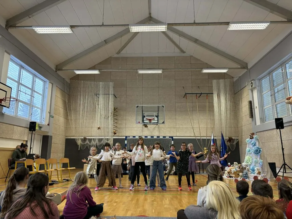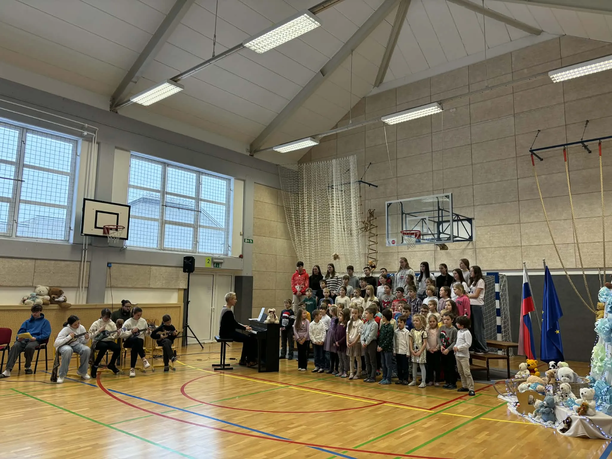 Naša šola se je pobratila z medvedjo šolo in izpeljali smo študentsko izmenjavo. V šoli je bilo toliko medvedov kot še nikoli in vsi so se udeležili naše prireditve ob dnevu samostojnosti in enotnosti. Medvedje so se ‘razkomotili’ po vseh kotičkih telovadnice. Z nami so spoznavali zgodbo Praznik Kajetana Koviča, ki jo je za nas prebral Vito Bizjak, program pa sta povezovala Lucija Rupnik in Fran Tominec. Učenci od prvega do petega razreda so sodelovali s samimi medvedjimi točkami, ki so jih zapeli, zaplesali ali pripovedovali. Tokrat na prireditvi niso nastopili samo učenci, ampak tudi učiteljice, ki so deklamirale pesem Kajetana Koviča Medvedja šola. Prireditev so popestrile pevske točke, ki so jih pripravili vsi trije šolski zbori pod vodstvom gospe Damjane Vončina, za ples pa so poskrbele tri šolske plesne skupine pod vodstvom gospe Neje Jereb iz plesne šole EL1 in Zlate dame iz iste plesne šole, a pod vodstvom gospe Elene Mikuž. Julija Rupnik in Manca Žgavec sta nam predstavili vsebino praznika dneva samostojnosti in enotnosti. Našemu povabilu na prireditev se je odzval tudi župan občine Idrija gospod Tomaž Vencelj, ki nas je ob začetku pozdravil in nam čestital ob prazniku. V naši družbi pa so poleg medvedov bili tudi otroci iz vrtca, bivši učenci ter mnogi sorodniki. Na koncu pa je svoje voščilo ob prihajajočih praznik izrekla še ravnateljica gospa Karmen Simonič Mervic.