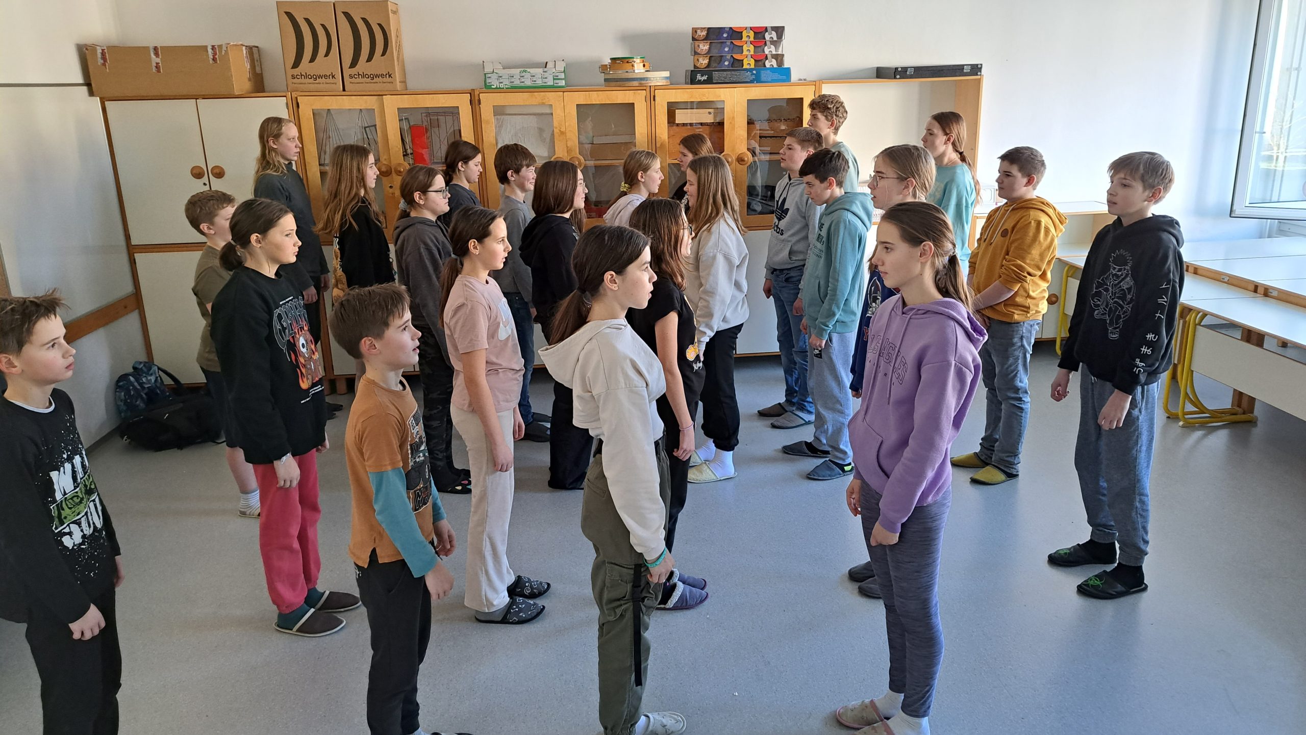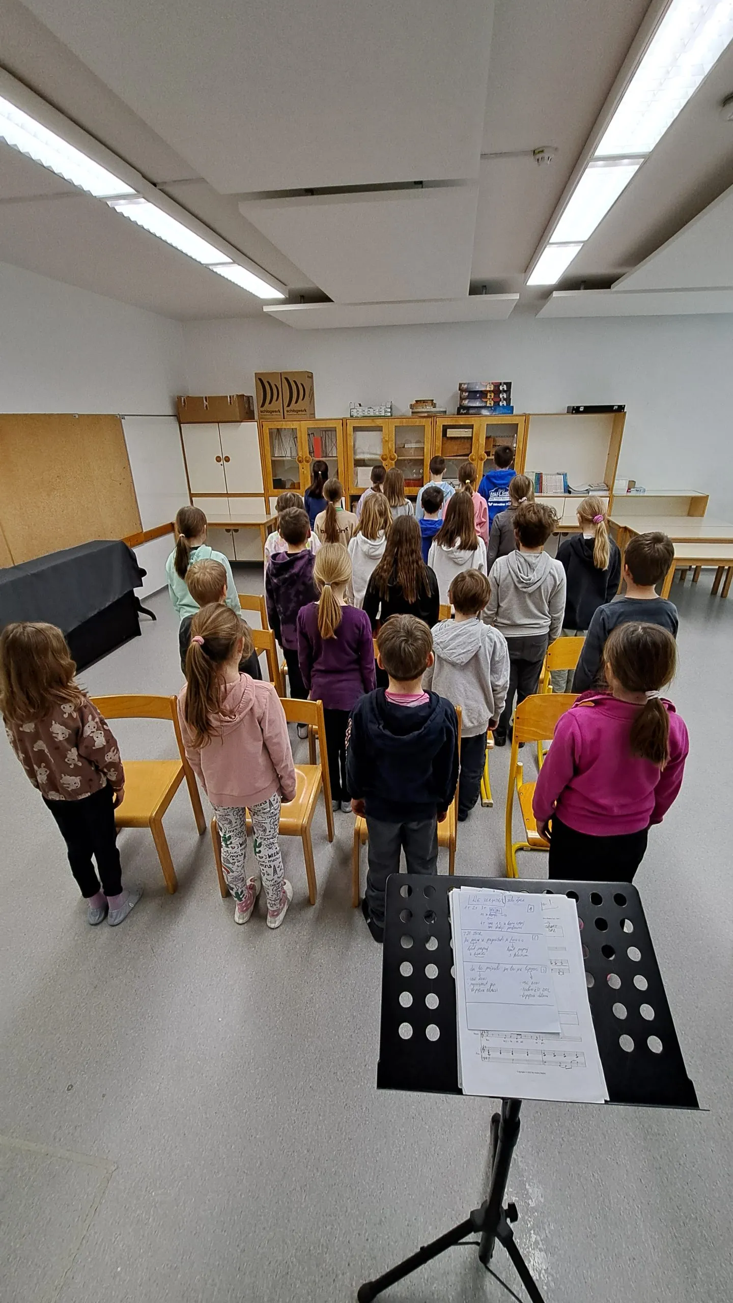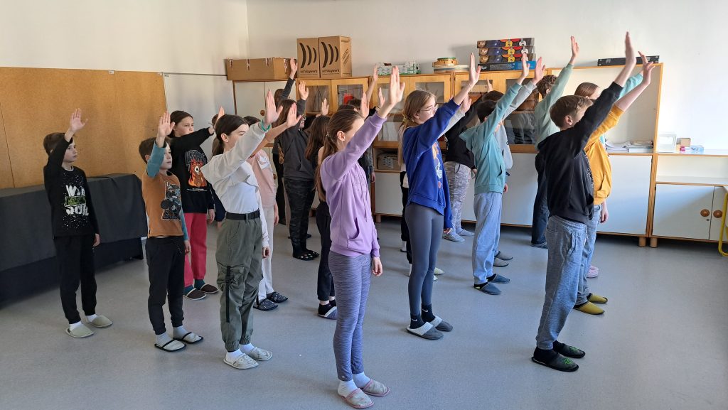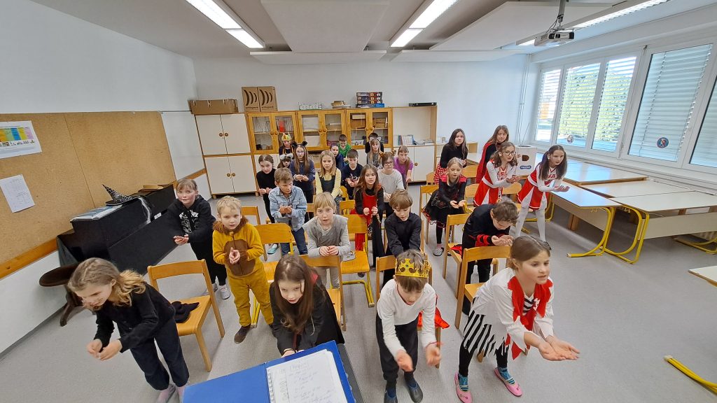V tednu pred počitnicami smo imeli vaje še večkrat. Oba pevska zbora pilita koreografijo, solisti in igralci izpopolnjujejo podrobnosti in detajle v igri, začeli smo s snemanjem posnetkov in fotografij, ki bodo del zgodbe in tudi scena se izdeluje. Smo v intenzivnem dogovarjanju, kako bo premiera potekala in kako bomo poskrbeli za obiskovalce po predstavi. Ne želimo, da se razidemo, zato pripravljamo drobna presenečenja.