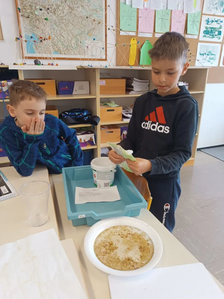 V sredo, 9. 4. 2025, smo na naši šoli izvedli zanimiv naravoslovni dan na temo Naravoslovni poskusi, v katerem so sodelovali učenci 4. in 5. razreda. Učilnice so se za en dan spremenile v prave raziskovalne laboratorije, kjer so učenci postali samostojni raziskovalci in radovedni opazovalci naravoslovnih pojavov.