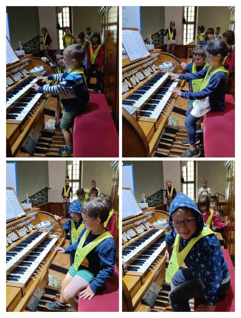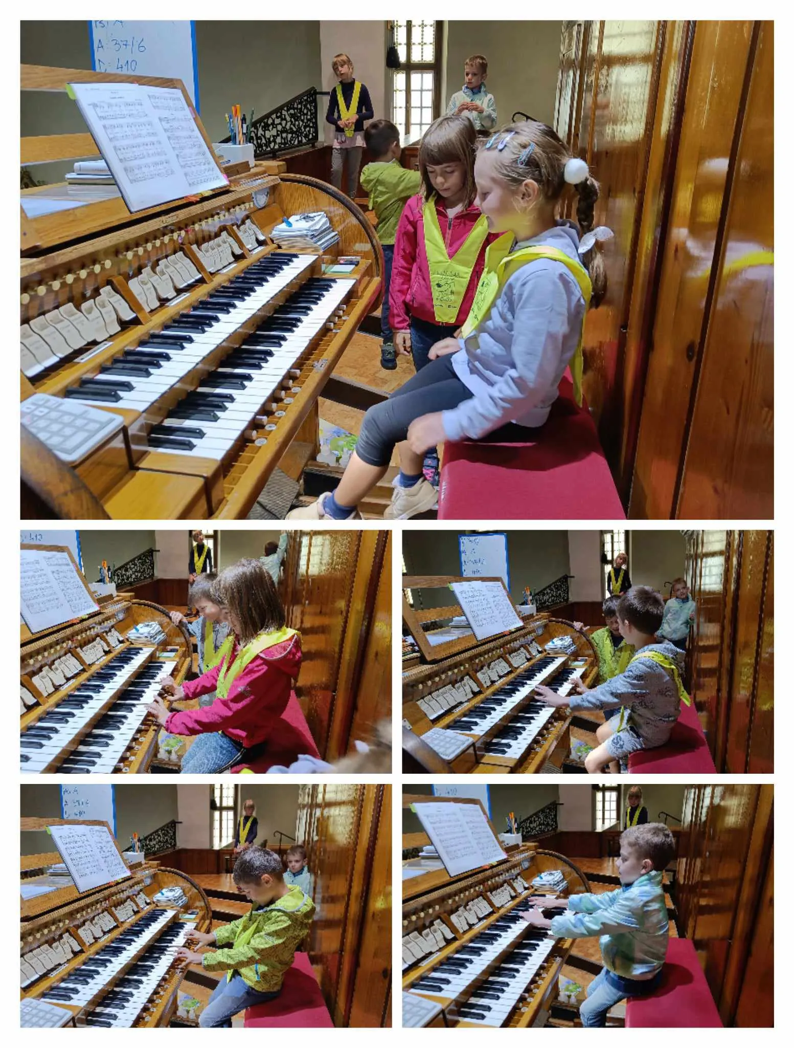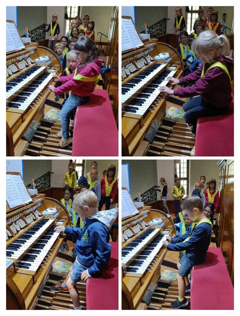 Na cerkvenem koru smo spoznali glasbilo, prisluhnili skladbam, ki jih je zaigrala naša gostiteljica in tudi sami pritisnili na kakšno tipko.