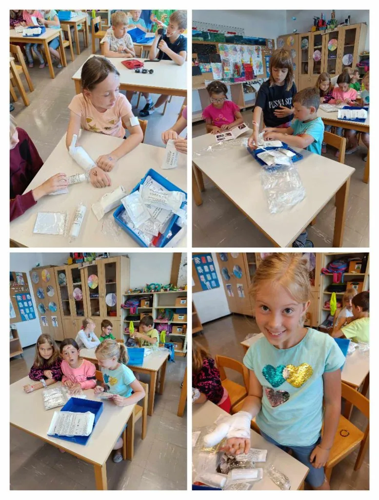 V torek, 18. 6. 2024, so se učenci prvega in drugega razreda združili in skupaj spoznali osnove prve pomoči, klica v ReCO center ter obvezovanja ran.