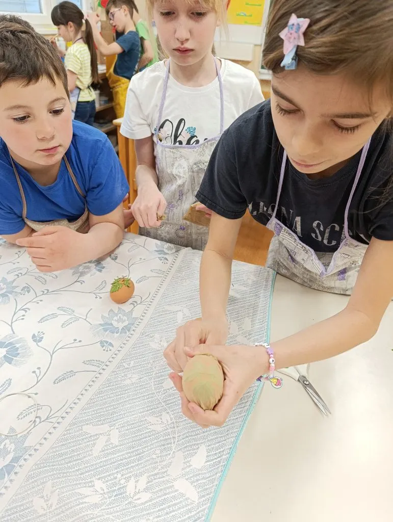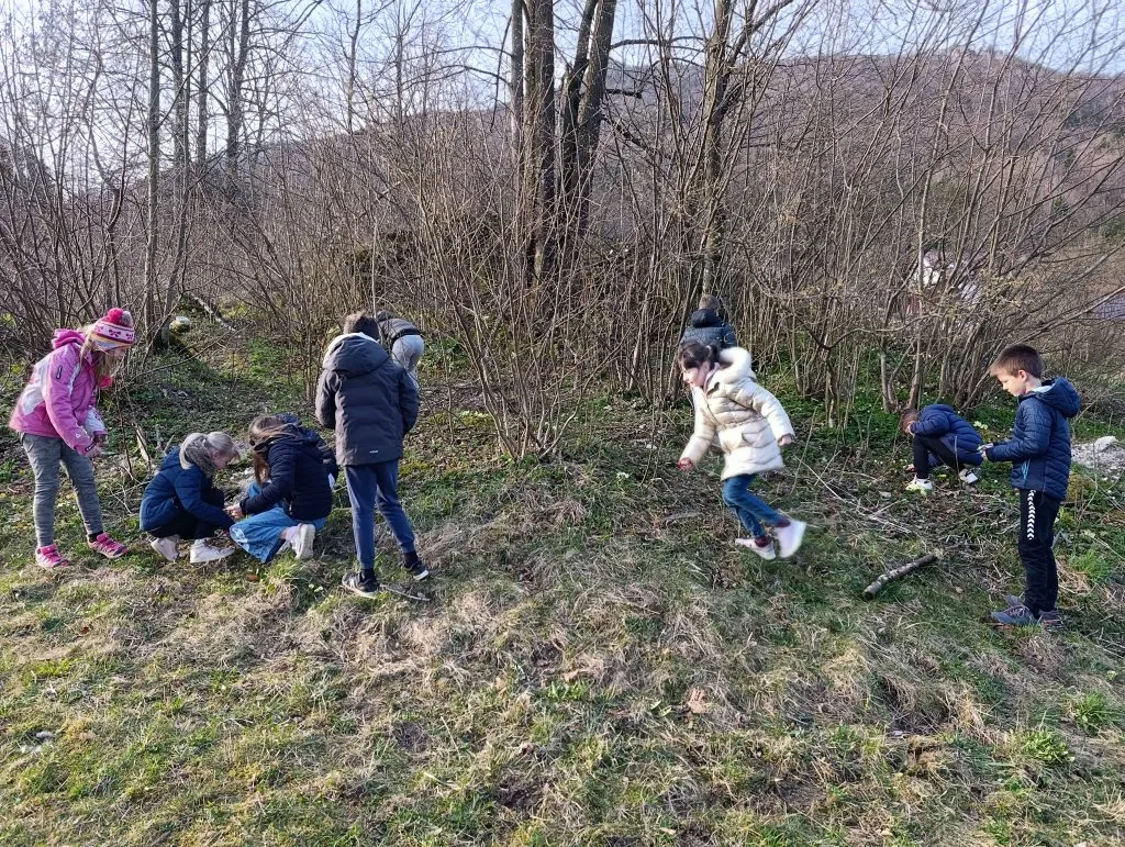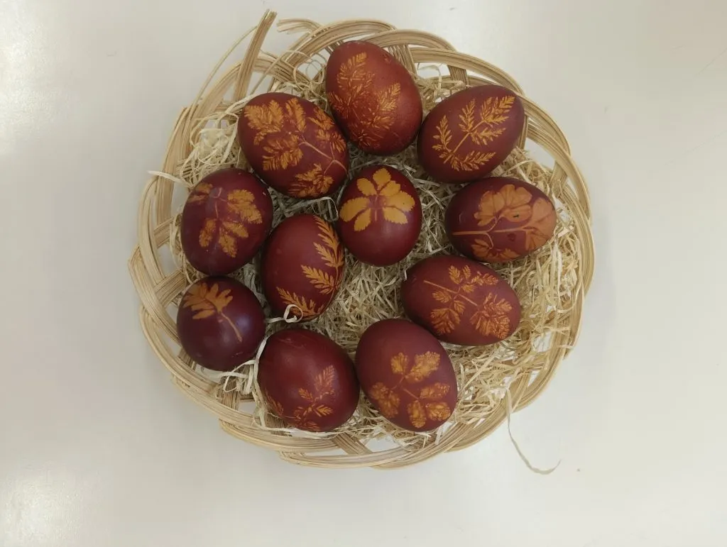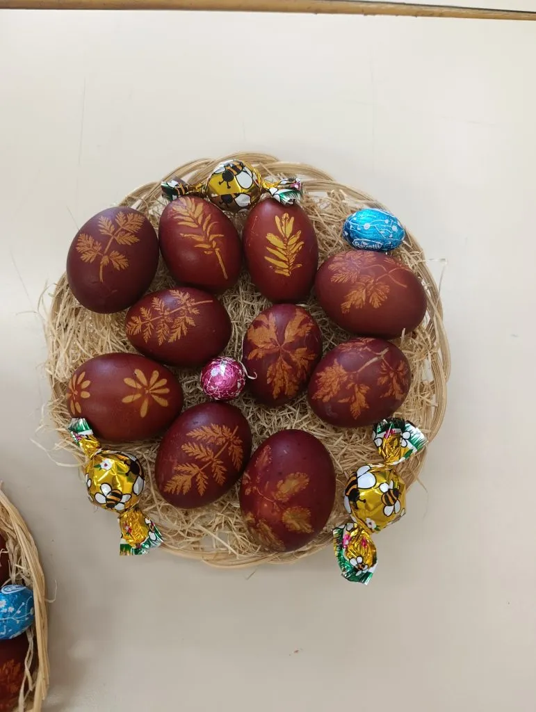 Že zjutraj so se odpravili v naravo, kjer so nabrali različne rastline za okrasitev pirhov. Zbrane listke in cvetove so s pomočjo najlon nogavic ovili okoli jajc ter jih skuhali v vodi s čebulnimi olupki. Nastali so čudoviti, unikatni velikonočni pirhi, na katere so bili učenci zelo ponosni.