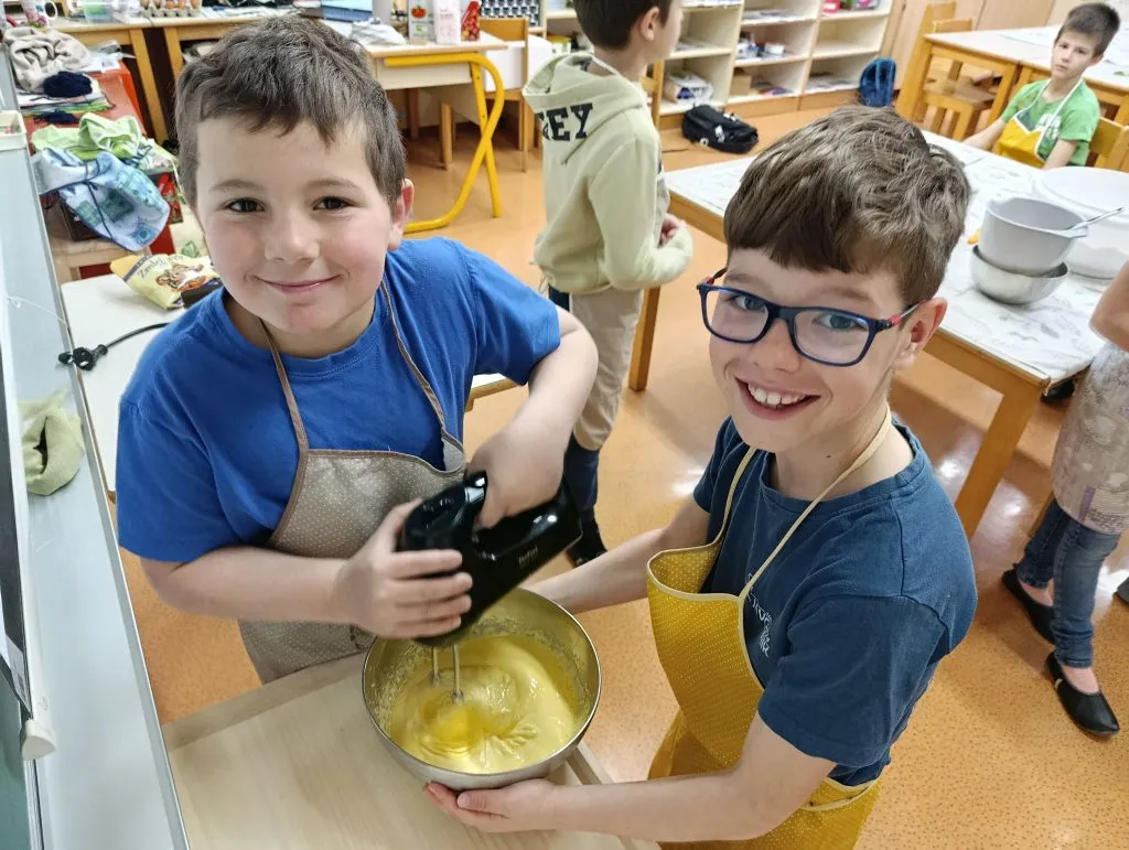 Veliko dela so opravili kar sami: ločevali so rumenjake od beljakov, tehtali, mešali in se urili v pletenju kite iz treh delov. Na koncu so nastale lepe, dišeče pletenice.