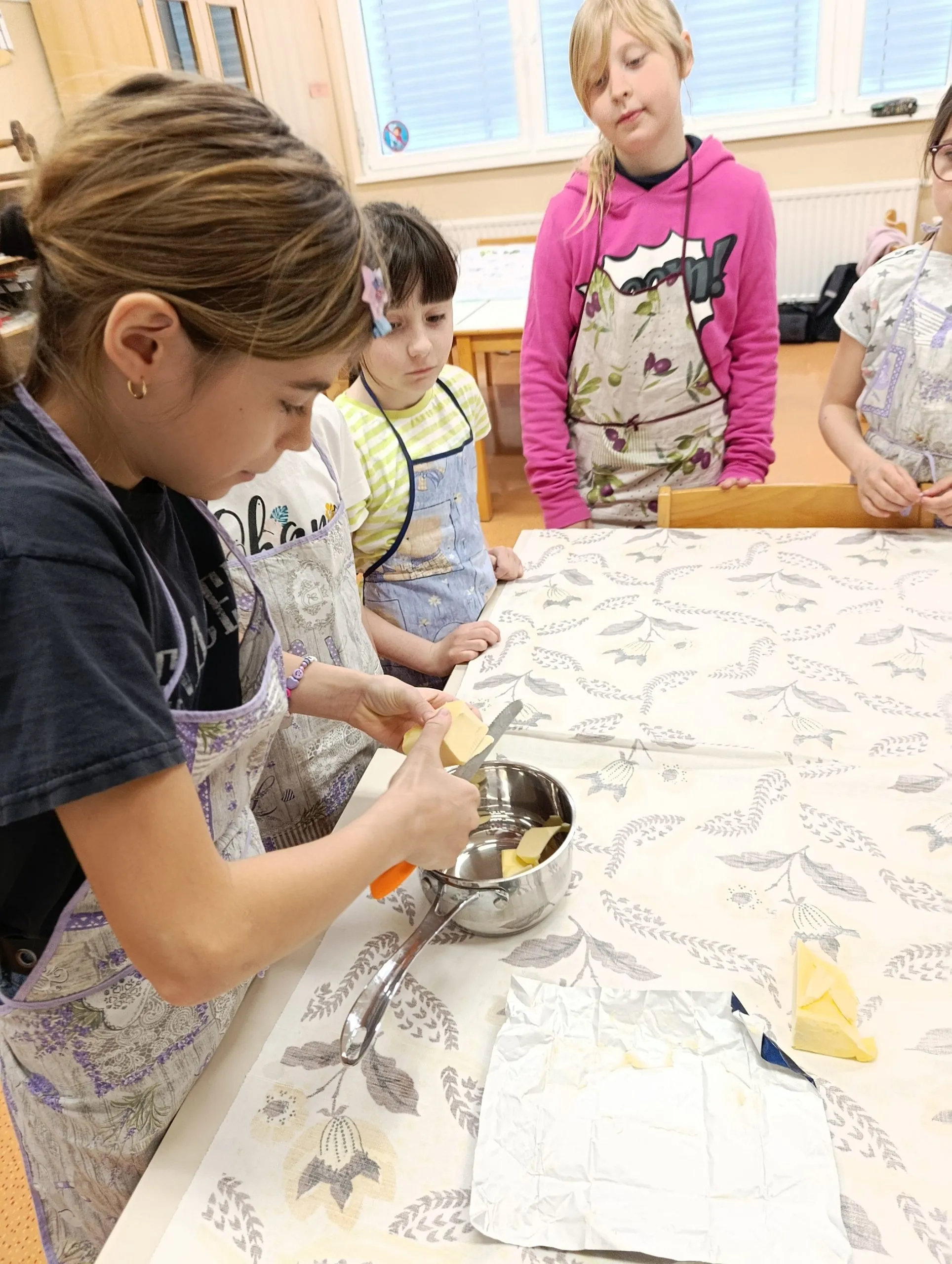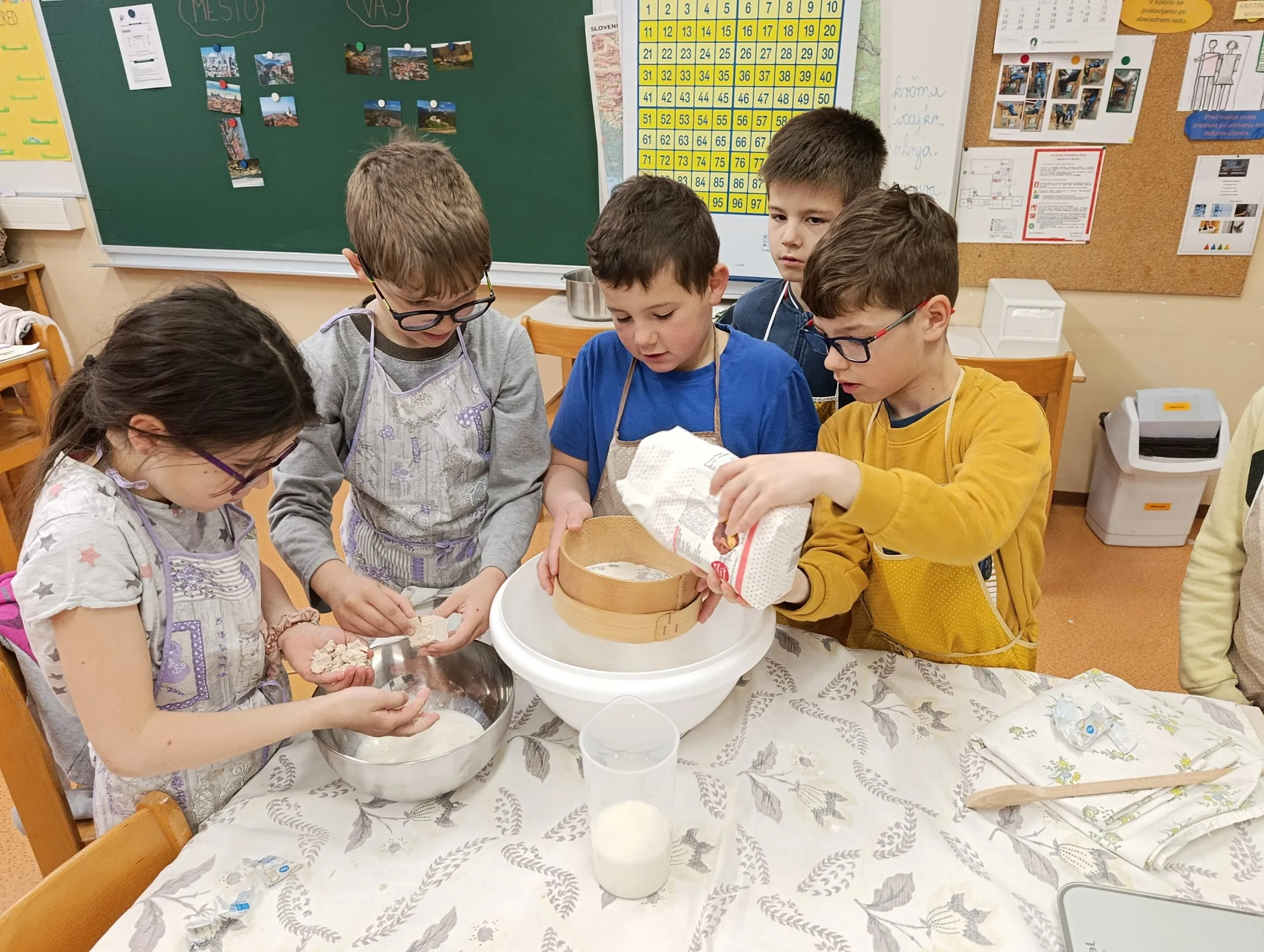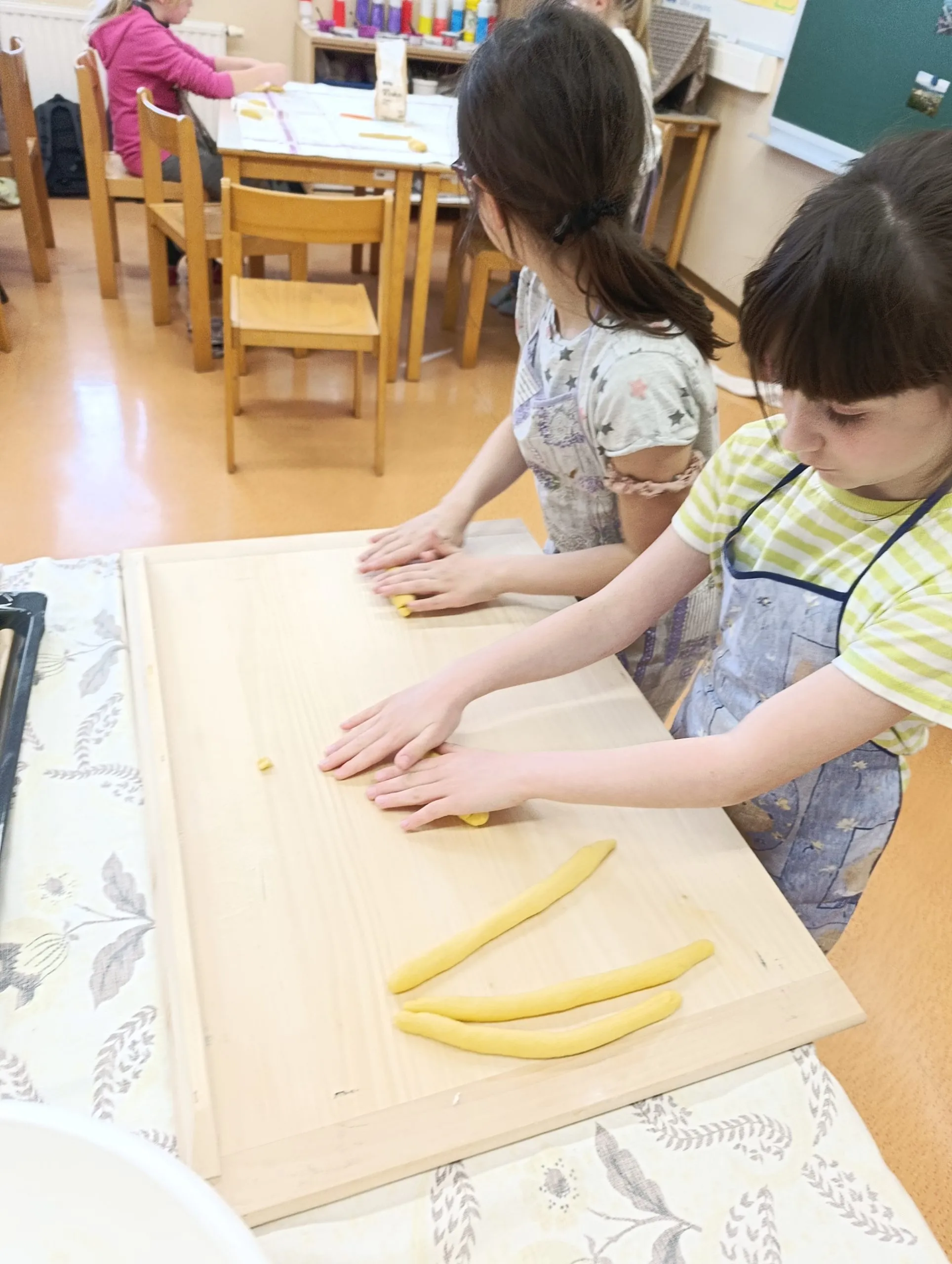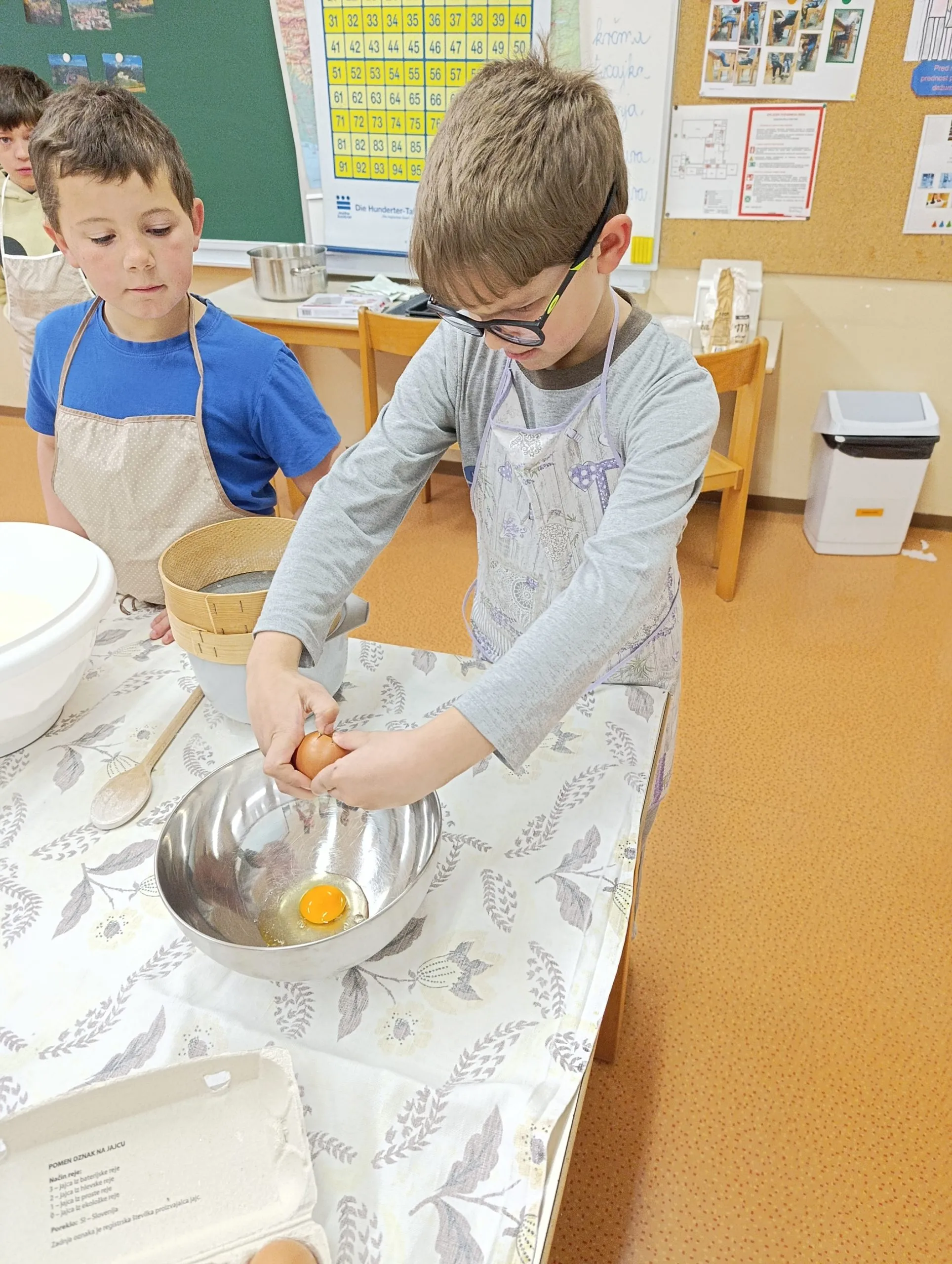 Veliko dela so opravili kar sami: ločevali so rumenjake od beljakov, tehtali, mešali in se urili v pletenju kite iz treh delov. Na koncu so nastale lepe, dišeče pletenice.