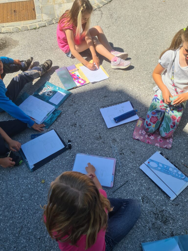 V prejšnjem tednu so drugošolci svoje ure spoznavanja okolja preživeli zunaj. Načrtovali so svoje makete Črnega Vrha. Skupine so med načrtovanjem sodelovale, se posvetovale in na koncu so nastali odlični načrti naših modelov.