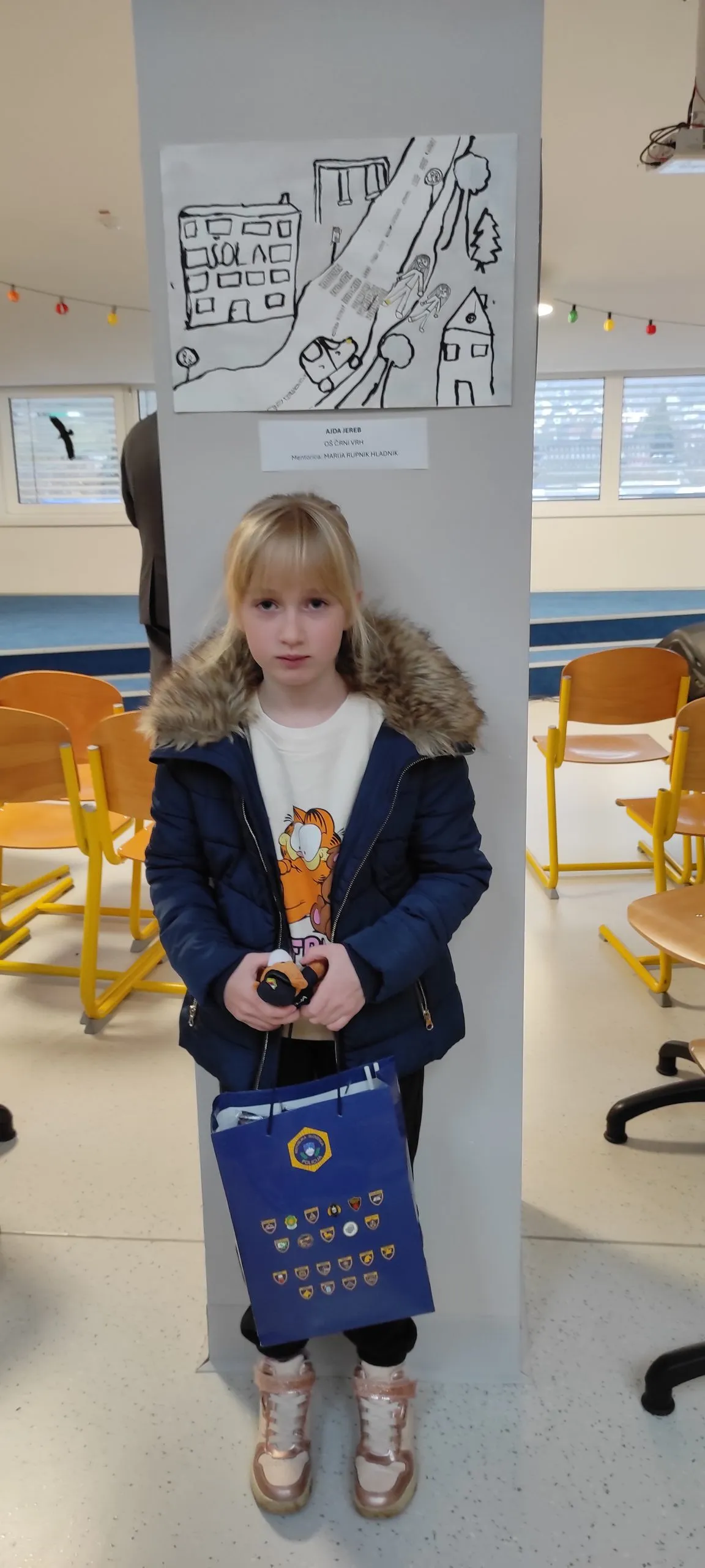 Iz naše šole so se prireditve udeležile Ajda Jereb z mamico in ravnateljica Karmen Simonič Mervic. Ajdi čestitamo za uspeh, prav tako pa tudi njeni učiteljici Mariji Rupnik Hladnik, ki je izpeljala natečaj od idejne zasnove, do dela pri pouku in izbora del za natečaj.