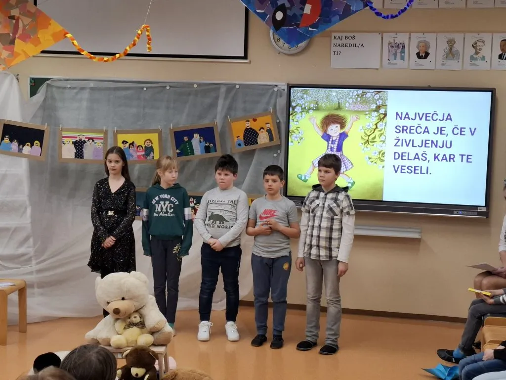 V pomladnem vzdušju so učenci četrtega razreda pripravili prireditev za svoje starše z naslovom “Največja sreča je, če v življenju delaš, kar te veseli.”